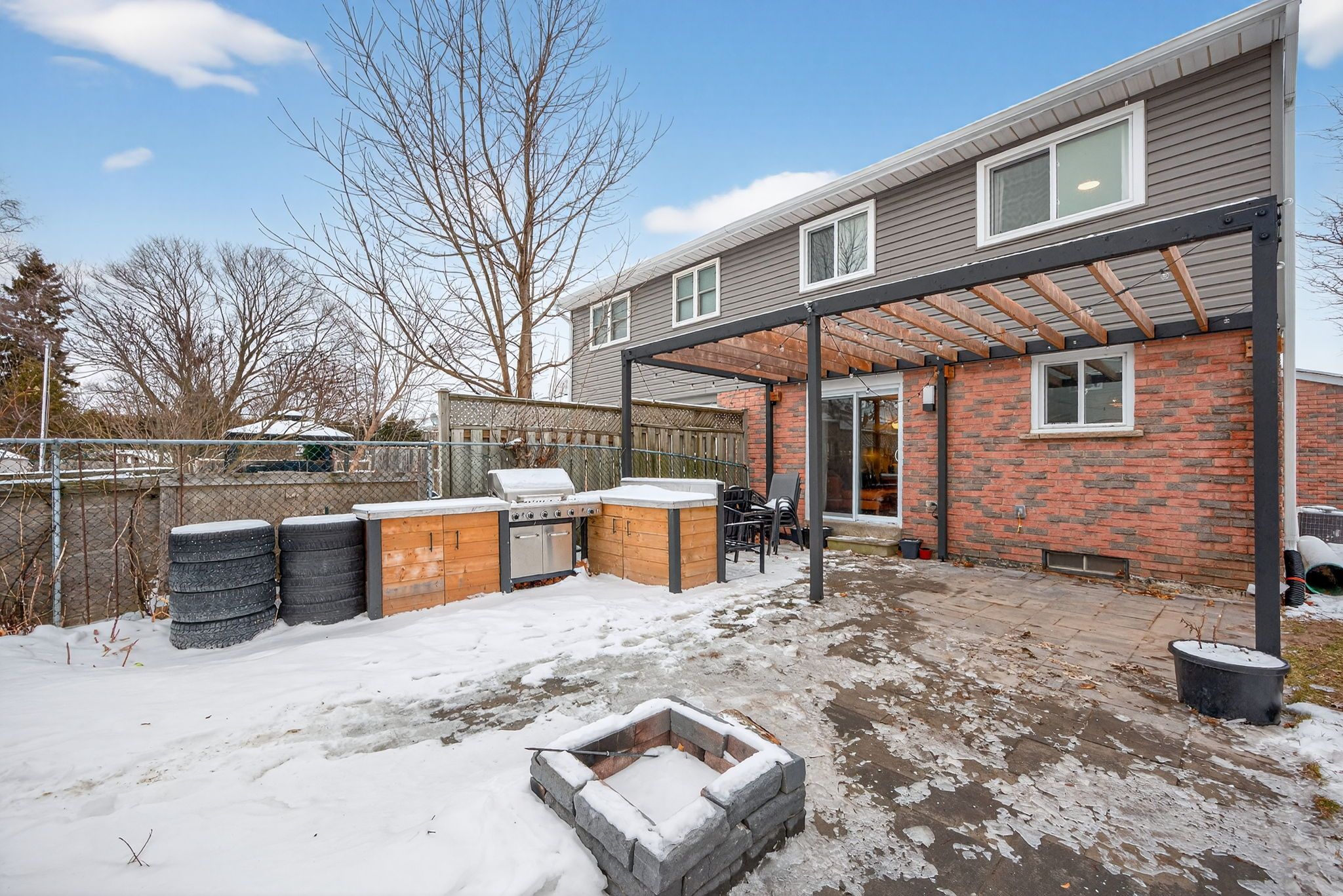 Great Starter Home Awaits With This Extensively Renovated & Well Maintained Semi-Detached End Unit! Fully Fenced Backyard With No Neighbours To One Side Works Great With Small Children Or Pets. Carpet Free With Vinyl Plank Flooring Throughout. Stylish Kitchen 21' Boasts Ceramic Floors & Amazing Porcelain Backsplash. Cozy Breakfast Area & Coffee Station Flows Nicely Into The Heart Of The Kitchen. An Entertainers Dream With Convenient Walk Out From The Main Living Area/Dining Rm To Backyard Patio 21' . Enjoy Added Living Space With The Recently Renovated Lower Level 25' Comprised Of A Good Sized Rec Rm, Laundry Rm With Bonus Pet Wash/Laundry Sink & Lots Of Extra Storage Areas. Big Ticket Items Done Recently Include Roof 25', Vinyl Siding 23', Eavestroughs 22', Windows 21', Bathrooms(Vanities & Tiling) 21', LED Lights 21', Furnace + A/C 20' & Electrical Panel 20'. Within Walking Distance Of Shopping Centres, Grocery Stores, Schools(Elementary & Secondary), Rec Centre, Library, Park Etc. The Work Is Done....Time For You To Enjoy!