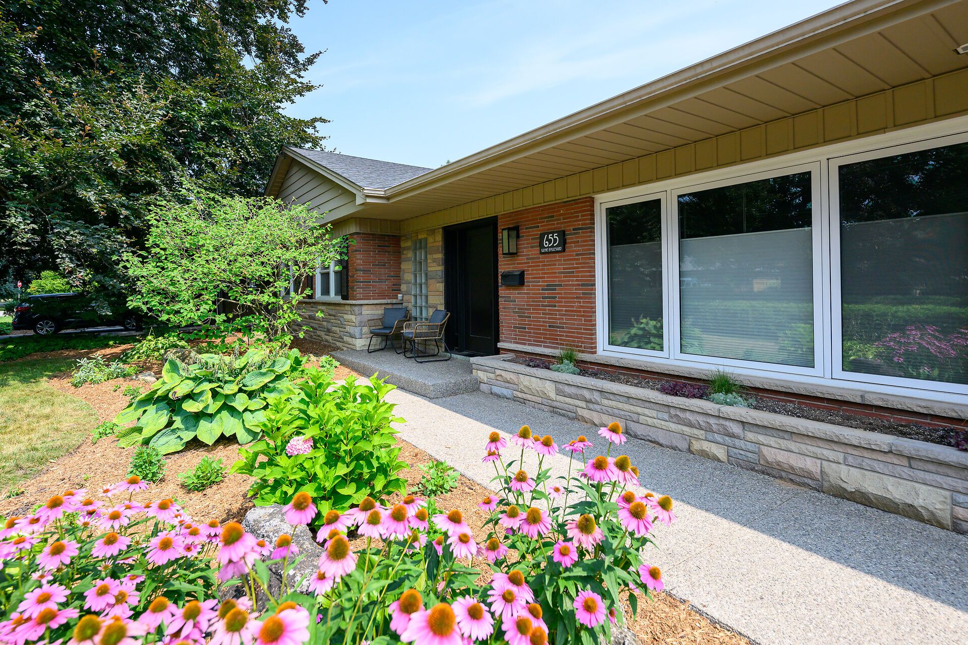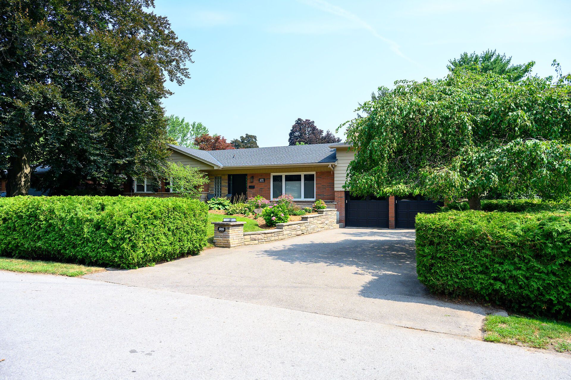 Welcome to this beautifully updated, sprawling 5-bedroom, 4-bathroom ranch offering over 3,700 sq. ft. of versatile living space. Ideally set on an expansive 96 x 124 ft private, tree-lined lot in a quiet & highly sought after South Aldershot neighbourhood, this exceptional home blends quality finishes, functional layout, stunning grounds, & an unbeatable location. The foyer greets you & opens to a bright, open concept living & dining area, with hardwood floors, striking stone fireplace, & large picture window. The kitchen is an inspiring space to cook & gather, featuring a Wolf range, generous counter space, two large pantries, a casual dine-in area, & gorgeous backyard views. The thoughtful split-bedroom floor plan is ideal for families & multi-generational living. The private primary retreat includes a den or sitting area & a luxurious, spa-inspired ensuite. A second bedroom & powder room complete this wing, while three additional generously sized bedrooms & a newly updated 3-pc bathroom are located at the other end of the home. The backyard is a true showstopper, your own private resort! Enjoy summer days by the in-ground pool, relax beneath the custom pergola, or entertain family & friends in this serene, fully fenced oasis. The finished lower level offers outstanding space & flexibility, featuring a large rec room with fireplace & custom bar, 3-pc bathroom, office, den, laundry area, workout room, & extensive storage including a cedar-lined closet. With three separate entrances, the layout is ideal for a potential in-law suite. Additional highlights include a double garage with inside entry. The location is ideal, close to Lake Ontario, walking & biking trails, parks, schools, hospital & downtown Burlington's shops & restaurants. Plus easy commuting with quick access to the GO Train & major highways. 655 Gayne offers an abundance of space and an idyllic lifestyle. Simply move in and enjoy! A full list of features and updates is available upon request.