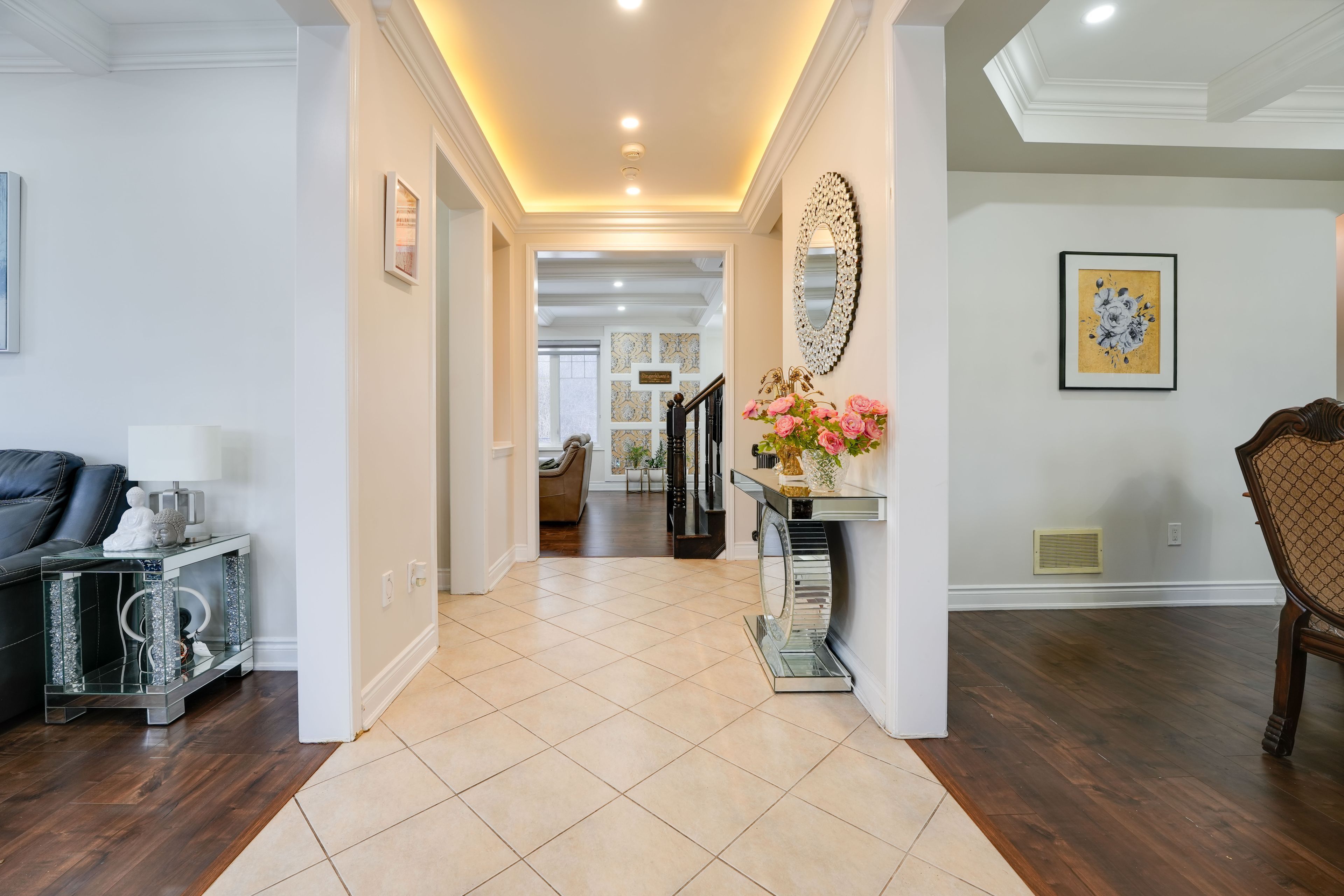 Absolutely Stunning 5+1 bedroom Detached home, A Real Show Stopper, offering a spacious Layout, Above grade square feet 3488, Spectacular Huge Rear/Side Yard Backing onto conservation, Ravine Lot, grand porch with sitting area, highly upgraded, coffered ceiling and crown molding throughout the home, Separate living room, dining room and family room with a stone walled fireplace. Large Kitchen with glass back splash, LED under valance light, quartz countertop, stainless steel appliances and walk-out to a huge backyard and side yard. Hardwood flooring throughout the home with no carpet. Pot lights inside & outside of the home. A spacious Master Bedroom with a large sitting area. Finished basement with 1-bedroom, large recreation room and 3 PC ensuite. Legal separate entrance.