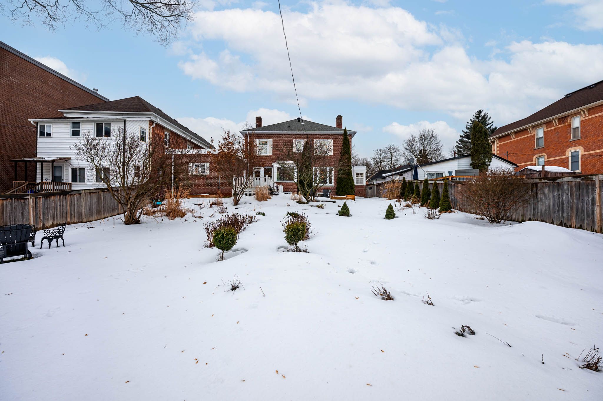 Welcome to 17 First Avenue, a truly stunning red brick Century Home, built in 1933 and rich with timeless charm. Perfectly located in the heart of downtown Orangeville, this home is just steps to the town's best restaurants, cafés, and shops, offering walkable convenience with small-town charm. Set on an impressive 65 ft x 155 ft lot, the property features mature trees, lush gardens, and a massive fully fenced backyard, a rare find in such a prime location. Inside, you'll find nearly 2,500 sq ft of beautifully maintained living space with hardwood flooring throughout. The home offers 4 large bedrooms and 2 fully renovated bathrooms. The newly renovated kitchen is a showstopper, featuring cream-coloured custom cabinetry, quartz countertops, and a picturesque view overlooking the backyard. The spacious dining room comfortably seats 8 guests and is ideal for hosting family and friends. The living room and family room are warm and inviting, each with a gas fireplace and tasteful updates that blend character with modern comfort. Just off the living room, a charming sunroom provides the perfect spot for morning coffee or quiet reading. The finished basement adds exceptional value, complete with a cozy movie theatre room with a third gas fireplace and a dedicated craft room. This home is full of warmth, charm, and thoughtful updates. A true haven for century home lovers seeking character, space, and an unbeatable downtown location.