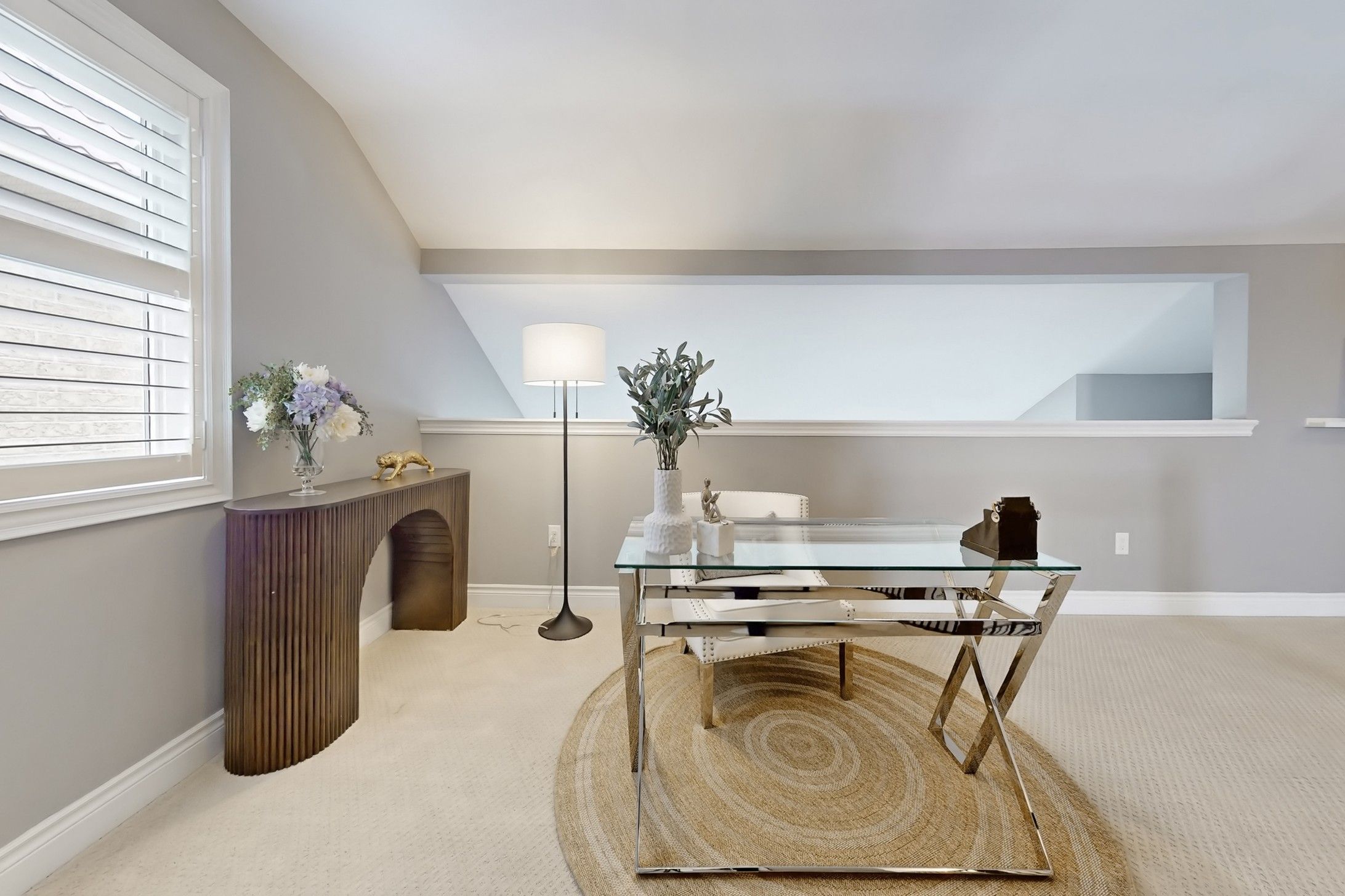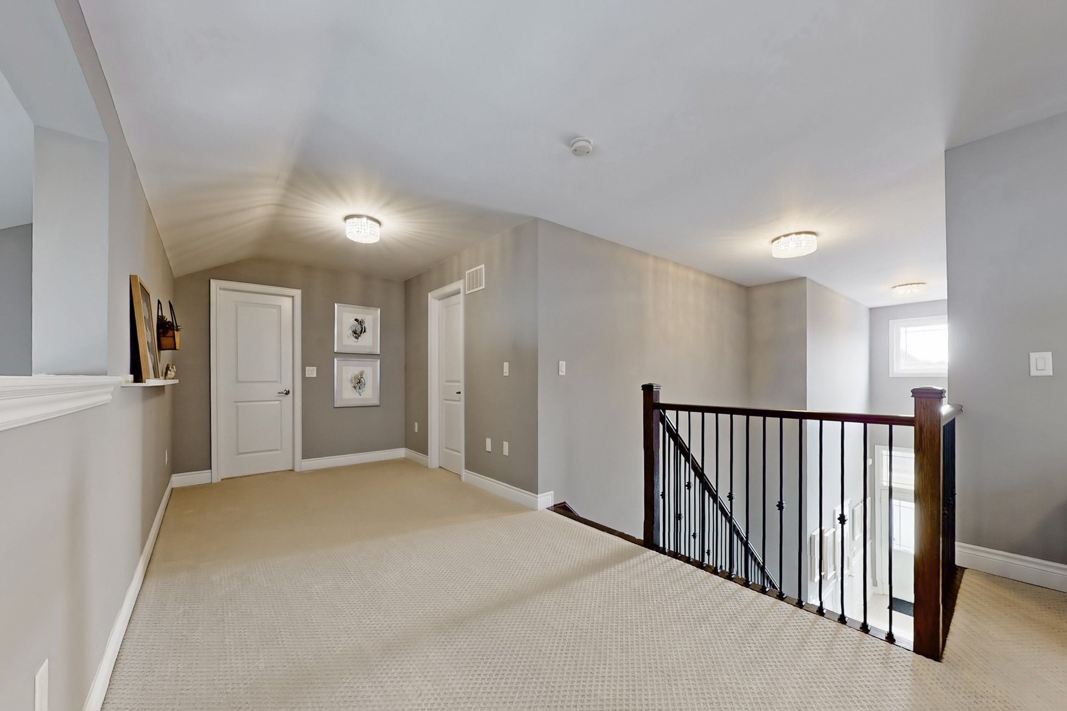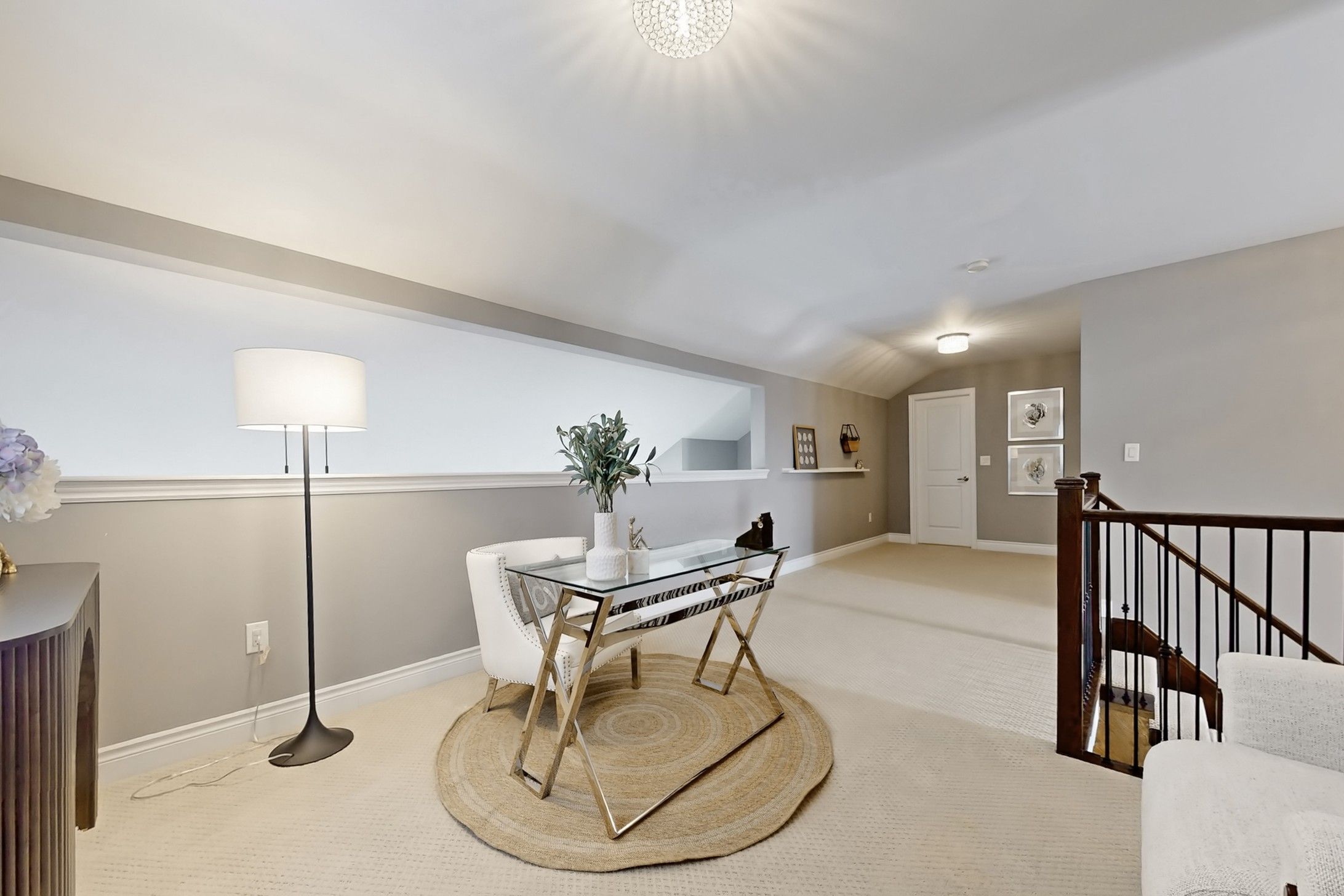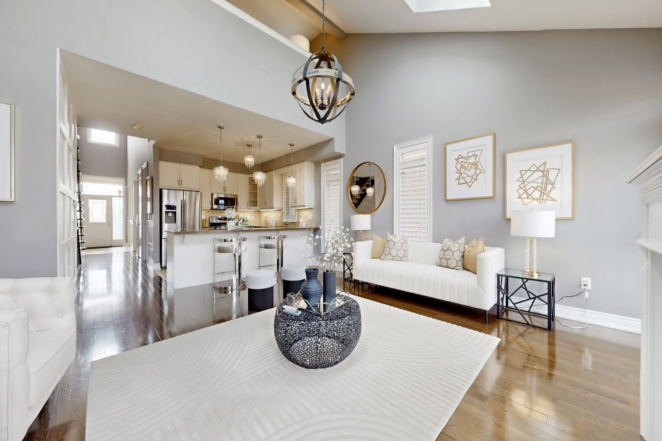 Welcome to one of Milton's most sought-after communities! Situated on a rare 43-ft wide lot, this beautifully designed bungaloft offers 3+2 bedrooms and 3 bathrooms, showcasing an elegant stone and stucco exterior with professionally landscaped front yard that exudes curb appeal.Step inside to discover refined finishes throughout, including 9-ft ceilings, 8-ft doors, rich hardwood flooring, and a striking open-rise oak staircase with wrought iron pickets. The home welcomes you with a formal living and dining area-perfect for both entertaining and everyday living.A standout feature of this loft-style home is the impressive approx. 17-ft open-to-above foyer and hallway, creating a dramatic sense of space and modern sophistication. At the rear, the upgraded gourmet kitchen seamlessly connects to the spacious family room, forming a bright and functional open-concept layout ideal for today's lifestyle. The family room is truly a showstopper, featuring a vaulted ceiling with two skylights and Hunter Douglas motorized blinds, filling the space with natural light while offering comfort and convenience.The main level includes two generously sized bedrooms and two full bathrooms, highlighted by a luxurious primary retreat with a private ensuite. Upstairs, you'll find an additional bedroom and a versatile loft space-perfect as a home office, lounge, or media area.A partially finished basement provides additional living space and excellent future potential.Unbeatable location-just steps to Milton Sports Centre, parks, top-rated schools, and all essential amenities. This is a rare opportunity to own a stylish and spacious home in a prime family-friendly neighborhood.