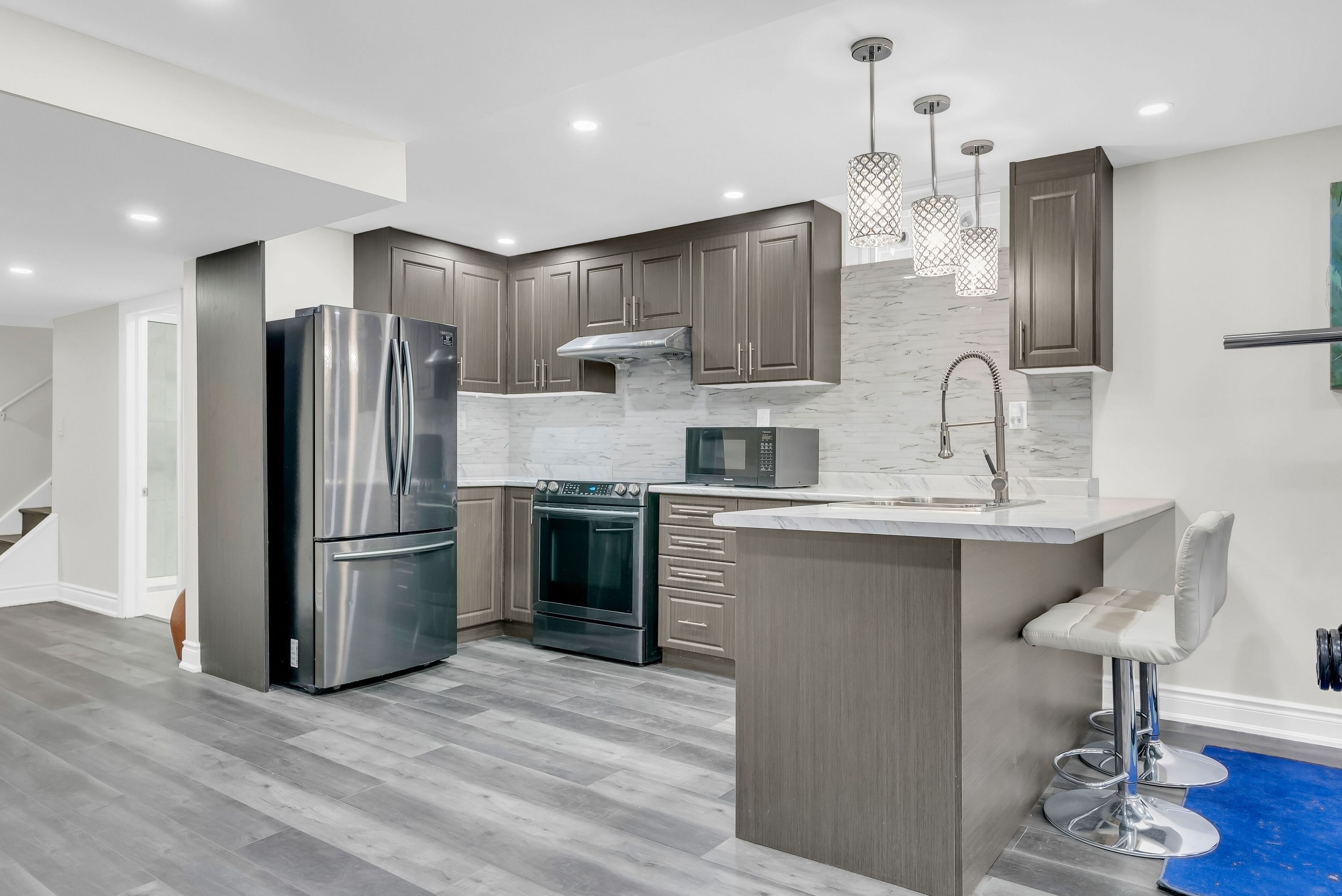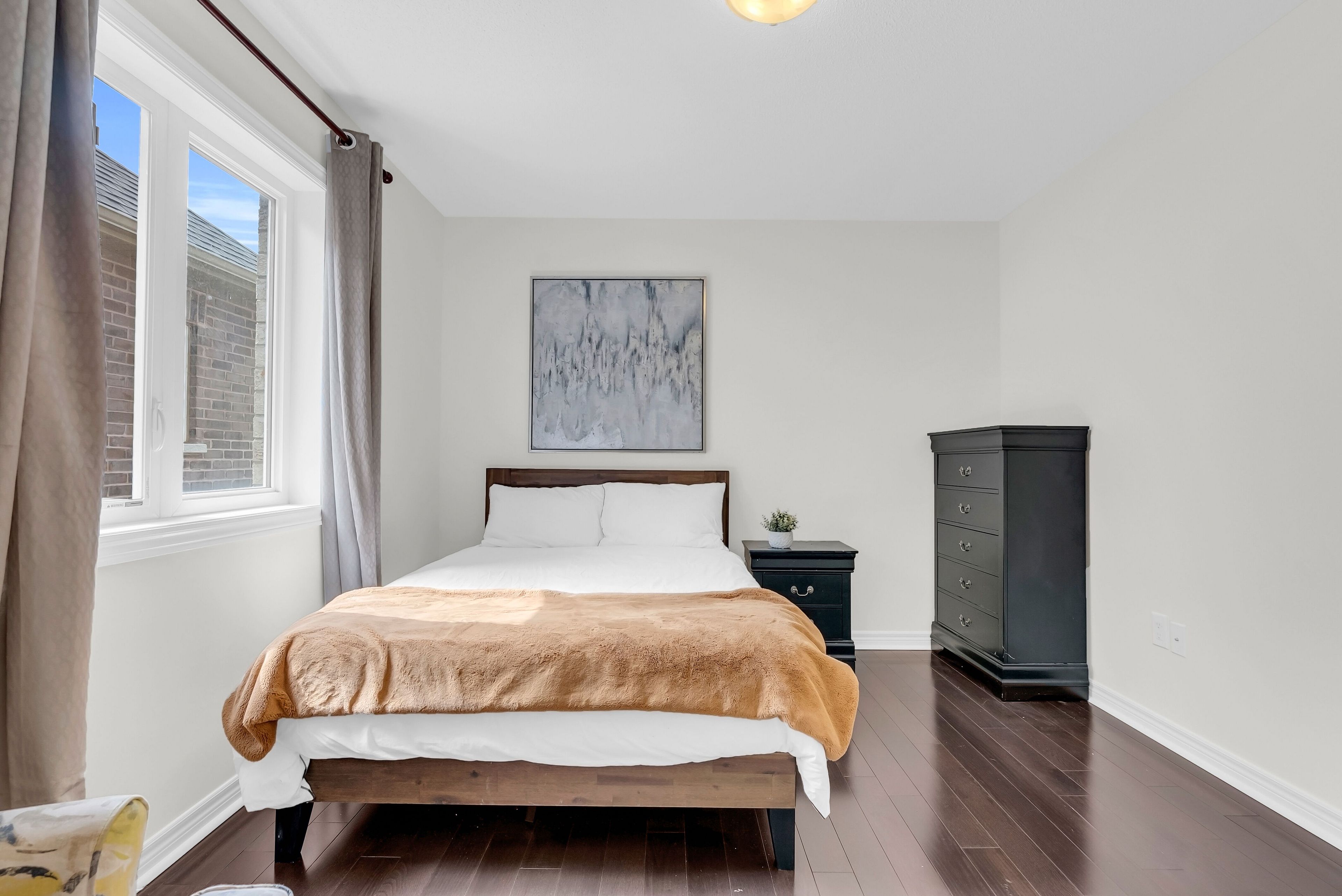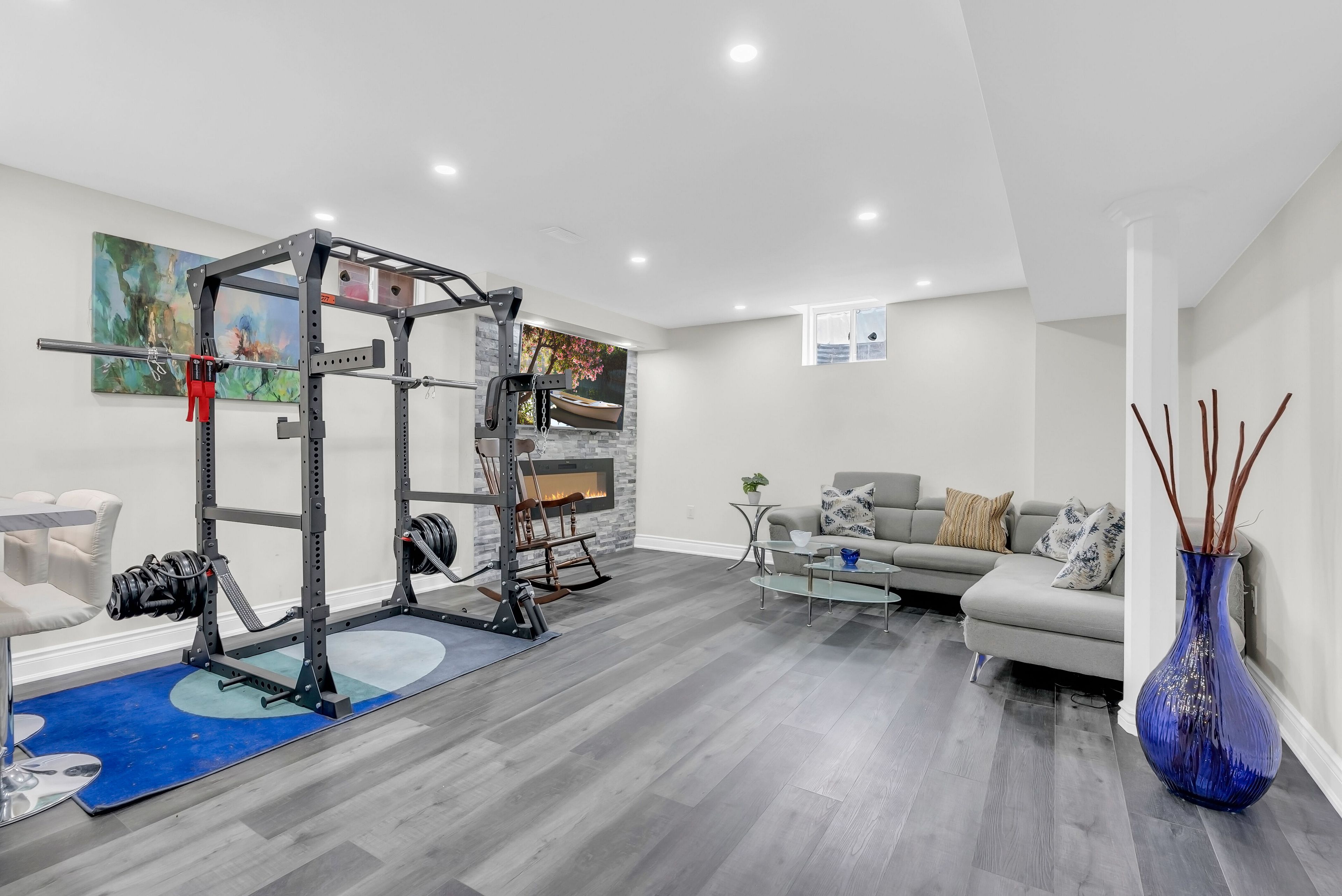 Welcome to this stunning Rosehaven-built Ravenscliffe model, offering the perfect blend of luxury, space, and functionality. Featuring five spacious bedrooms and three full bathrooms on the upper level. This freshly painted home is designed for comfort and convenience.The double-door entry opens to a well-designed layout with 9-foot smooth ceilings and hardwood flooring throughout. The main floor boasts combined living and dining areas, complemented by a bright, open-concept family room with a gas fireplace. The spacious kitchen features granite countertops, a breakfast bar, and a sunlit breakfast area with walk-out access to a fenced concrete backyard and patio-ideal for entertaining.The primary bedroom includes a 5-piece ensuite, walk-in closets with built-in designer-by-closet organizers throughout, and a raised coffered ceiling for added elegance. The finished basement offers a large one-bedroom suite; a full glass shower stand-up bathroom with clear tempered glass walls and sliding doors; full ready laundry; and a kitchen-adorned with pot lights and an electric fireplace-providing an additional living space for recreation or an extended in-law suite.This beautifully upgraded, move-in-ready home is conveniently located near Mount Pleasant GO Station, top-rated schools, parks, and all amenities, making it highly sought-after in the neighbourhood. Don't miss your chance to own this exceptional property!