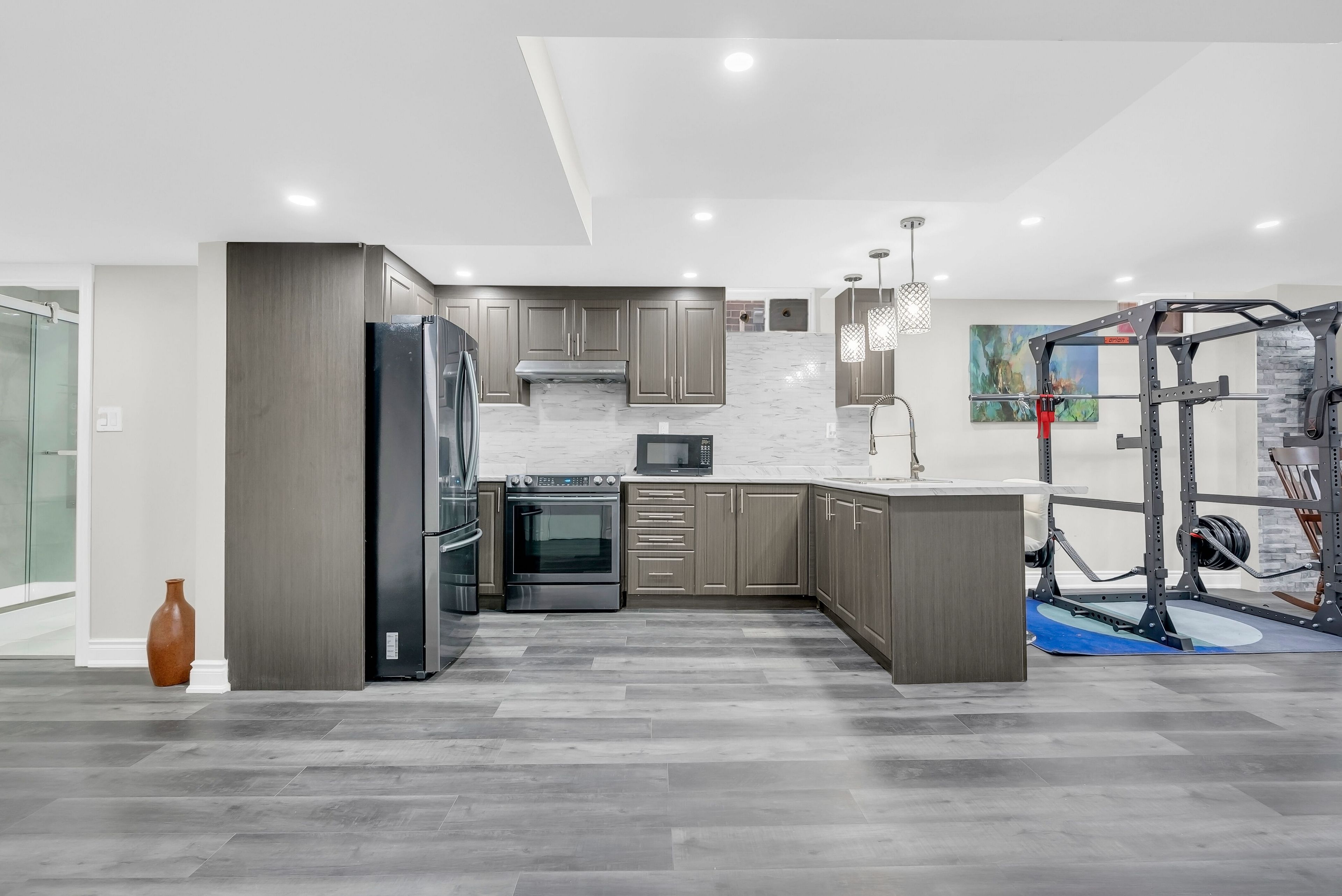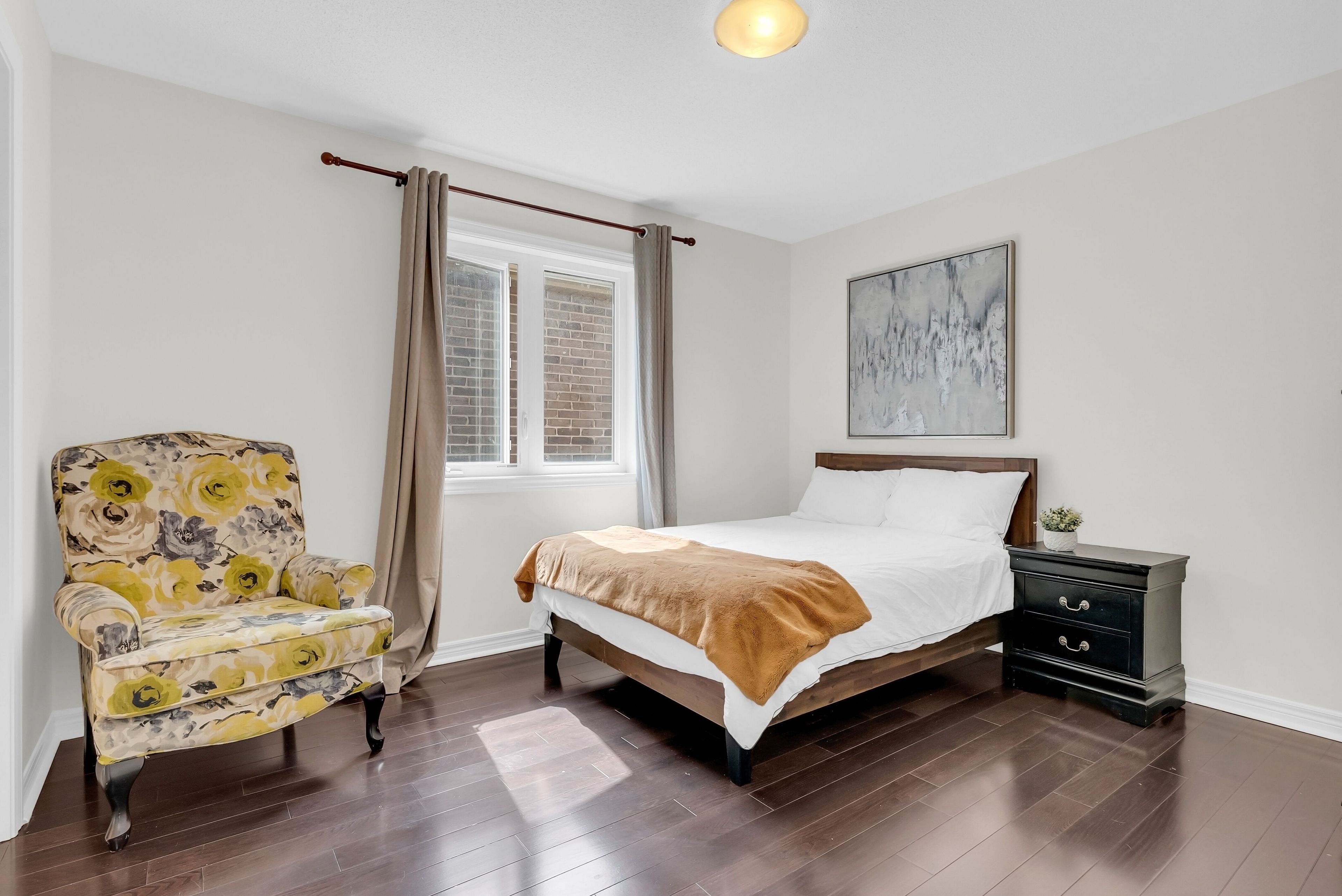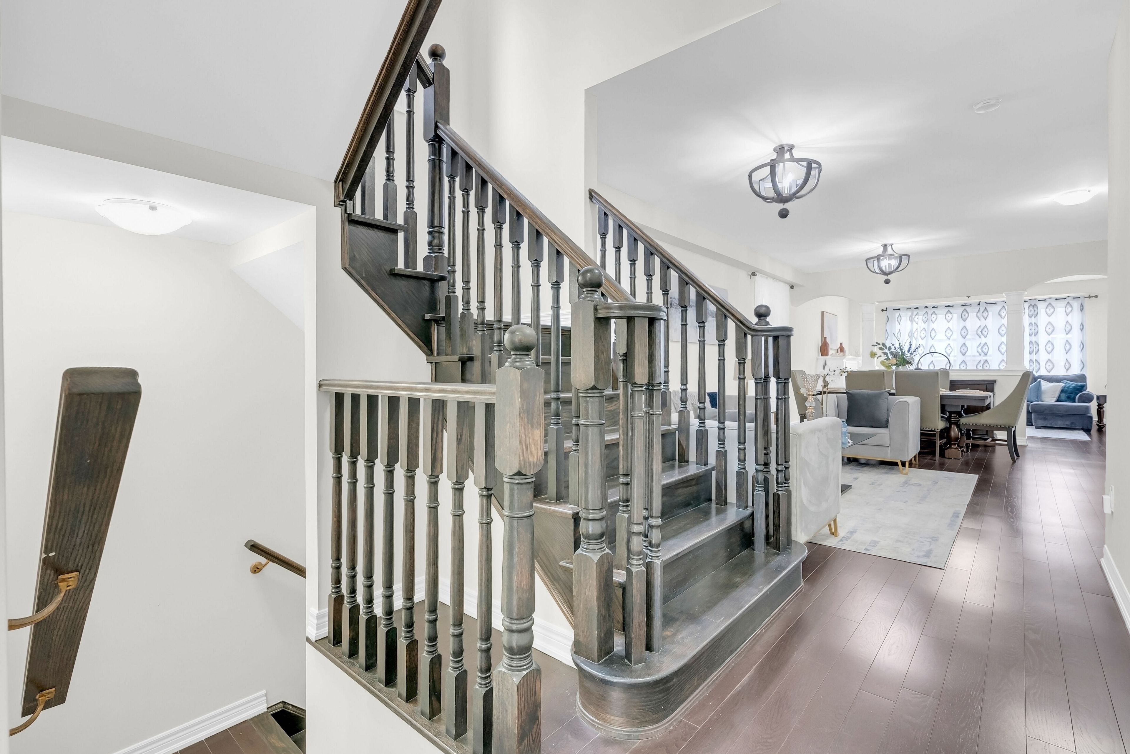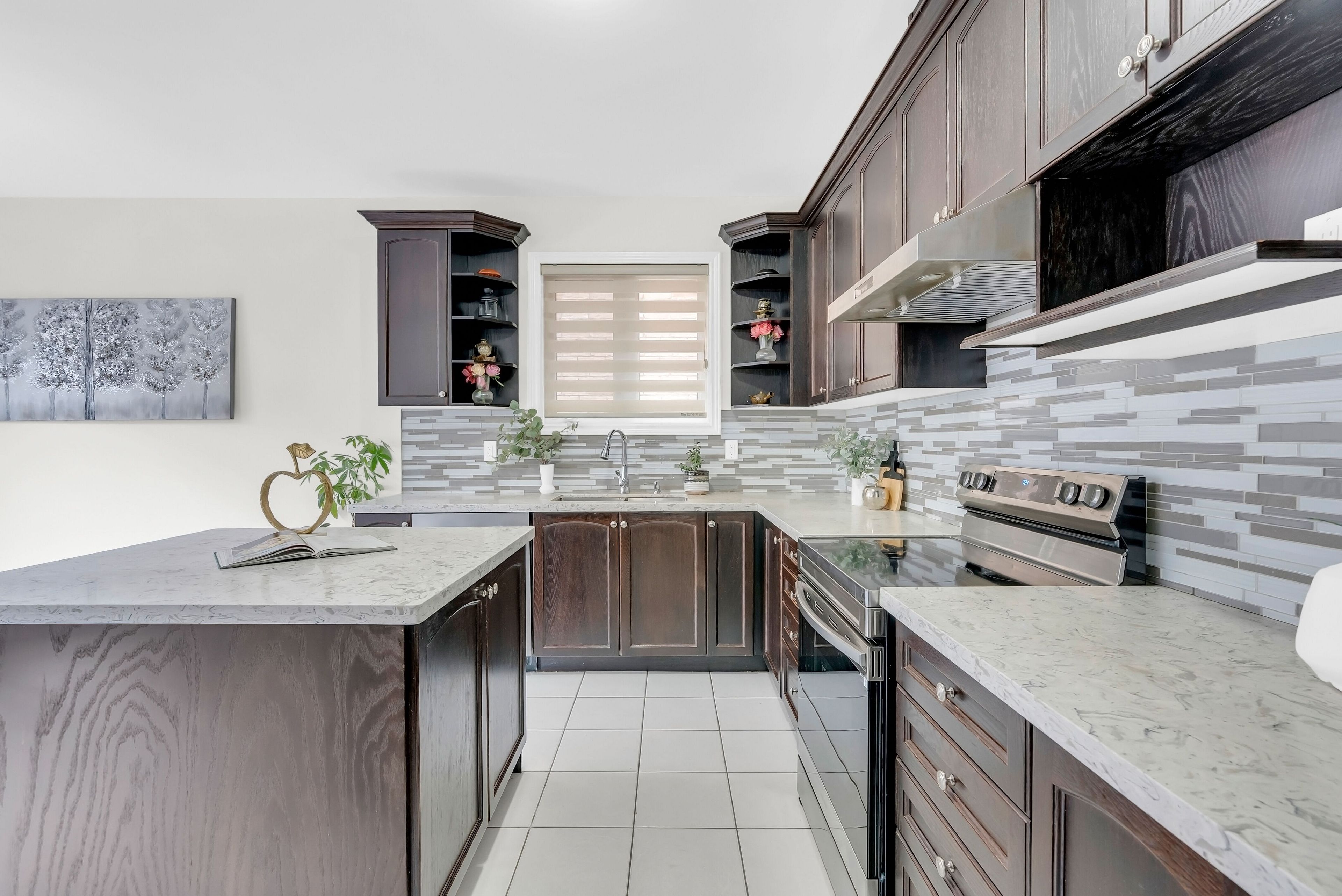 Welcome to this stunning Rosehaven-built Ravenscliffe model, offering the perfect blend of luxury, space, and functionality. Featuring five spacious bedrooms and three full bathrooms on the upper level. This freshly painted home is designed for comfort and convenience.The double-door entry opens to a well-designed layout with 9-foot smooth ceilings and hardwood flooring throughout. The main floor boasts combined living and dining areas, complemented by a bright, open-concept family room with a gas fireplace. The spacious kitchen features granite countertops, a breakfast bar, and a sunlit breakfast area with walk-out access to a fenced concrete backyard and patio-ideal for entertaining.The primary bedroom includes a 5-piece ensuite, walk-in closets with built-in designer-by-closet organizers throughout, and a raised coffered ceiling for added elegance. The finished basement offers a large one-bedroom suite; a full glass shower stand-up bathroom with clear tempered glass walls and sliding doors; full ready laundry; and a kitchen-adorned with pot lights and an electric fireplace-providing an additional living space for recreation or an extended in-law suite.This beautifully upgraded, move-in-ready home is conveniently located near Mount Pleasant GO Station, top-rated schools, parks, and all amenities, making it highly sought-after in the neighbourhood. Don't miss your chance to own this exceptional property!