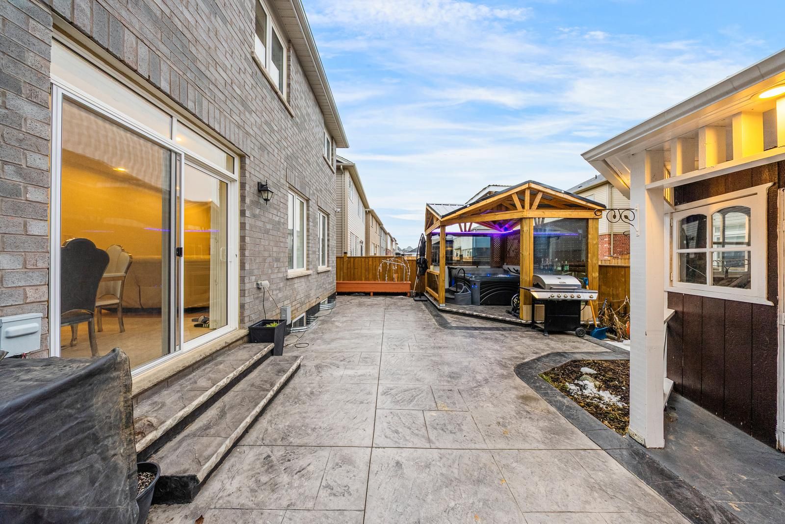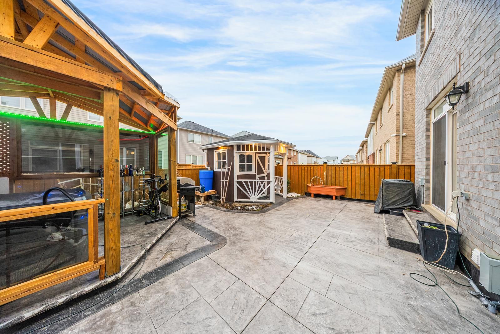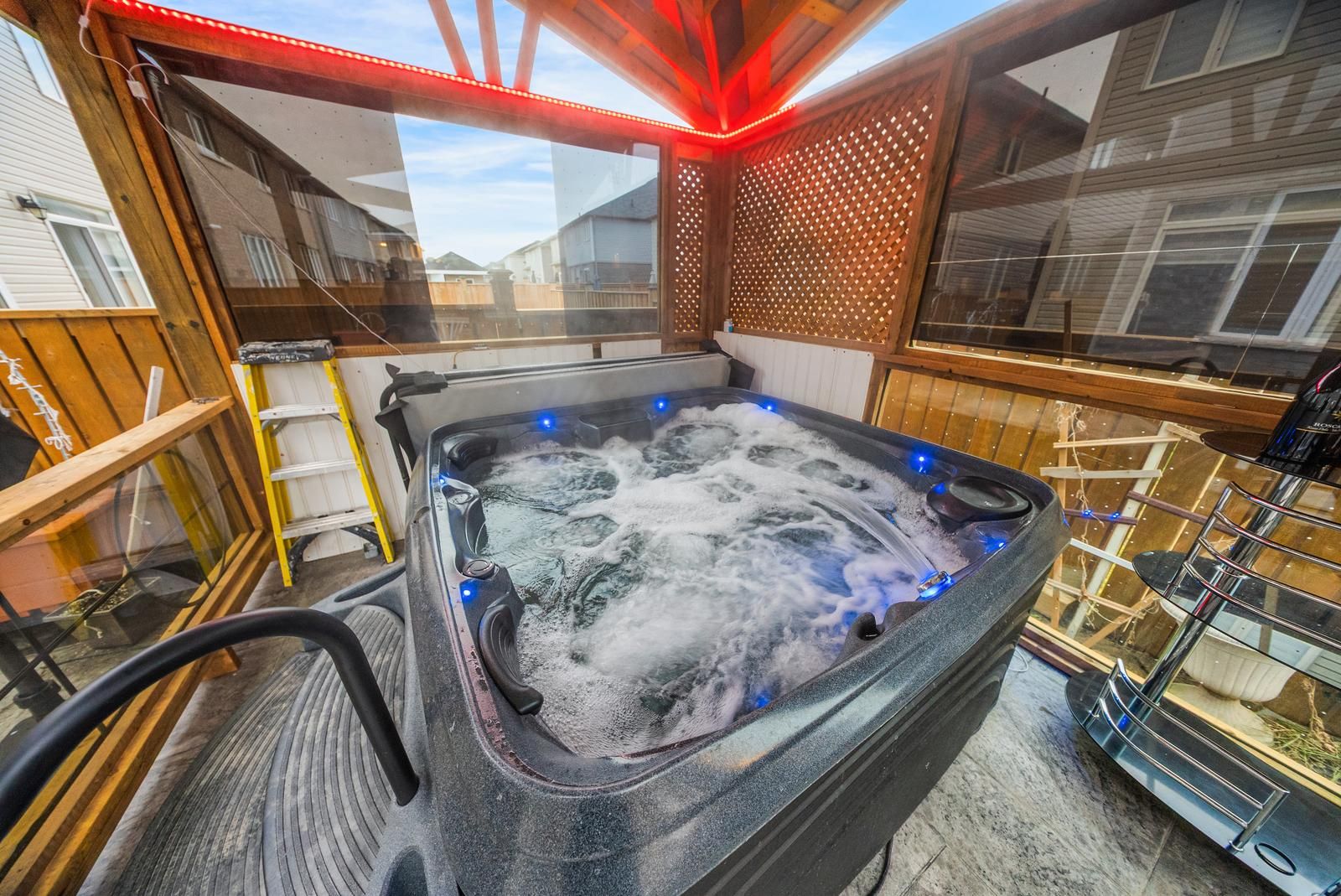 Welcome to this elegant, fully renovated 4-bedroom detached home offering nearly 2,400 sq ft of beautifully designed living space in a desirable, family-friendly community. The main level features a bright and spacious Great Room highlighted by a stone feature wall, electric fireplace, crown moulding, and pot lights, creating a warm and sophisticated atmosphere. A separate formal dining room provides the flexibility to be used as a family room or home office. The modern chef's kitchen is equipped with quartz countertops, stainless steel appliances, and ample cabinetry, seamlessly flowing into the breakfast area with walk-out access to the private backyard oasis, complete with a hot tub and gazebo, perfect for entertaining or relaxing. Upstairs, enjoy four generously sized bedrooms filled with natural light. The primary retreat boasts a 4-piece ensuite and walk-in closet, while the remaining bedrooms offer excellent space for family, guests, or work-from-home needs. Additional highlights include direct garage access, an ensuite laundry conveniently located on the second floor, upgraded finishes throughout, and a bright, open-concept layout that feels both spacious and inviting. Lease includes main and upper levels only (basement not included). Tenants to pay all utilities and rental costs for the hot water tank, furnace, and water softener. Close to schools, parks, walking trails, and all essential amenities, this is the perfect place to call home for families seeking both convenience and community.