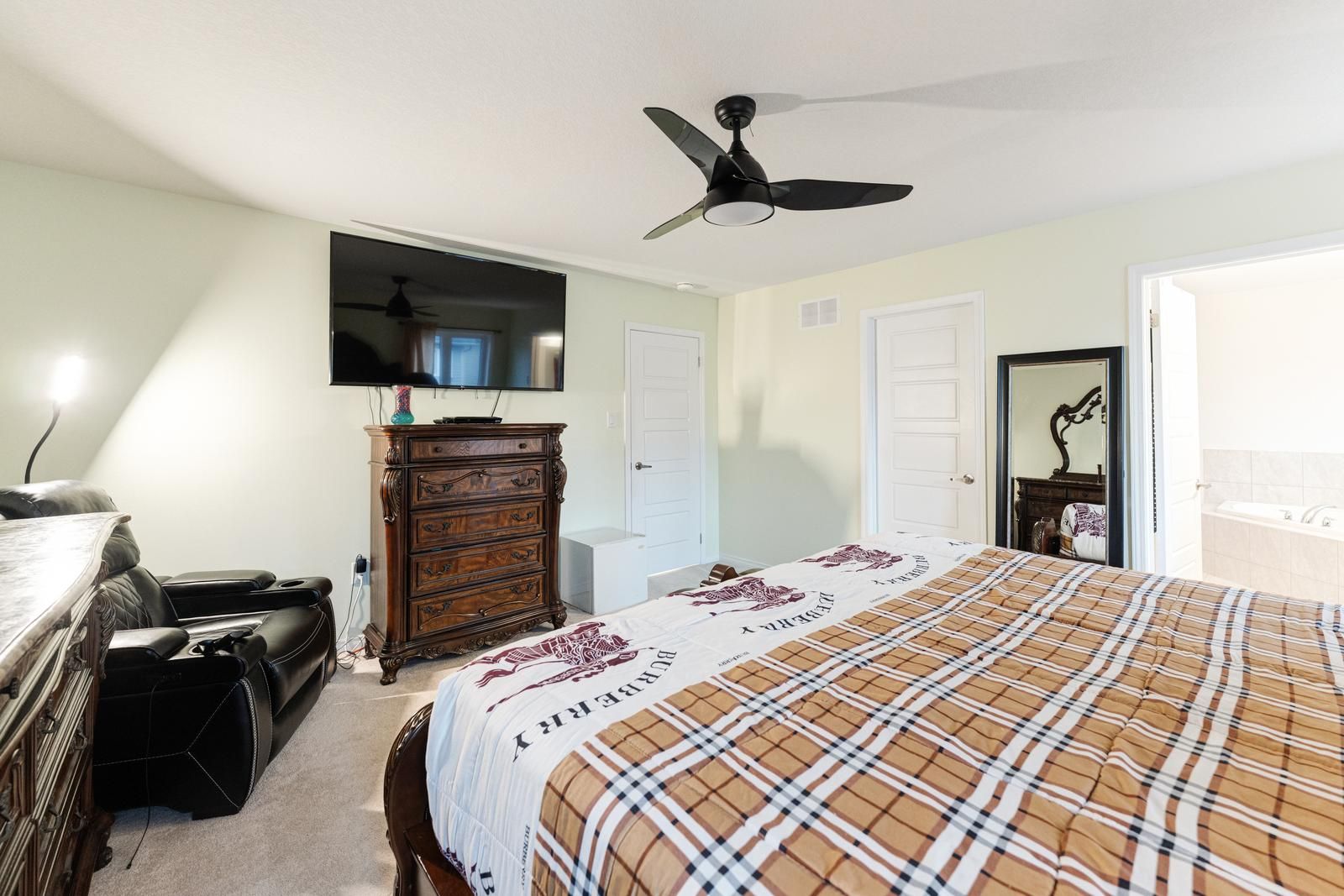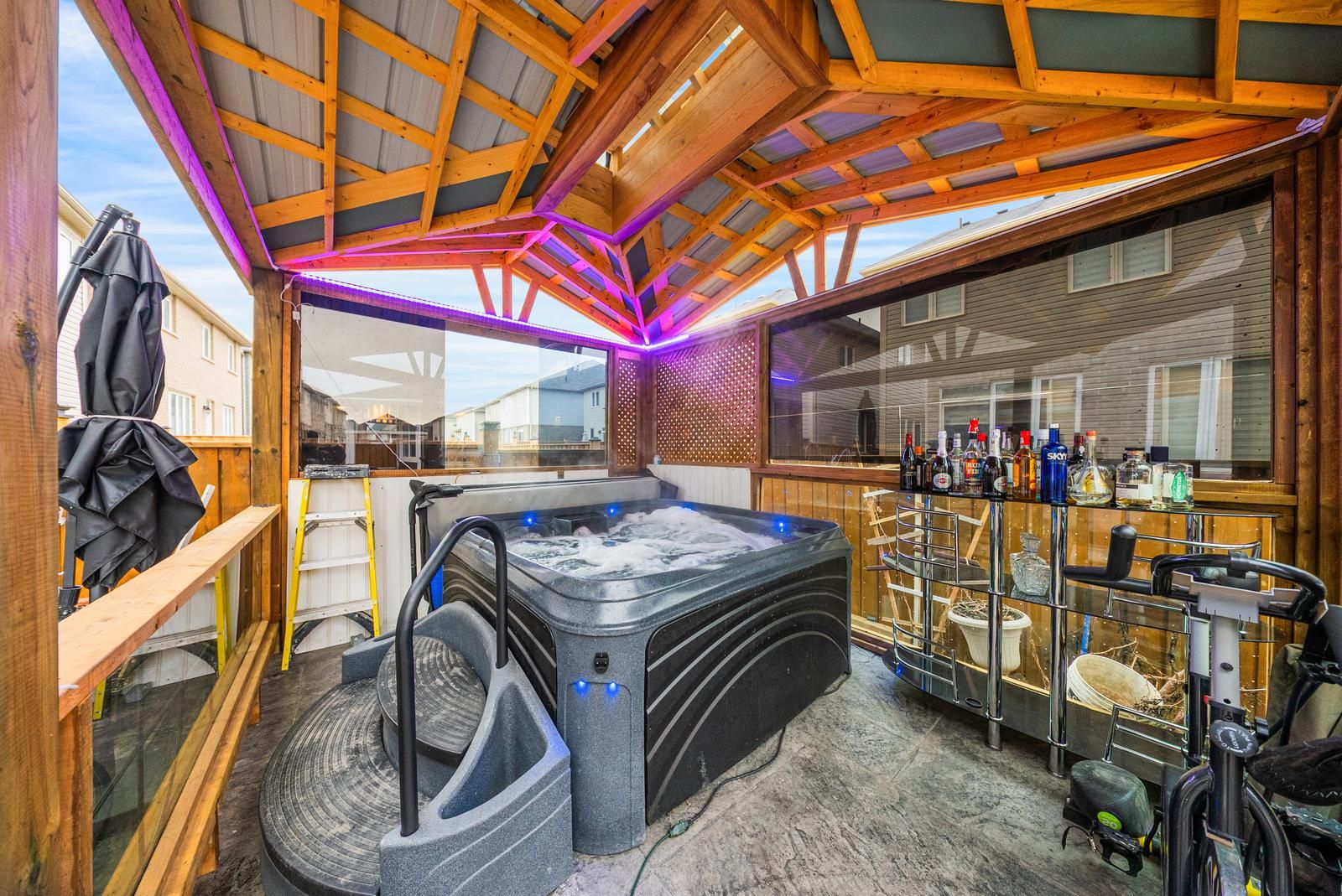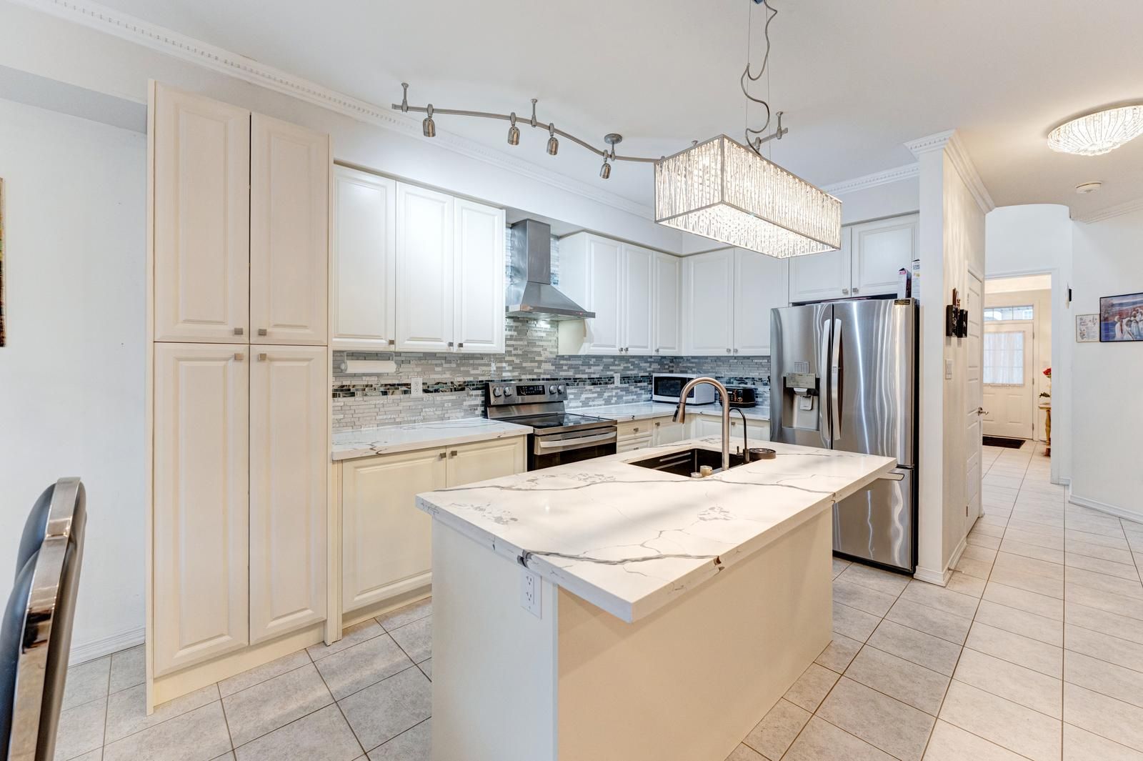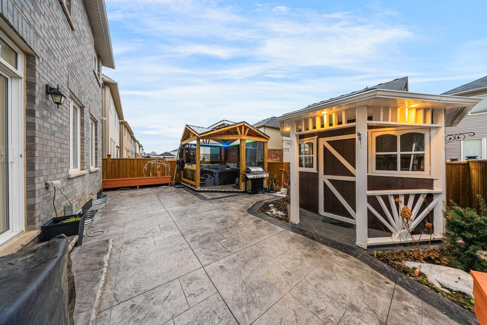 Welcome to this elegant, fully renovated 4-bedroom detached home offering nearly 2,400 sq ft of beautifully designed living space in a desirable, family-friendly community. The main level features a bright and spacious Great Room highlighted by a stone feature wall, electric fireplace, crown moulding, and pot lights, creating a warm and sophisticated atmosphere. A separate formal dining room provides the flexibility to be used as a family room or home office. The modern chef's kitchen is equipped with quartz countertops, stainless steel appliances, and ample cabinetry, seamlessly flowing into the breakfast area with walk-out access to the private backyard oasis, complete with a hot tub and gazebo, perfect for entertaining or relaxing. Upstairs, enjoy four generously sized bedrooms filled with natural light. The primary retreat boasts a 4-piece ensuite and walk-in closet, while the remaining bedrooms offer excellent space for family, guests, or work-from-home needs. Additional highlights include direct garage access, an ensuite laundry conveniently located on the second floor, upgraded finishes throughout, and a bright, open-concept layout that feels both spacious and inviting. Lease includes main and upper levels only (basement not included). Tenants to pay all utilities and rental costs for the hot water tank, furnace, and water softener. Close to schools, parks, walking trails, and all essential amenities, this is the perfect place to call home for families seeking both convenience and community.