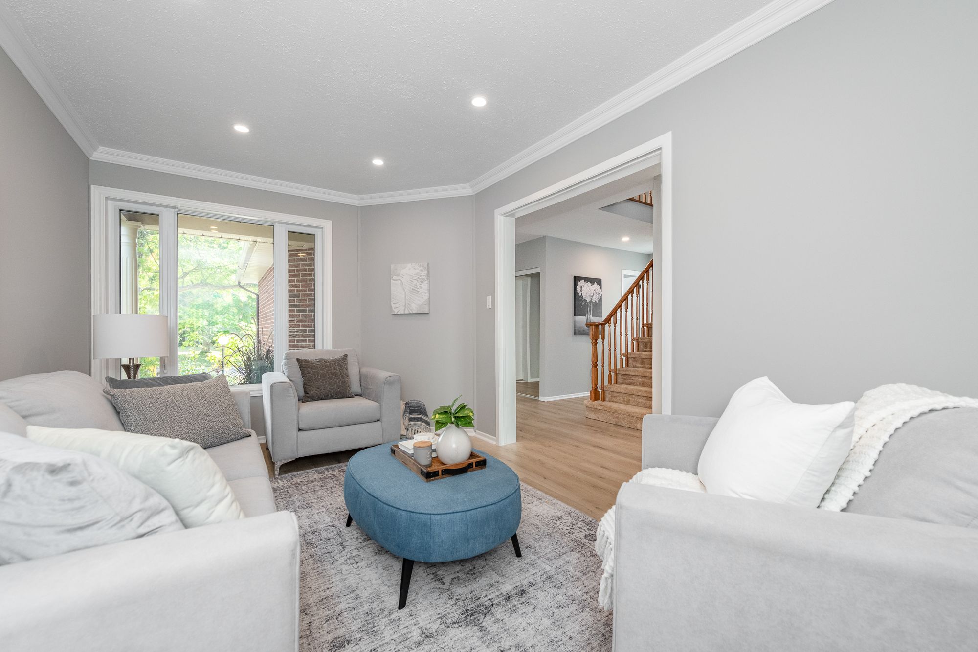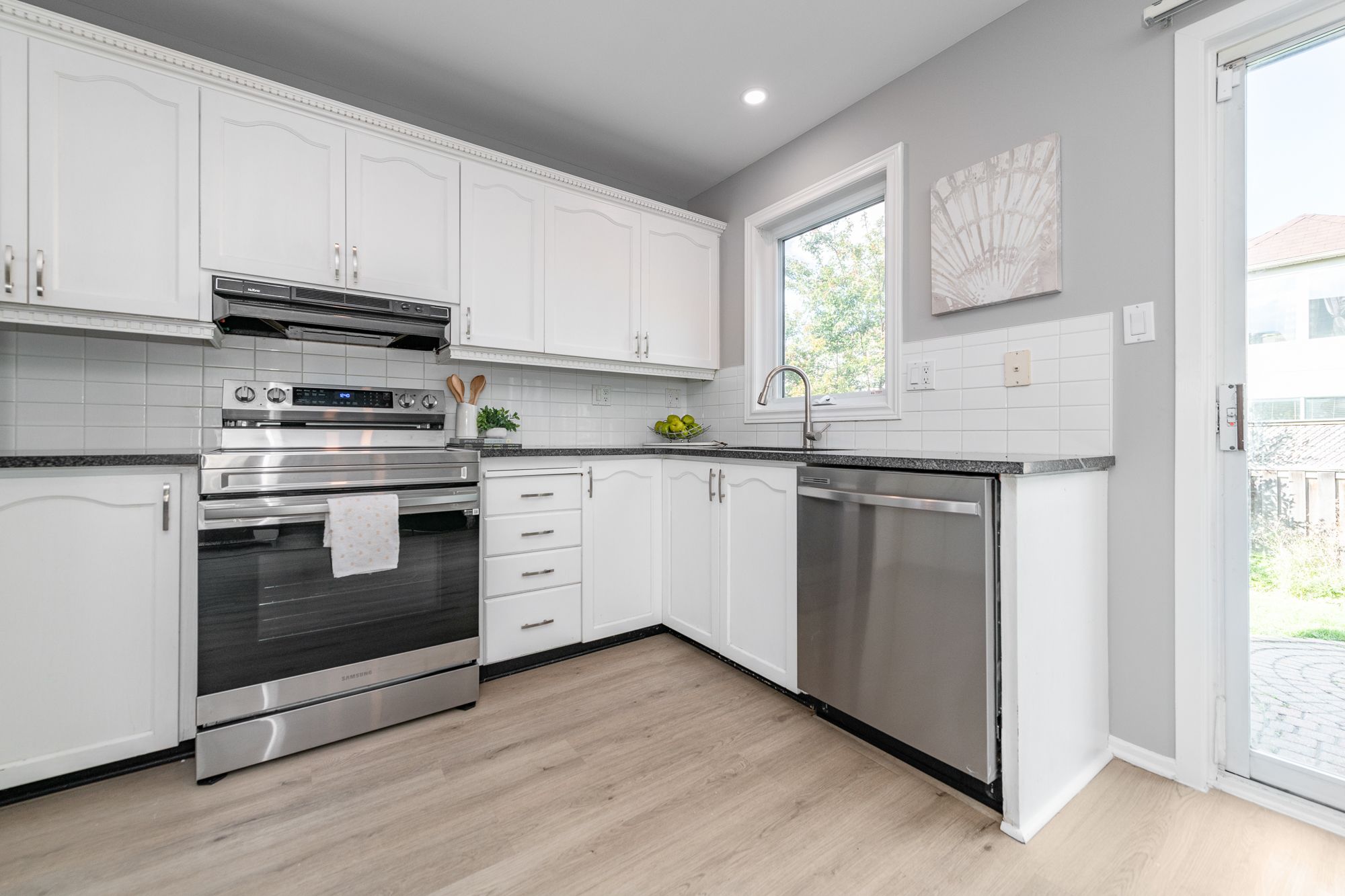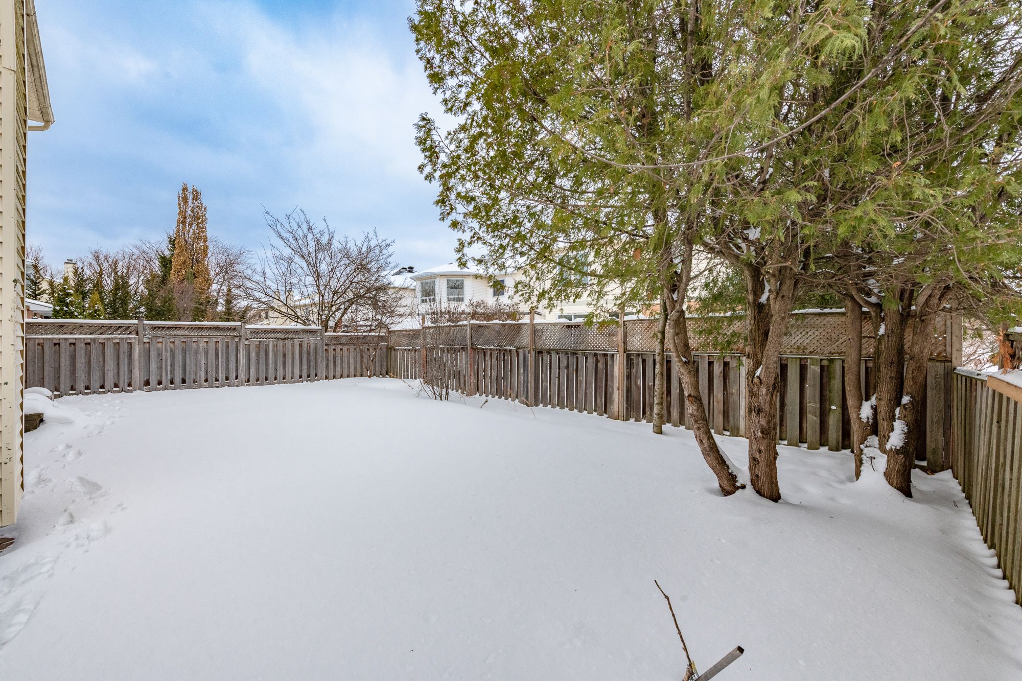 This inviting 4-bedroom, 3-bathroom detached home sits on a premium corner lot, offering space and privacy. The bright main floor features new flooring, a modern kitchen with stainless steel appliances and room for a large island, plus a cozy sunken family room with wood-burning fireplace. Upstairs offers four spacious bedrooms, including a primary retreat with walk-in closet and private ensuite. The finished lower level provides versatile space for a rec room, home gym, or media area. Outdoors, enjoy a fenced backyard with interlock patio and landscaped gardens; ideal for entertaining or relaxing. Updates include furnace (2017), A/C (2025), roof (2018 partial), and fencing (2018). Convenient location with quick access to HWYs 416/417, parks, schools, shopping, and trails.