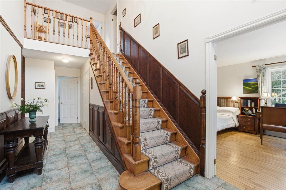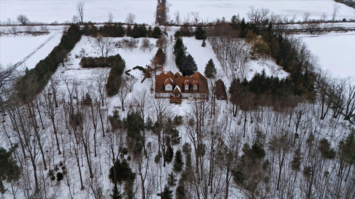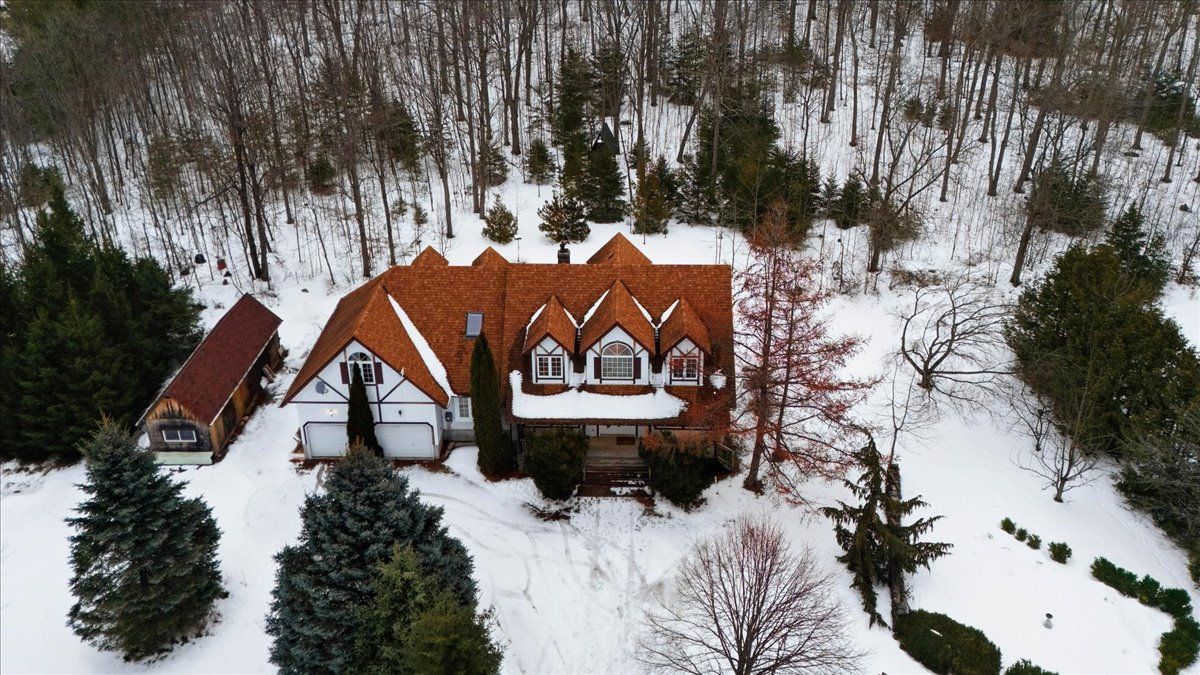 Stunning Cape Cod style 3-bed plus den, 3-bath 2-storey home with an attached 2-car garage and a 10 x 30 outbuilding, situated on over 9 acres. Approximately three-quarters of the property is beautifully treed with a mix of coniferous and deciduous species, offering exceptional privacy and a serene natural setting. Offering a lifestyle of total privacy and unparalleled versatility, this estate is the perfect blend of modern comfort and rural escape. The main level unfolds into an expansive layout designed for both grand entertaining and quiet family mornings. The gourmet country kitchen and sun-drenched breakfast nook serve as the home's hub, centered by a magnificent double-sided fireplace that provides a seamless, cozy transition into the formal living room. A dedicated dining room & a convenient main-level laundry room round out the functional elegance of the first floor. The main-floor primary suite is a true retreat, intentionally separated from the upper bedrooms to ensure maximum privacy. This space features a walk-in closet & a spa-like 5-piece ensuite, offering a tranquil escape at the end of the day. Upstairs, the home continues to impress with two additional generously sized bedrooms, a den, and a bright 4-piece bathroom, perfect for family or guests. Endless Potential for those looking to expand their living space, the lower level remains a blank canvas, ready for your finishing touches-whether you envision a home theatre, a personal gym, or a games room. The 2-car garage boasts a workshop at the rear & a charming loft above-an ideal setup for a home-based business, an art studio, or a private guest suite-along with the additional 10 x 30 outbuilding. The shed is equipped with hydro service, offering both 120V & 240V power for added functionality. Ryan Road is serviced by a school bus, making this an excellent option for families. This property is more than just a home; it is an opportunity to cultivate the life you've always dreamed of. Don't miss out!
