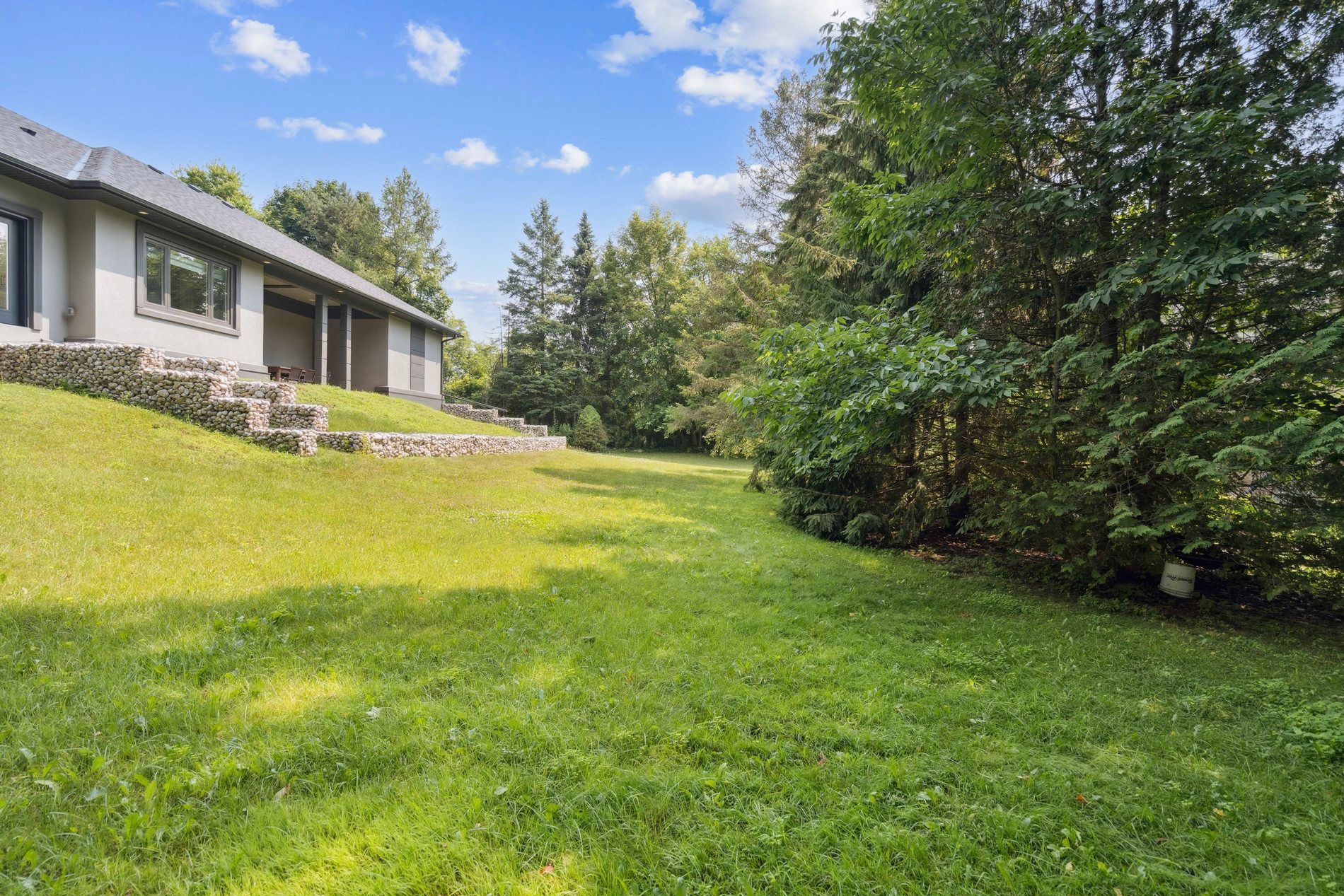 1 Gaywood Gardens, Brantford Luxury, Redefined. Step into a world of modern elegance in this custom-built 2019 bungalow offering over 4,000 sq ft of high-end living space in one of Brantford's most desirable pockets. Just moments from the Brantford Golf & Country Club, Glenhyrst Gardens, scenic trails, and top-rated schools, this exceptional residence combines timeless design with everyday convenience. The open-concept main floor welcomes you with soaring 10-foot ceilings, engineered hardwood floors, and oversized windows that bathe the space in natural light. At the heart of the home, the chef's kitchen features BOSCH appliances, sleek flat-panel cabinetry, a striking tile backsplash, and access to a covered porch, unfinished, and ready to be customized to your taste. All three main-floor bedrooms are thoughtfully designed with private ensuite bathrooms and radiant in-floor heating. The stunning primary suite boasts a dual vanity, walk-in shower with dual heads, and indulgent body jets. The fully finished lower level adds versatility with a spacious rec room, home office, bonus room, and a fourth bedroom with a 3-piece bath, ideal for extended family or guests. Designed with long-term comfort and efficiency in mind, this home includes a triple-car garage with Wi-Fi-enabled insulated garage doors, a 146 x 96 attached insulated workshop/shed, and a complete security system with four night vision cameras. Premium upgrades include spray foam insulation (R40), attic insulation (R60), all-new HVAC, ductwork, 200 Amp panel, plumbing, double-glazed windows, and solid eight-foot wood interior doors. Bright soffit lighting, hardwired internet at every TV and desk, and energy-saving LED lighting throughout complete the experience. Included: espresso machine, washer/dryer, all appliances, custom blinds, dining table/chairs, and patio furniture. This is more than a home; it's where luxury meets lifestyle.