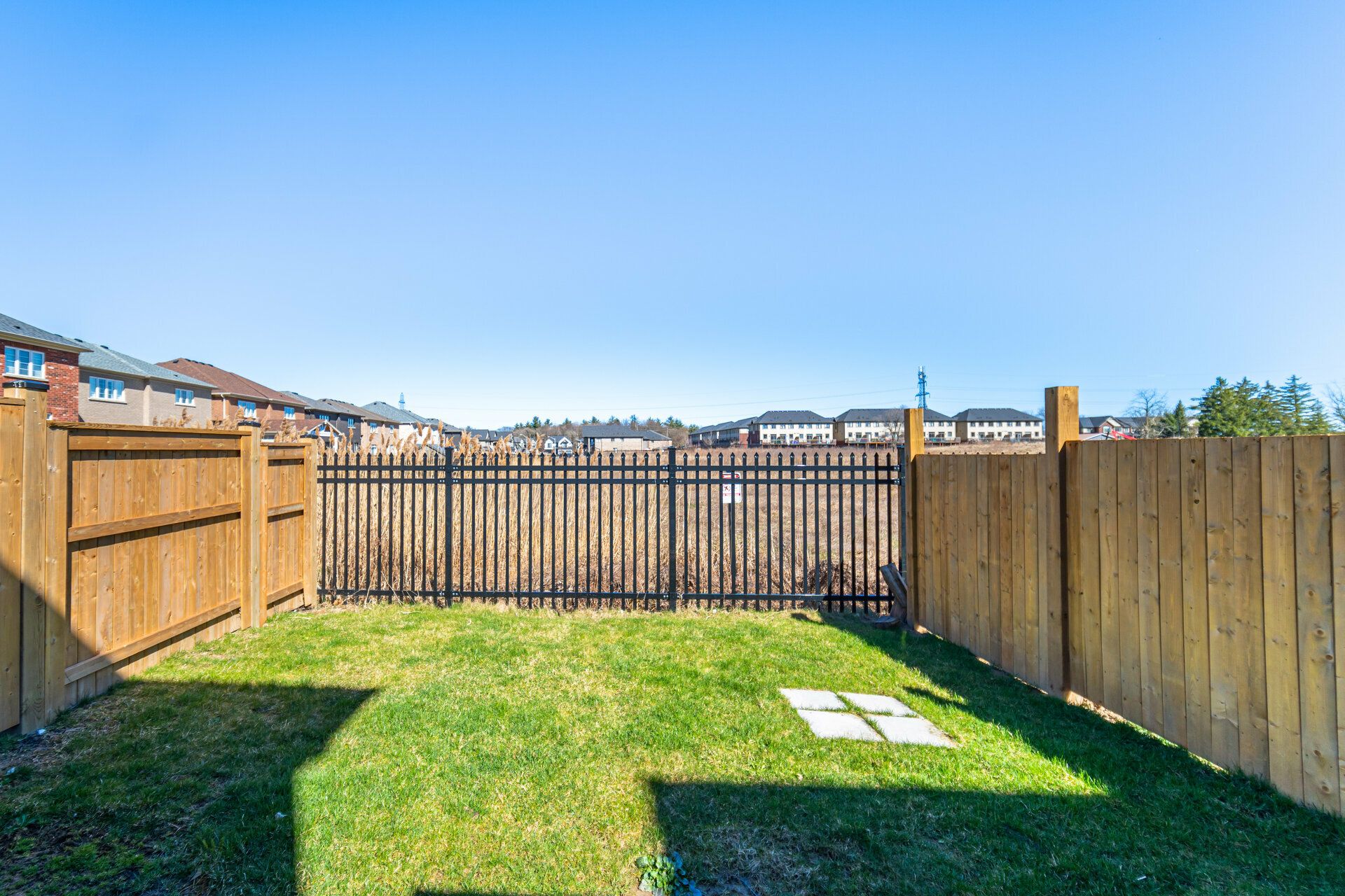Welcome to 84 Heming Tr. Built by Rosehaven home. Spacious Four bedrooms and Three bathrooms. 9" ceiling on main floor. Located at Tiffany Hills Meadowlands in Ancaster. Hardwood flooring on dining and great room. Ceramic floor on kitchen/eat in breakfast area. The kitchen offers brown modern cabinetry. Quartz kitchen countertop. Open kitchen and great room. Second floor laundry. Master has free standing tub/shower and walk in closet. Very bright with large windows. California shutters throughout, Natural Gas fire place. Fenced backyard. Rough in bathroom in basement. Garage access to home. Oak wood stairs to basement. Single car garage. Driveway can accommodate two cars. No walkway. Backing to green space. Just walk to school, Parks. Minutes to Alexander Graham Bell pkwy, HWY 403, Lincoln M Alexander Pkwy