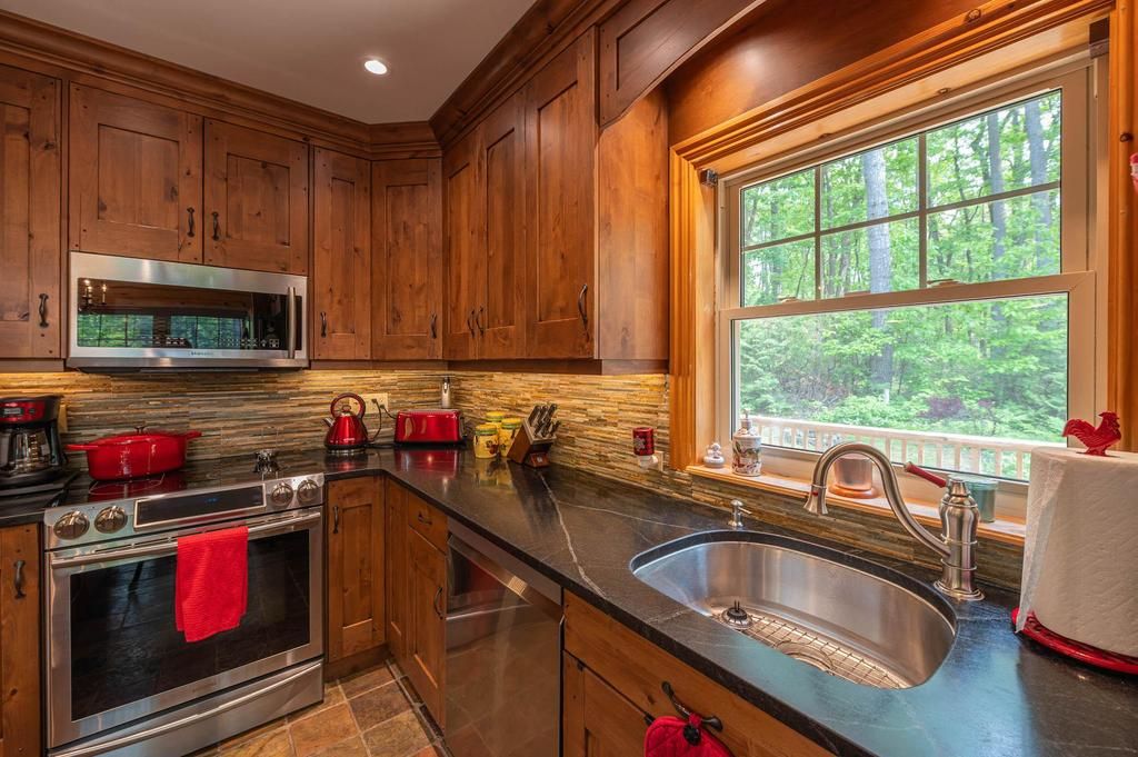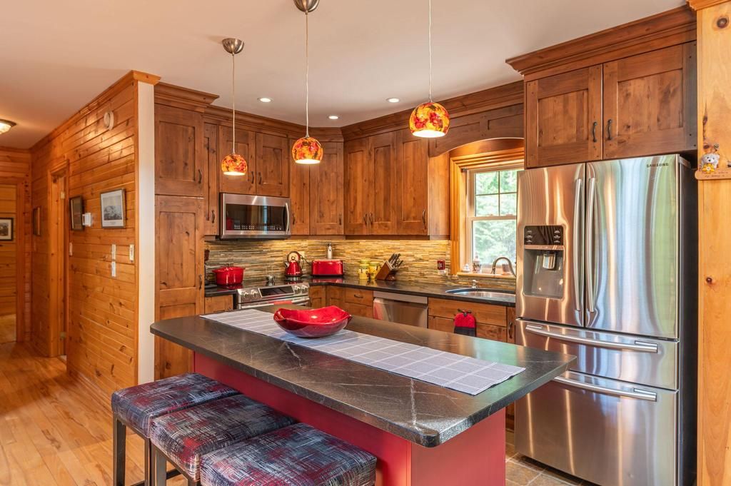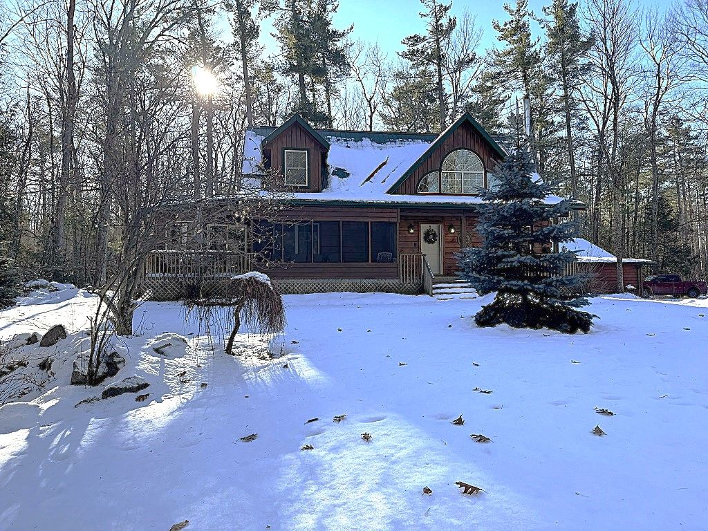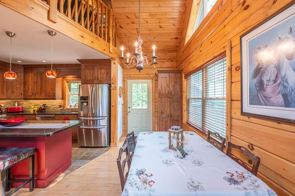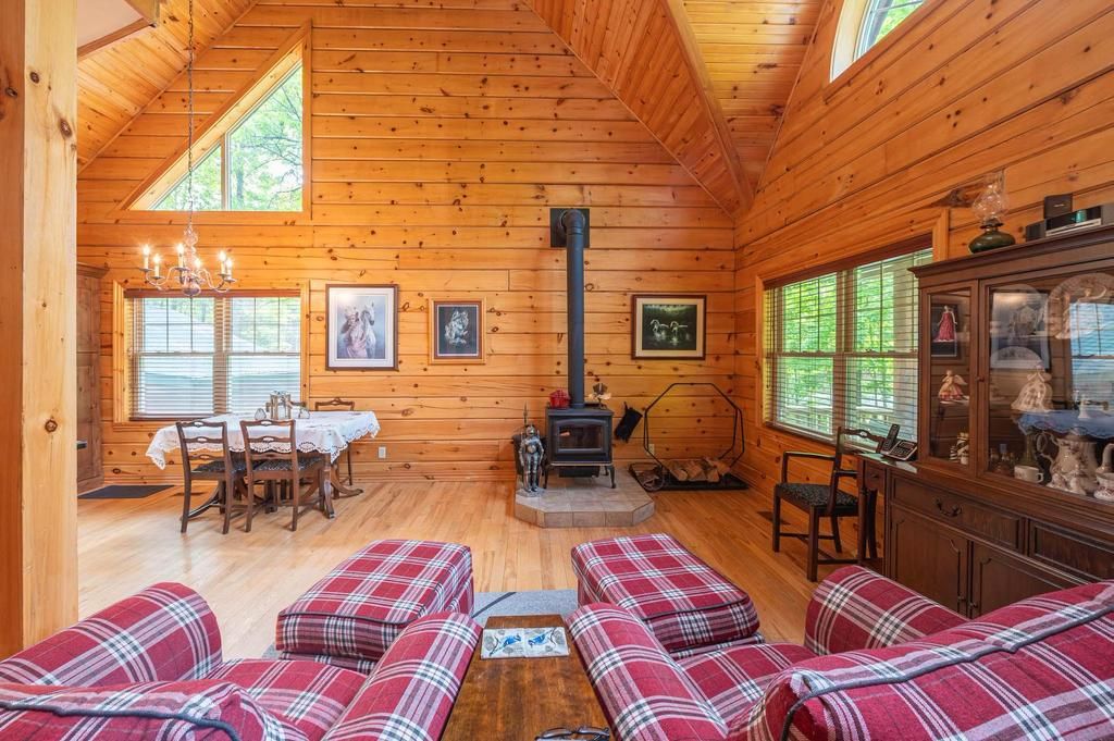 Well maintained home nestled on 1.5 acre treed lot a short walk to a public access on Pigeon Lake for great swimming. You won't be disappointed by this classic rustic log home featuring 3 bedrooms, 2.5 baths, stunning vaulted ceilings, open concept with a cozy wood stove which is WETT certified. The 4-season sunroom with propane stove overlooks a private treed yard. The updated kitchen with alderwood cabinets and soapstone counters blends perfectly with the open concept living area. The main level bedroom is located across from a newly renovated bathroom. The second floor has a large primary suite with a 5 pc ensuite bathroom plus an office area open to the floor below. The lower level is fully finished with a large family room and plenty of storage. Screened in porch, large deck, perennial gardens and an oversized double car garage with carport. Situated on a township road, and a school bus route, close to the town of Buckhorn.