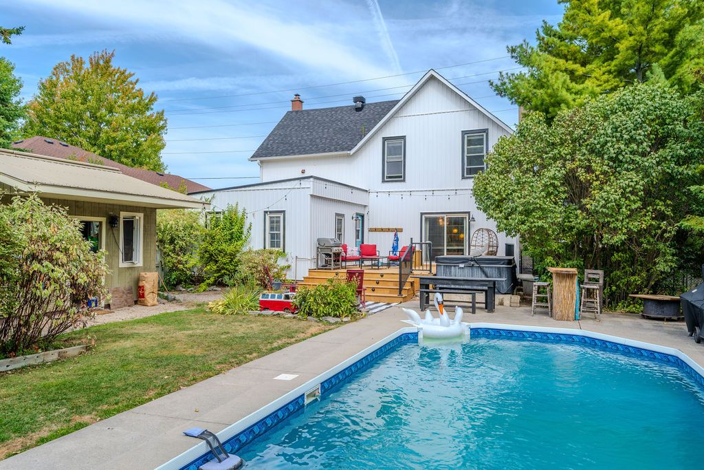***Charming Century Home with Modern Comforts in a Prime Location*** Step into timeless elegance with this beautifully preserved and thoughtfully updated century home, nestled in one of the most sought-after neighborhoods. Located directly across from Woodbine Park and just minutes from top-rated schools, this 3-bedroom, 2.5-bathroom home is the perfect blend of historic charm and modern convenience. From the moment you arrive, you'll be captivated by the original architectural details and unique character features that tell a story of craftsmanship and history. Recent updates have been carefully integrated to preserve the home's heritage while offering the luxury and functionality today's lifestyle demands. The bright and inviting main floor boasts some original woodwork and cozy living spaces perfect for entertaining or unwinding. The updated kitchen maintains its old-world charm while offering modern appliances and cabinetry. The impressive new ensuite bathroom off the primary bedroom is a true standout, designed with refined finishes, a spacious open shower, a stand-alone tub, and classic touches that honour the home's vintage soul. Step outside into your own private oasis. The expansive deck overlooks a lush, landscaped backyard filled with mature greenery and perfect privacy. Enjoy summers by the inground pool, relax in the hot tub, or host memorable gatherings under the stars. With numerous recent upgrades on both the interior and exterior, this home is move-in ready while still offering the warmth and character that only a true century home can provide. Don't miss your chance to own this exceptional property that effortlessly combines the past and present in one incredible package.