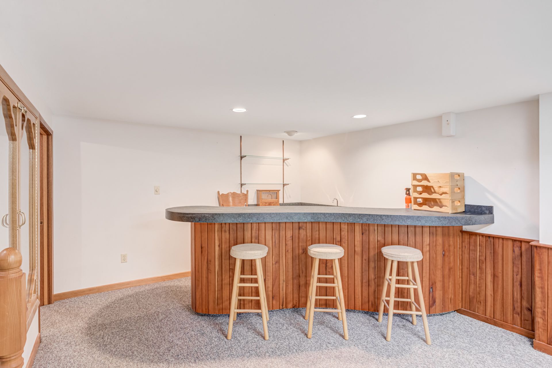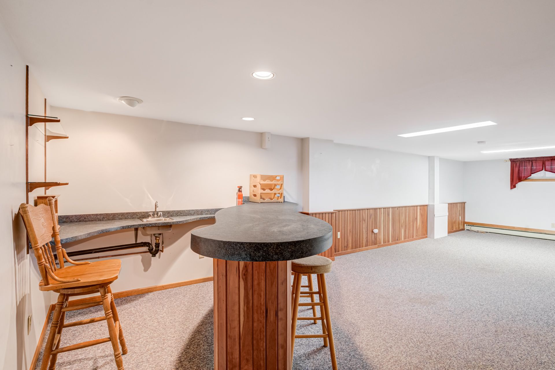 Welcome to this thoughtfully updated bungalow, perfectly situated just steps from the hospital and within easy walking distance of all that downtown Wiarton has to offer. Combining modern finishes with everyday convenience, this move-in-ready home is ideal for a wide range of buyers. The fully renovated main floor features a bright, open-concept living space accented by engineered hardwood flooring and a stunning custom kitchen that seamlessly blends style and functionality. Three generously sized bedrooms and a full bathroom complete the main level, making this an excellent option for families, retirees, or anyone seeking comfortable one-level living. Enjoy affordable, efficient comfort year-round with a natural gas boiler heating system. Car enthusiasts, hobbyists, and those in need of exceptional storage will appreciate the rare garage setup which is an attached garage, bonus workshop, and a second garage, all connected and offering over 1,200 sq ft of versatile space. Step outside to a spacious, private backyard featuring a new deck with privacy louvers making it perfect for entertaining, relaxing, or enjoying quiet evenings outdoors. The finished walk-up basement adds even more value, offering additional living space complete with a bar and a second full bathroom, ideal for hosting guests or creating a cozy rec room. With its prime location, modern renovations, impressive garage space, and private outdoor setting, this Wiarton bungalow truly checks all the boxes.