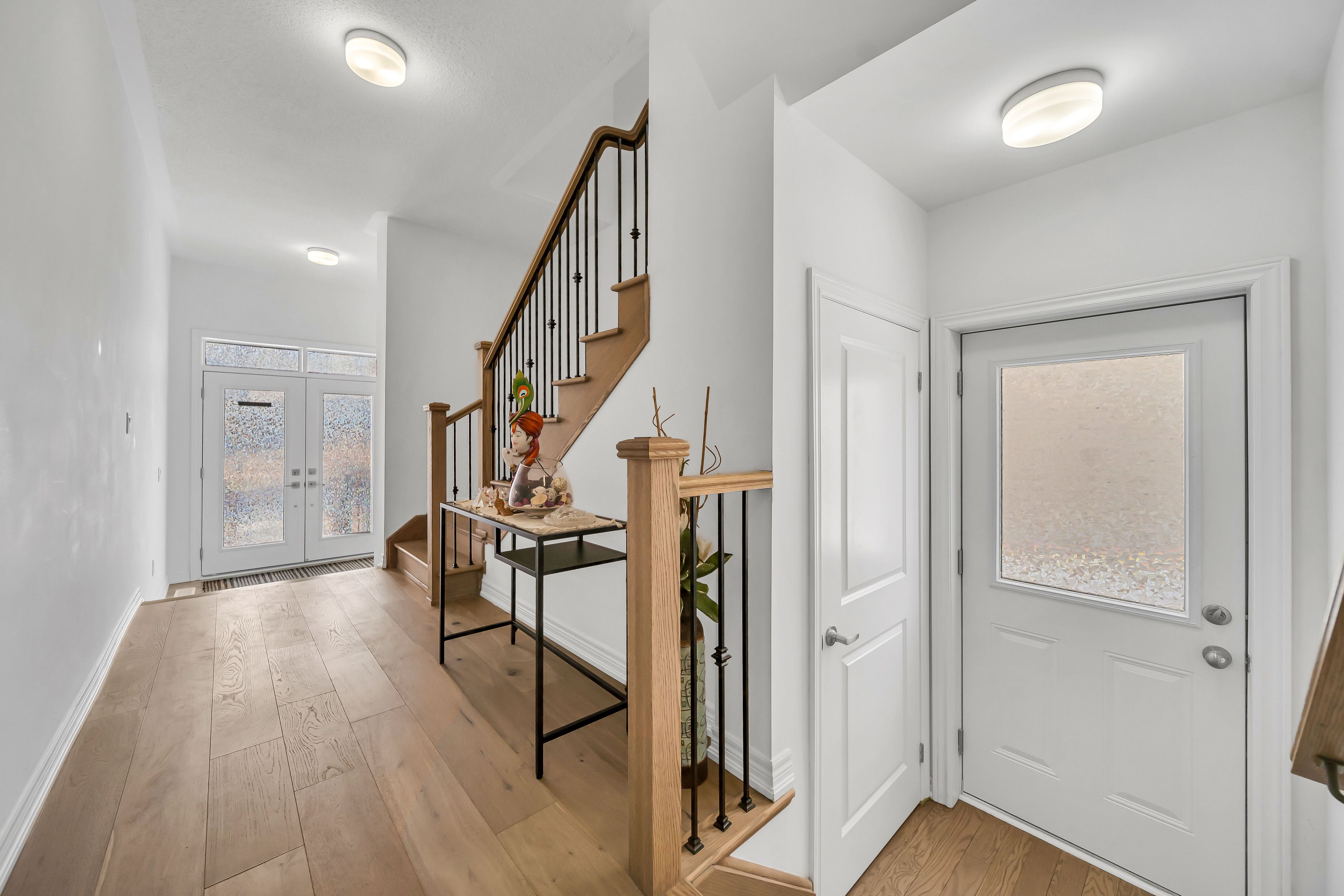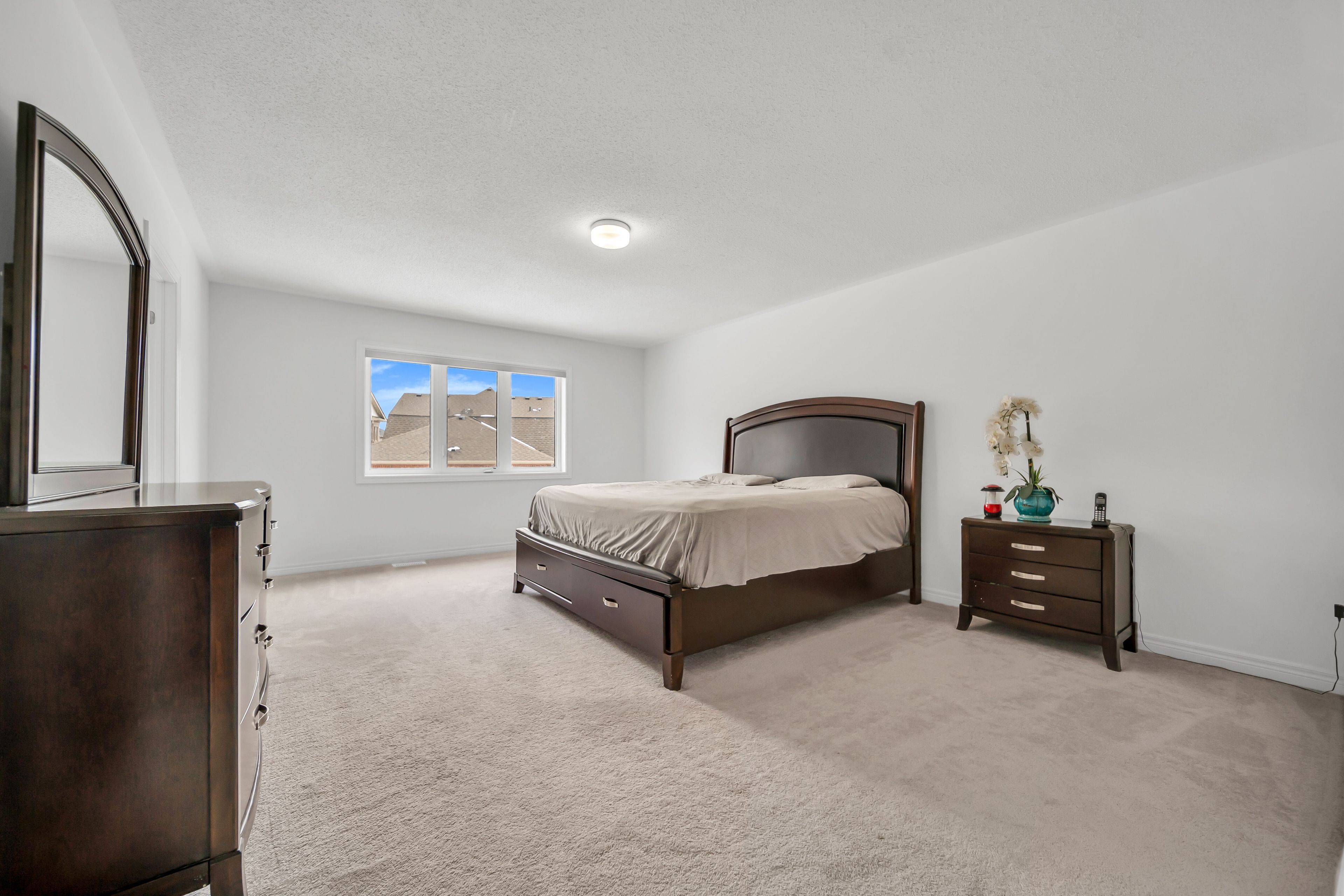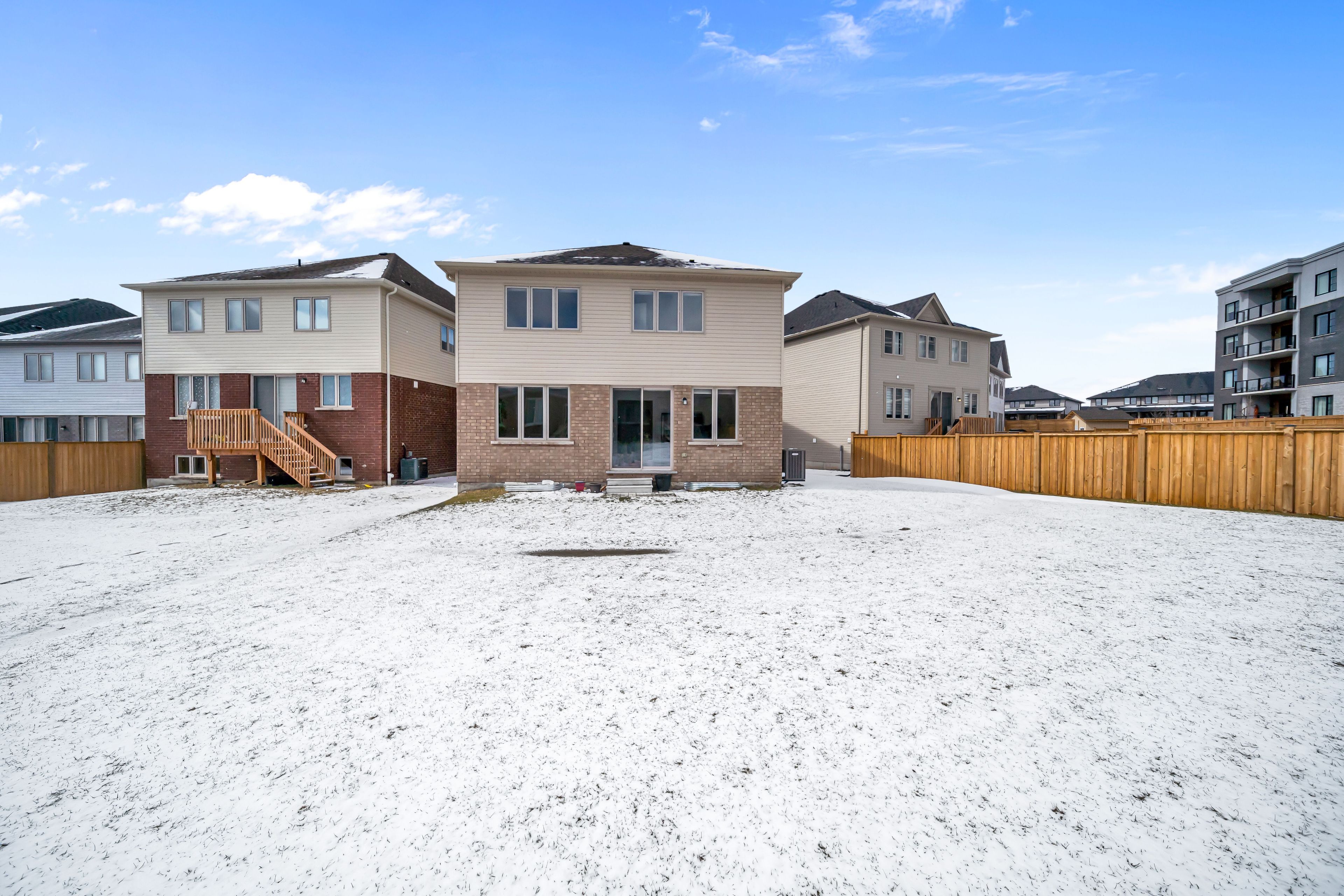 Discover refined living in this stunning, freehold detached home located in the prestigious Storybrook Subdivision. Designed with elegance and comfort in mind, this exceptional residence offers 5 spacious bedrooms, 3.5 luxurious bathrooms, and parking for up to 4 vehicles, making it ideal for families seeking both style and functionality. From the moment you step inside, you are welcomed by soaring ceilings, expansive windows, and beautifully appointed living spaces filled with natural light. The thoughtfully designed main floor features a separate living room, an elegant family room, and a sophisticated library/home office that can easily be converted into a main-floor bedroom, offering flexibility for modern living. The gourmet chef-inspired kitchen is the heart of the home, showcasing a large upgraded island with breakfast bar, premium finishes, and a spacious breakfast area perfect for entertaining or everyday family dining. The adjoining great room provides a warm and inviting atmosphere, ideal for hosting gatherings or relaxing evenings. Upstairs, retreat to the luxurious primary suite, featuring his-and-hers walk-in closets and a spa-inspired 5-piece ensuite designed for ultimate relaxation. Four additional generously sized bedrooms, a shared 3-piece bathroom, and the convenience of a second-floor laundry room complete the upper level. The unfinished basement offers endless possibilities to create your dream space-whether it's a home theatre, fitness studio, recreation area, or additional living suite. Prime Location Highlights: Only 5 minutes to FreshCo and everyday amenities Walking distance to a brand-new public school Approximately 45 minutes to the GTA, offering the perfect balance of tranquility and city access. Legal Side entrance for the basement given by the builder.