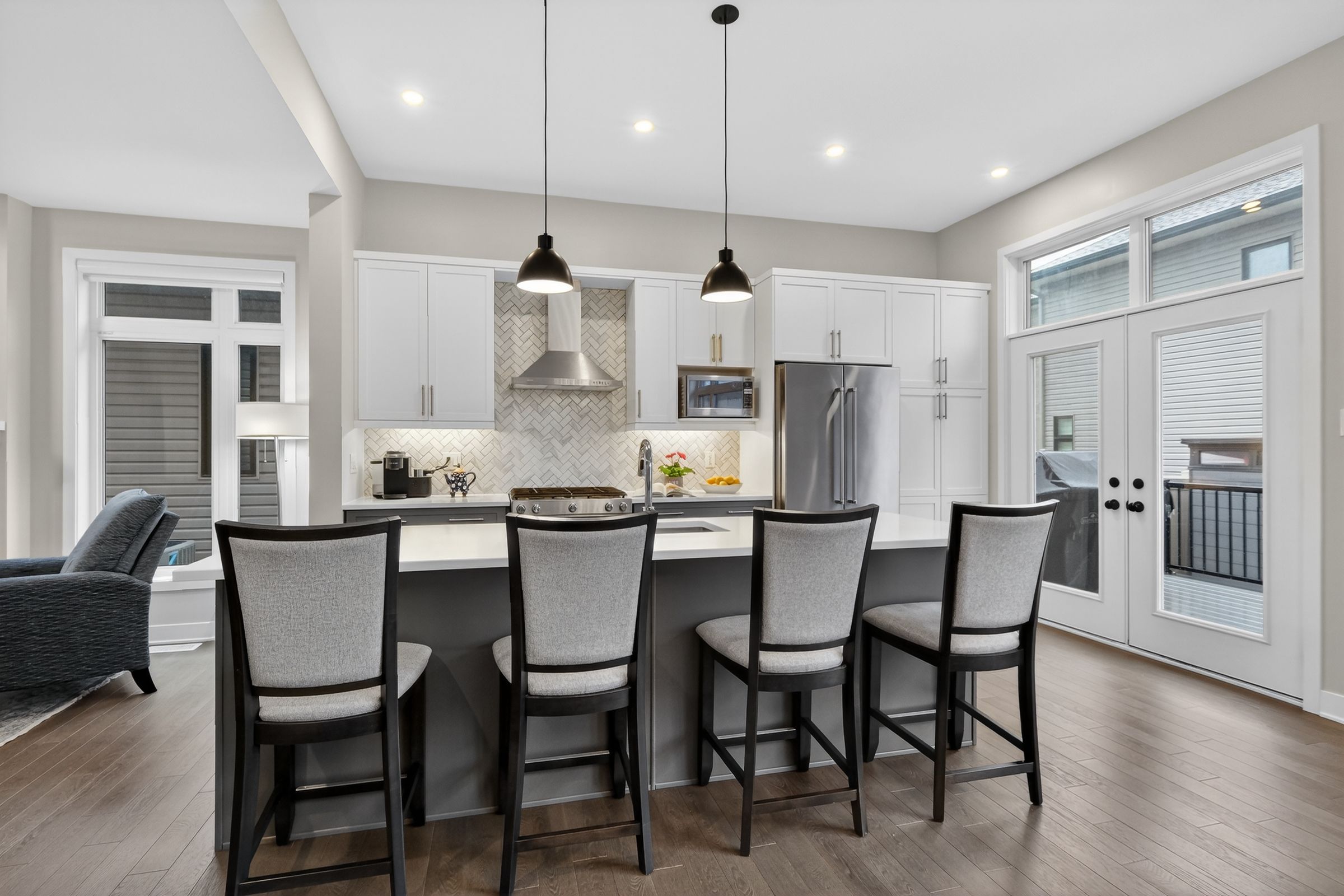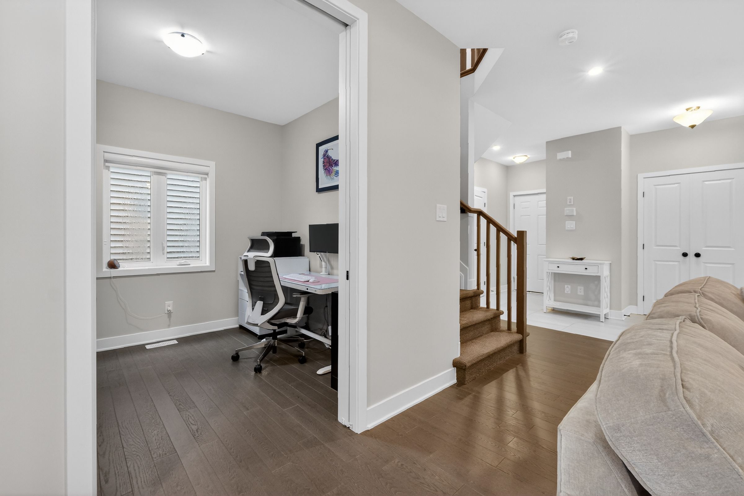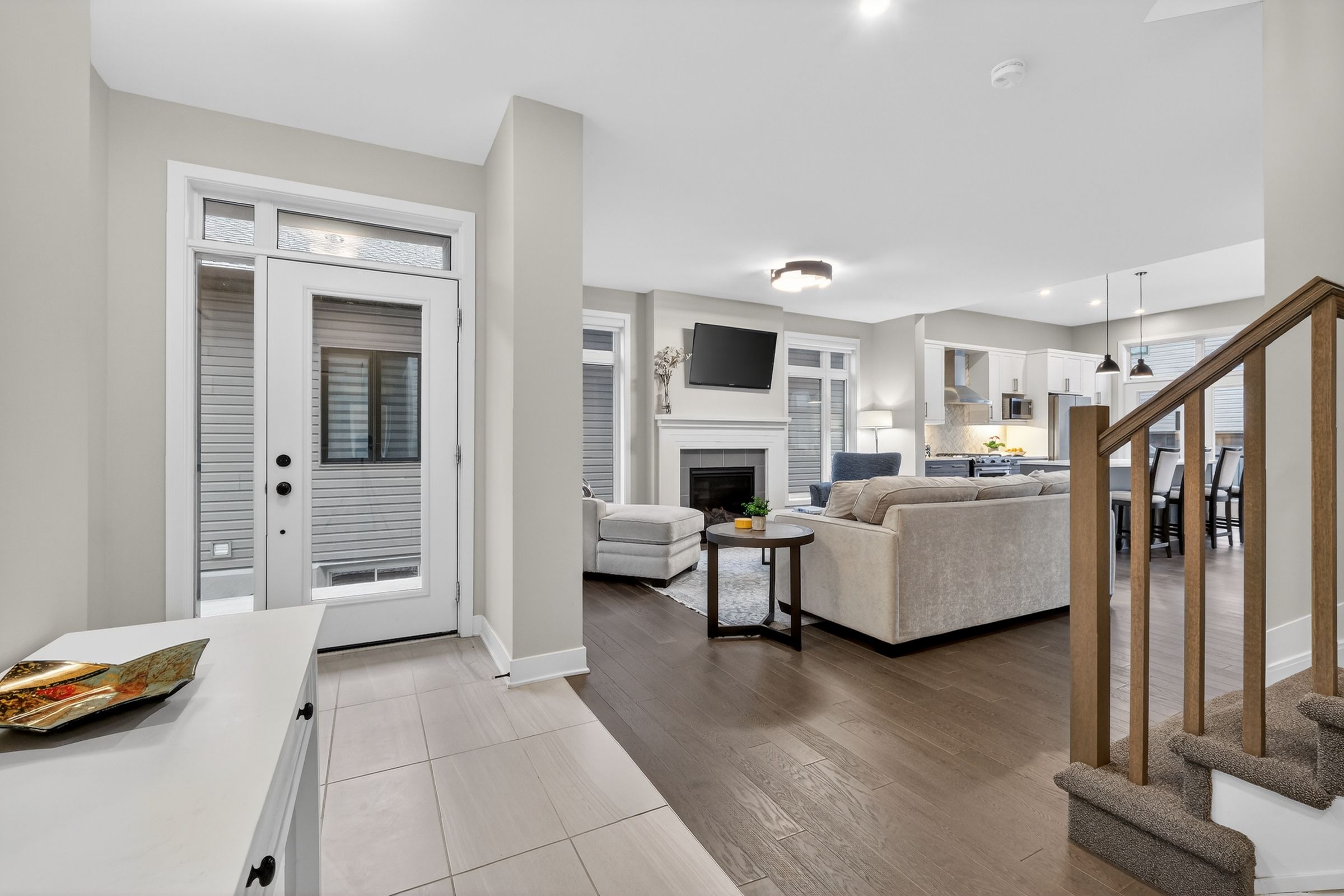 OPEN HOUSE Saturday 2:00 pm - 4:00 pm. Situated between the vibrant communities of Stittsville & Kanata, Bradley Commons offers the perfect balance of tranquility and convenience. This immaculate Urbandale Westport - Pacific Series home sits on a deep 100' lot on a quiet street overlooking Bradley-Craig Park. Thoughtfully upgraded throughout, the home features a well-designed open layout with the rare addition of two home offices; one on the main floor, another in the lower level. The welcoming entrance includes a mudroom and powder room, while the spacious living room is highlighted by a gas fireplace flanked by floor-to-ceiling windows. Bright and airy, the home boasts soaring 10 ft ceilings, stylish lighting, and gleaming Oak hardwood flooring throughout the mail level. The modern kitchen features a generous island, quartz countertops & quality appliances. Upstairs, the spacious primary suite offers a walk-in closet, Ensuite bath, and beautiful western views over the park. Two additional bedrooms, one with a walk-in closet, a full 4 pc. bath, and a convenient laundry room complete the upper level. The builder-finished basement features oversized windows, a large family room, home office, exercise area, 3 pc bath, with the option to convert the office into a 4th bedroom. An unfinished section provides abundant storage space. Enjoy nearly maintenance-free landscaping! Interlock patio stone extends along both sides of the double driveway, providing easy access to the fully fenced backyard & deck with Gas BBQ Hook-up, the patio area beautifully framed by decorative stone. Residents enjoy access to excellent schools, convenient shopping & entertainment. Outdoor enthusiasts will appreciate walking along the scenic Trans Canada or Terry Fox Pond Trails, while nearby amenities include Canadian Tire Centre, the CRC, and Walter Baker Sports Park. An ideal setting for families seeking an active lifestyle in a welcoming, well-supported community. See 3D Multimedia Tour!