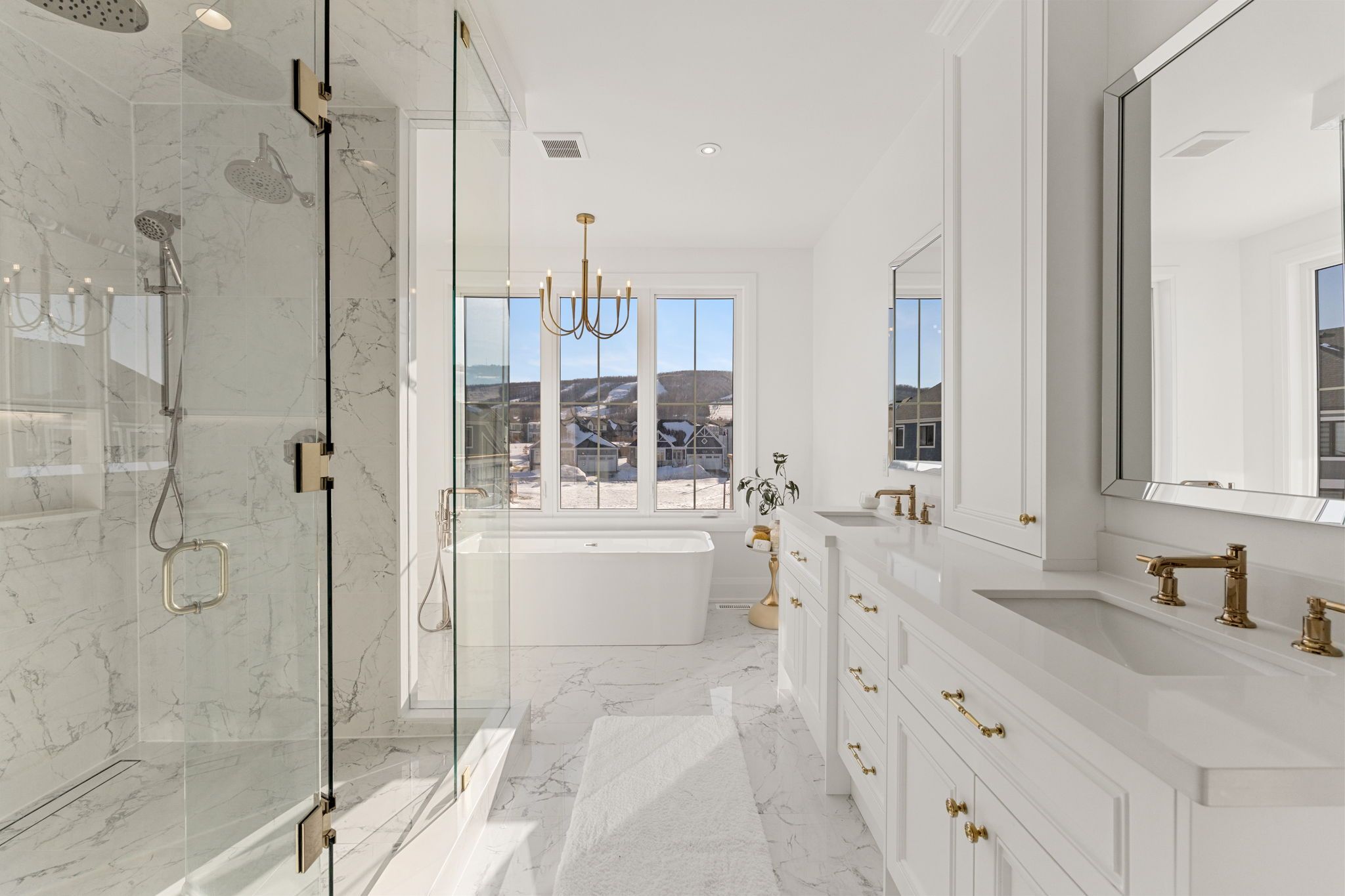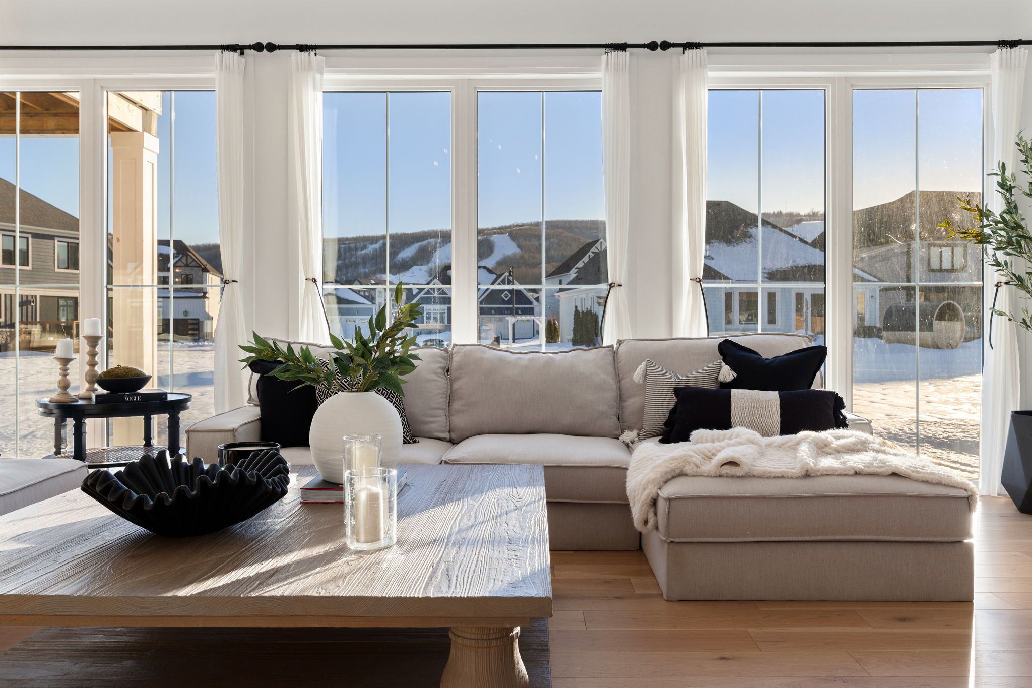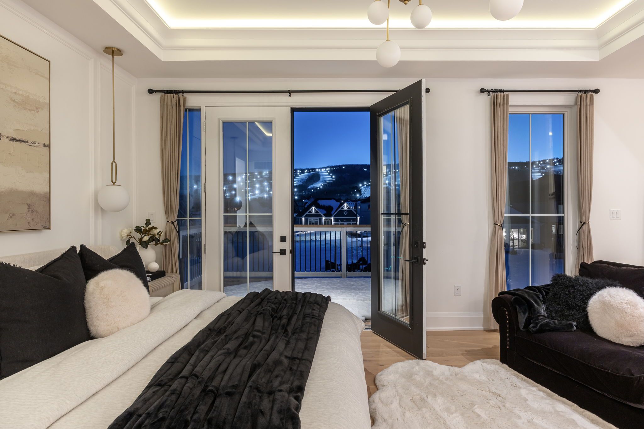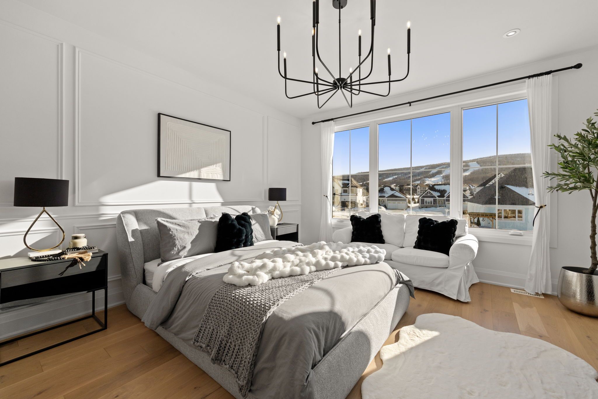 *Gorgeous Modern French-Luxury Farmhouse in Blue Mountain*. Situated on a sprawling lot, this stunning 5,300 sq ft white French modern farmhouse offers an unparalleled living experience with breathtaking southwest exposure & views of Blue Mountain ski hill in your backyard. The only model of its kind in Phase 2, this fully customized Rochester design blends intention, flow, and elegance.Flooded w/ natural light from oversized upgraded windows & thoughtfully designed floor plan, the home features soaring ceilings-10 ft on the main, 9 ft on the upper & lower levels-8 ft interior doors & over $16,000 in custom boiserie wall moulding. The breathtaking French-inspired kitchen is anchored by a waterfall quartz island & features a 48" gas range w/ custom canopy hood, 10 foot high quartz backsplash, over $50,000 in appliances, custom lighted glass cabinetry, servery, pantry, hidden storage & beverage area w/ wine fridge.The open-concept main floor flows into a sunlit living space with floor-to-ceiling windows framing the mountain views, a beautifully designed office, elegant powder room & mudroom with custom dog wash. The home features over $40,000 worth of white oak flooring. Upstairs, all bedrooms are primary-sized w/ private ensuites. The exceptional primary suite offers vaulted ceilings w/ crown moulding & LED lighting, floor-to-ceiling windows, private balcony overlooking all of Blue Mountain, a custom dressing room w/ 2-way fireplace & a spa-like ensuite w/ freestanding tub, oversized glass shower w/ over $30,000 in fixtures, heated floors & private water closet w/ 9 foot frosted glass door. Additional features include a second laundry room, 1,675 sq ft lower level & rare 3-tandem garage w/ lift capability. Enjoy Blue Mountain Village Association perks including shuttle, private beach & resort discounts. With over $600K in upgrades, this is a rare opportunity to own a one-of-a-kind luxury home in a premier four-season destination.