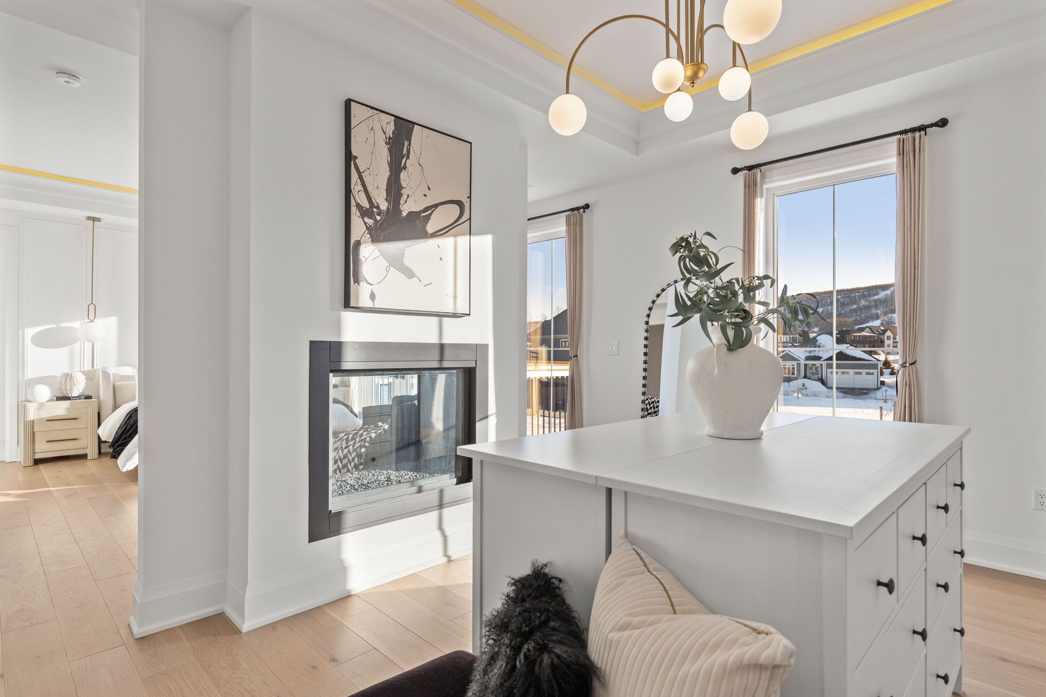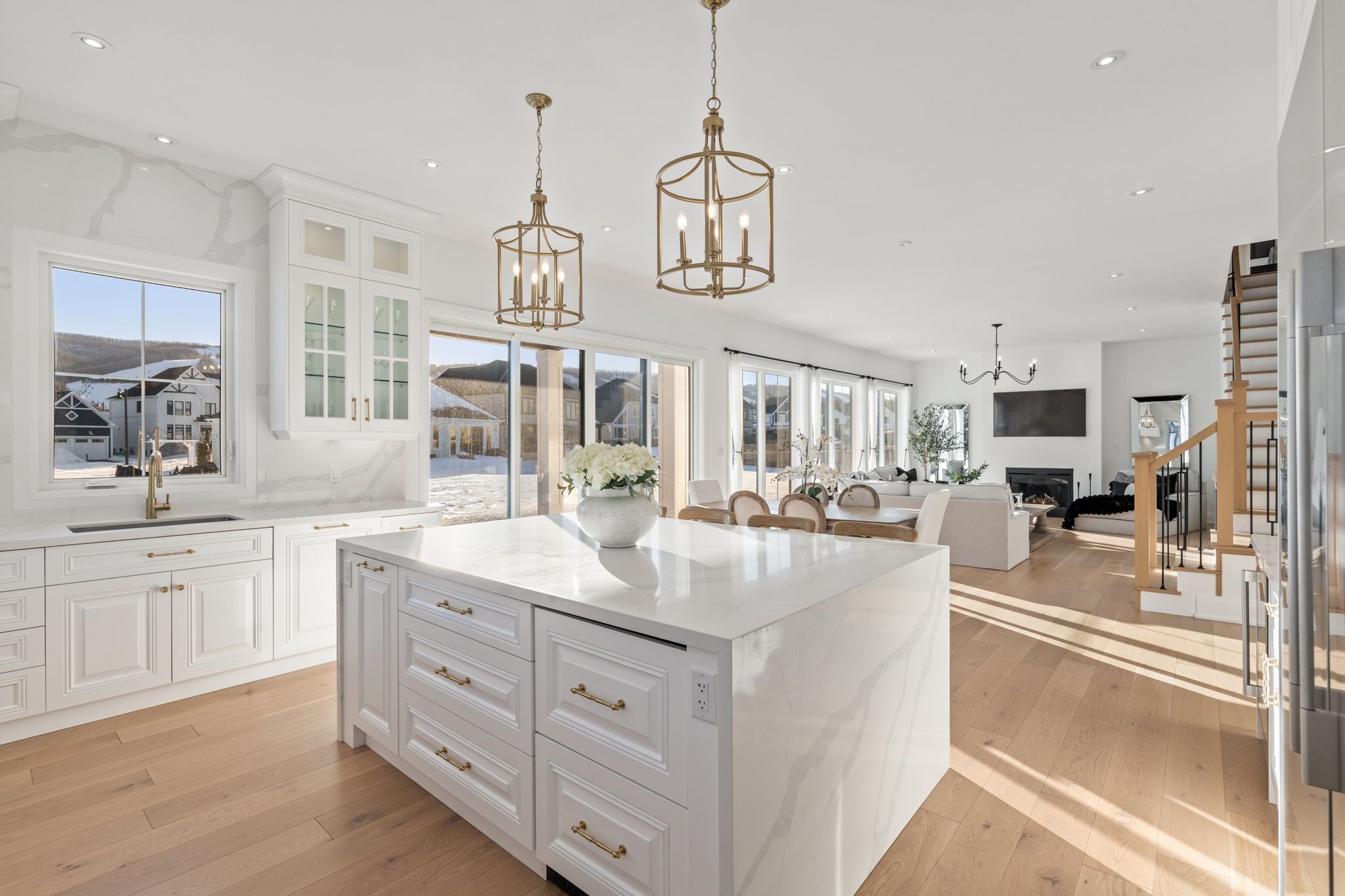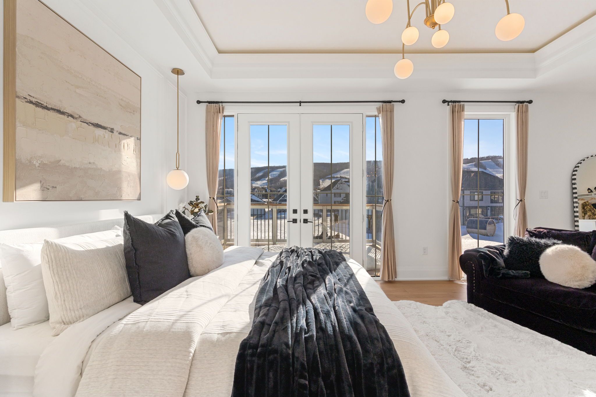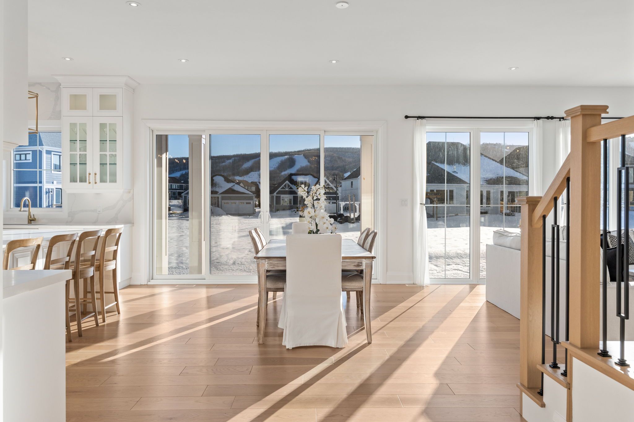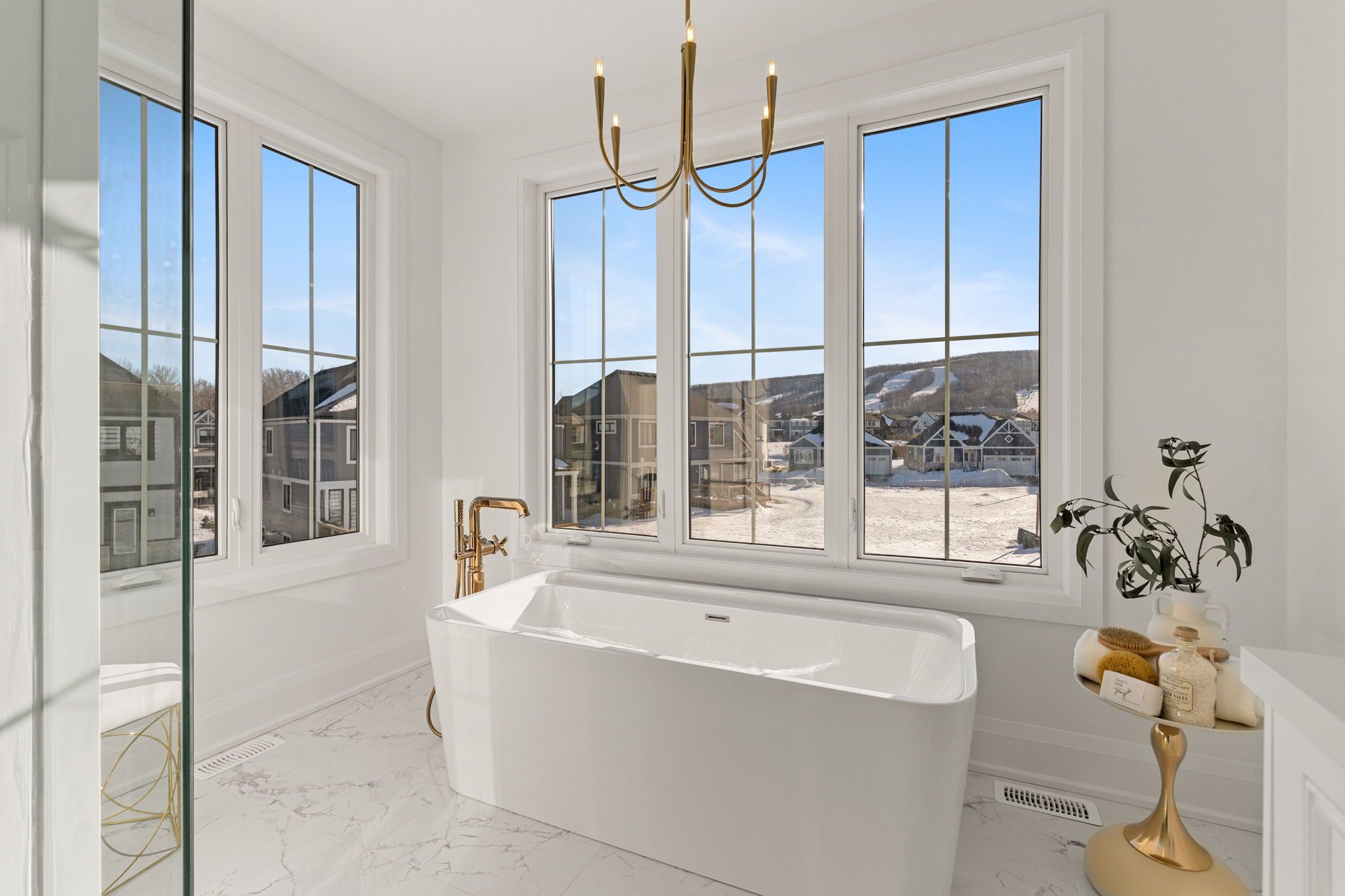 *Gorgeous Modern French-Luxury Farmhouse in Blue Mountain*. Situated on a sprawling lot, this stunning 5,300 sq ft white French modern farmhouse offers an unparalleled living experience with breathtaking southwest exposure & views of Blue Mountain ski hill in your backyard. The only model of its kind in Phase 2, this fully customized Rochester design blends intention, flow, and elegance.Flooded w/ natural light from oversized upgraded windows & thoughtfully designed floor plan, the home features soaring ceilings-10 ft on the main, 9 ft on the upper & lower levels-8 ft interior doors & over $16,000 in custom boiserie wall moulding. The breathtaking French-inspired kitchen is anchored by a waterfall quartz island & features a 48" gas range w/ custom canopy hood, 10 foot high quartz backsplash, over $50,000 in appliances, custom lighted glass cabinetry, servery, pantry, hidden storage & beverage area w/ wine fridge.The open-concept main floor flows into a sunlit living space with floor-to-ceiling windows framing the mountain views, a beautifully designed office, elegant powder room & mudroom with custom dog wash. The home features over $40,000 worth of white oak flooring. Upstairs, all bedrooms are primary-sized w/ private ensuites. The exceptional primary suite offers vaulted ceilings w/ crown moulding & LED lighting, floor-to-ceiling windows, private balcony overlooking all of Blue Mountain, a custom dressing room w/ 2-way fireplace & a spa-like ensuite w/ freestanding tub, oversized glass shower w/ over $30,000 in fixtures, heated floors & private water closet w/ 9 foot frosted glass door. Additional features include a second laundry room, 1,675 sq ft lower level & rare 3-tandem garage w/ lift capability. Enjoy Blue Mountain Village Association perks including shuttle, private beach & resort discounts. With over $600K in upgrades, this is a rare opportunity to own a one-of-a-kind luxury home in a premier four-season destination.