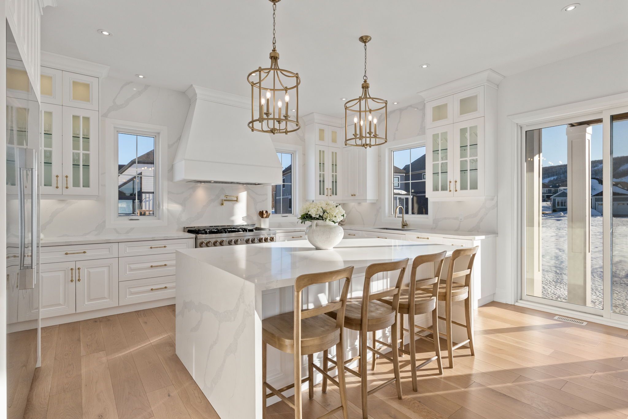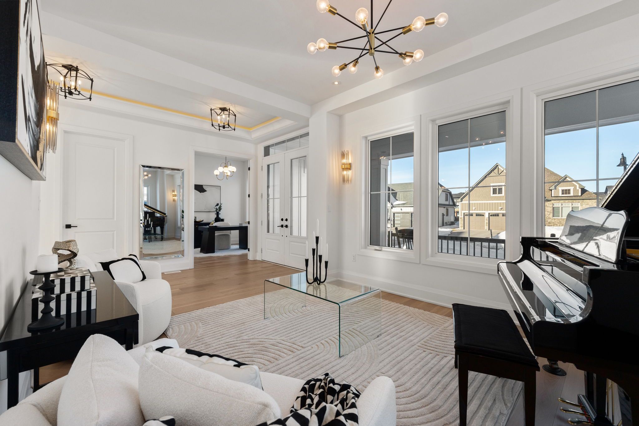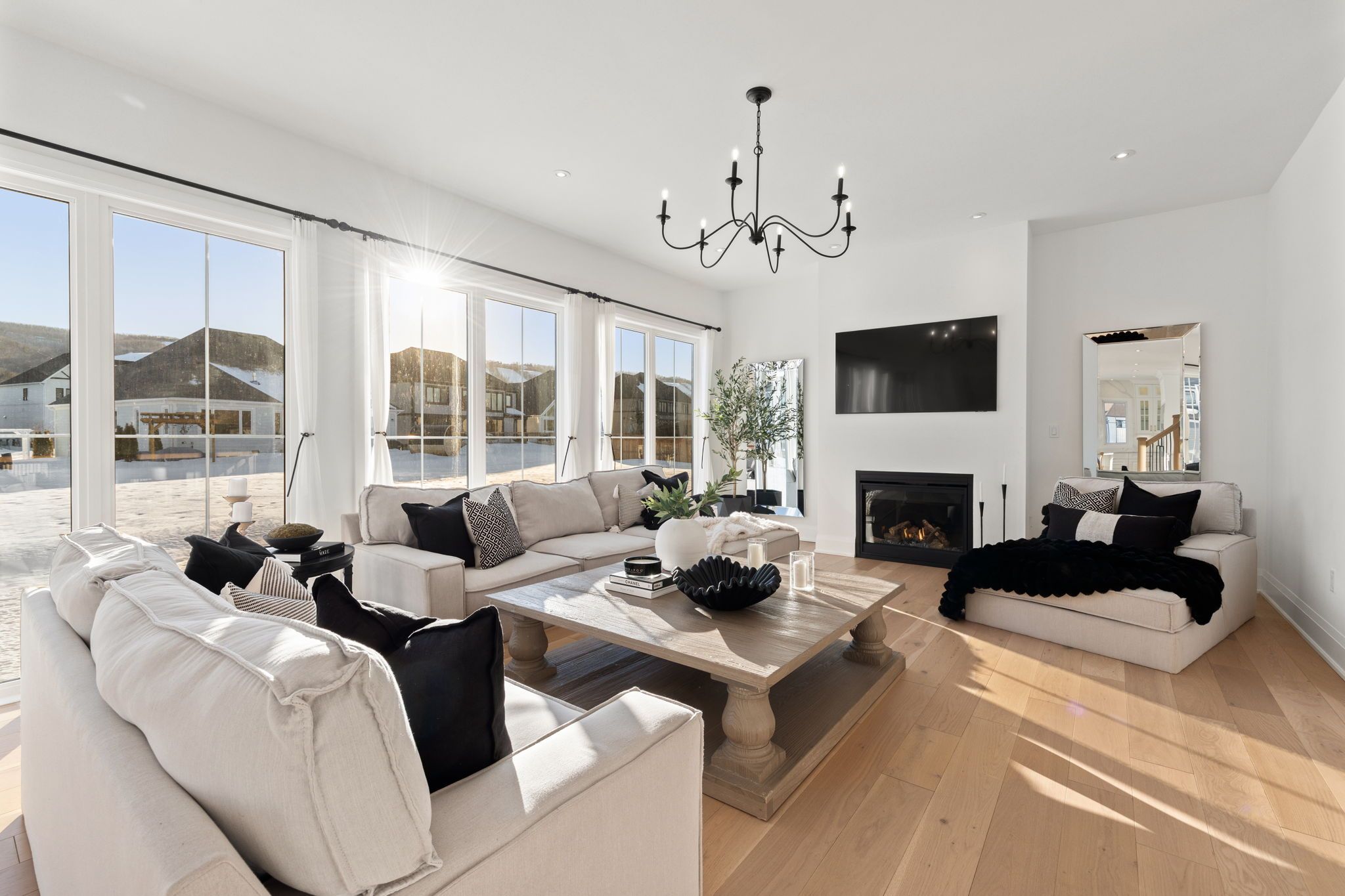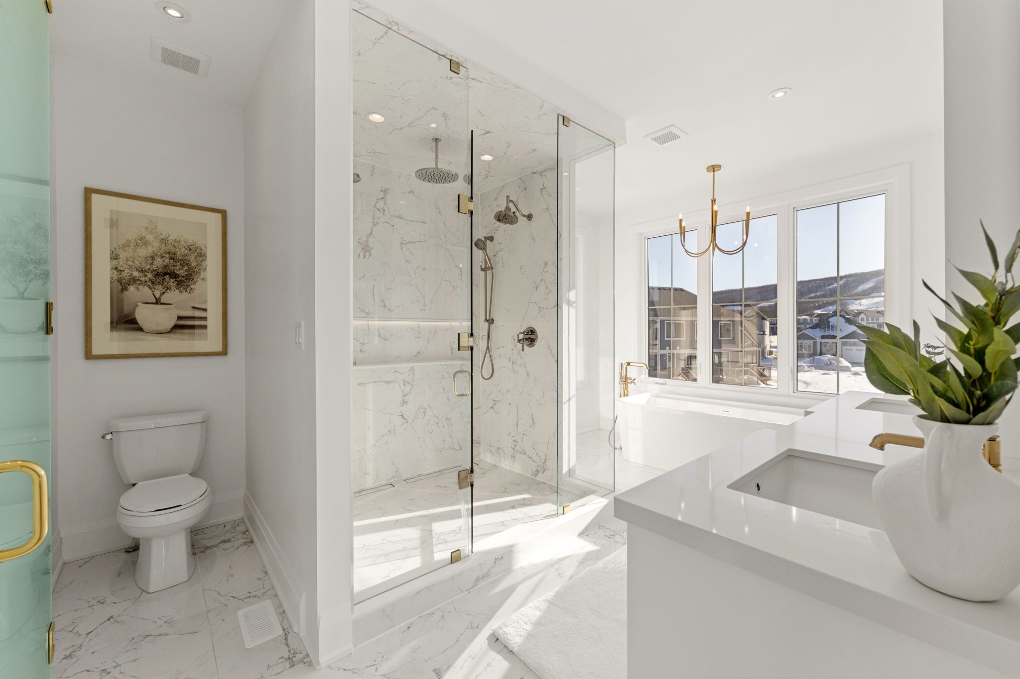 *Gorgeous Modern French-Luxury Farmhouse in Blue Mountain*. Situated on a sprawling lot, this stunning 5,300 sq ft white French modern farmhouse offers an unparalleled living experience with breathtaking southwest exposure & views of Blue Mountain ski hill in your backyard. The only model of its kind in Phase 2, this fully customized Rochester design blends intention, flow, and elegance.Flooded w/ natural light from oversized upgraded windows & thoughtfully designed floor plan, the home features soaring ceilings-10 ft on the main, 9 ft on the upper & lower levels-8 ft interior doors & over $16,000 in custom boiserie wall moulding. The breathtaking French-inspired kitchen is anchored by a waterfall quartz island & features a 48" gas range w/ custom canopy hood, 10 foot high quartz backsplash, over $50,000 in appliances, custom lighted glass cabinetry, servery, pantry, hidden storage & beverage area w/ wine fridge.The open-concept main floor flows into a sunlit living space with floor-to-ceiling windows framing the mountain views, a beautifully designed office, elegant powder room & mudroom with custom dog wash. The home features over $40,000 worth of white oak flooring. Upstairs, all bedrooms are primary-sized w/ private ensuites. The exceptional primary suite offers vaulted ceilings w/ crown moulding & LED lighting, floor-to-ceiling windows, private balcony overlooking all of Blue Mountain, a custom dressing room w/ 2-way fireplace & a spa-like ensuite w/ freestanding tub, oversized glass shower w/ over $30,000 in fixtures, heated floors & private water closet w/ 9 foot frosted glass door. Additional features include a second laundry room, 1,675 sq ft lower level & rare 3-tandem garage w/ lift capability. Enjoy Blue Mountain Village Association perks including shuttle, private beach & resort discounts. With over $600K in upgrades, this is a rare opportunity to own a one-of-a-kind luxury home in a premier four-season destination.