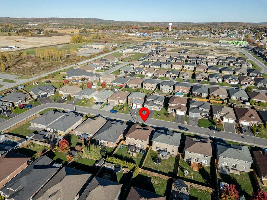 Welcome to this immaculate, beautifully maintained two-storey home nestled in a sought-after, family-friendly neighbourhood surrounded by parks and growing families. Thoughtfully designed with both comfort and style in mind, this open-concept home offers exceptional space for everyday living and entertaining. The stunning kitchen is truly the heart of the home, featuring gorgeous Quartz countertops, crisp white cabinetry, a stylish backsplash, and an incredibly large island, perfect for hosting and gathering. A beautiful staircase leads to the second level where you'll find four spacious bedrooms, including a primary retreat complete with a walk-in closet and private ensuite. The fully finished basement adds even more living space with a large rec room, an additional full bathroom, and plenty of storage. With five bedrooms and four bathrooms, this home truly checks all the boxes. It features a built-in sound speaker system (Redball Radio) in the living room, ready to be connected, and a spacious backyard ideal for relaxing or entertaining. Located in a desirable community close to schools and amenities, and only a short drive to Highway 401 or CFB Trenton, this move-in ready home is perfect for growing families looking for both function and style.