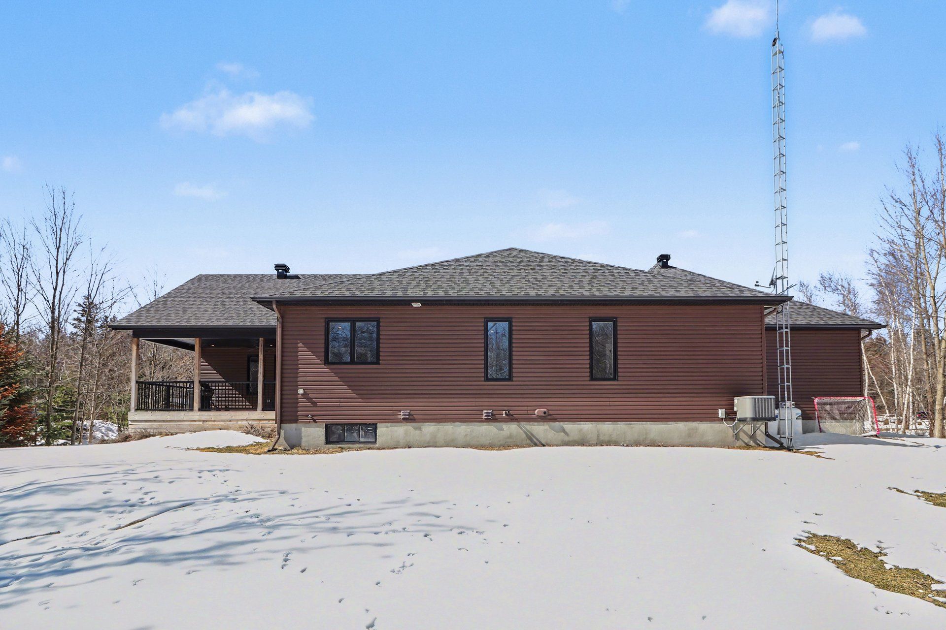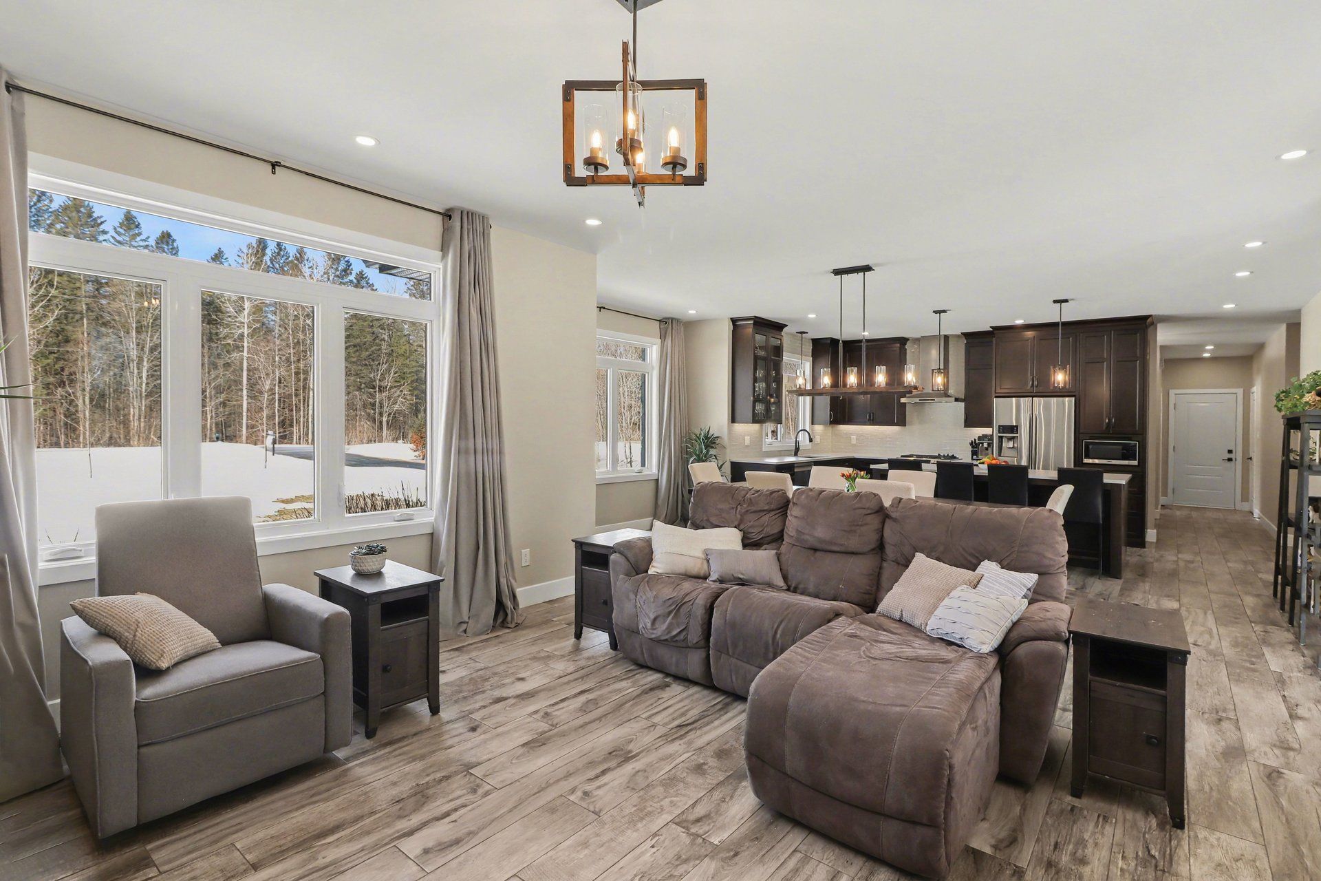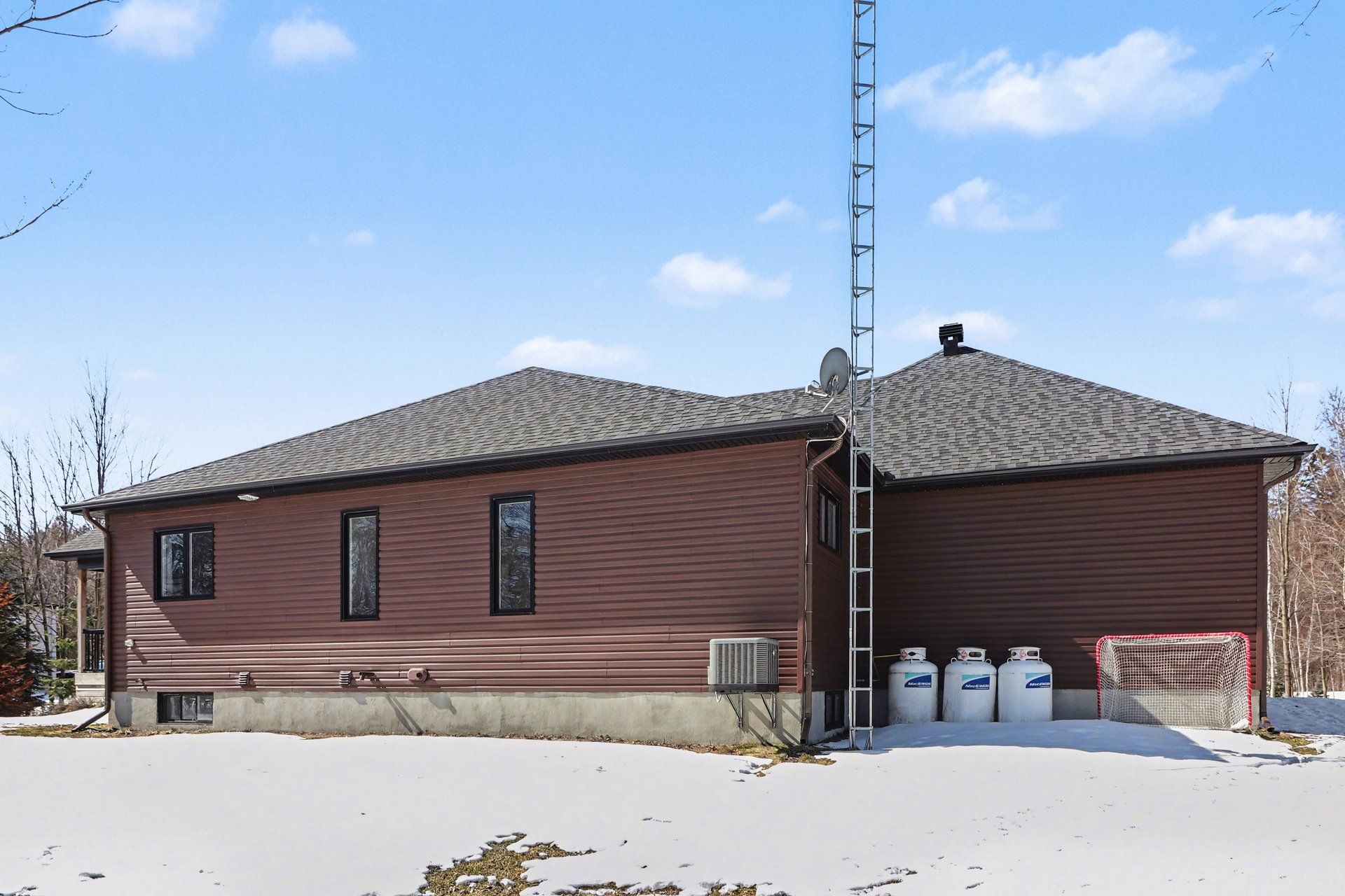 Welcome to 1261 Montée Drouin, nestled in the sought after neighbourhood of Seguinbourg in Casselman. This one-of-a-kind custom-built home, built in 2019, sits on a stunning 1.97-acre estate lot, offering exceptional privacy with no front or rear neighbours. Featuring 3 bedrooms and 2 full bathrooms, the home boasts a bright open-concept layout perfect for both everyday living and entertaining complete with a stunning stone propane fireplace creates a warm and inviting focal point in the main living area. The primary suite is a true highlight, complete with a walk-in closet and a luxurious spa like 5-piece ensuite featuring a custom walk-in shower. Two additional great-sized bedrooms complete the main floor, offering ample space for family and guests. The home features quartz countertops in both the kitchen and bathrooms, complemented by a stylish kitchen backsplash. Tiled flooring throughout entire the main floor, offers extensive durability, for even the toughest of pets and kids. The partially finished basement includes a fully finished office space and generously sized rec room. Additionally there is a 3-piece rough-in, offering excellent potential for additional living space. Other features include a central vacuum system, a 200-amp electrical panel, GenerLink Transfer Switch, an oversized (33' x 30') 2-car garage, and a top-of-the-line water treatment system. Enjoy peaceful outdoor living with a covered 12' x 22' deck and a beautiful man-made pond, perfect for creating your own outdoor skating rink in the winter and enjoying serene views year-round. This exceptional property combines quality craftsmanship with peaceful country living-an opportunity you won't want to miss.
