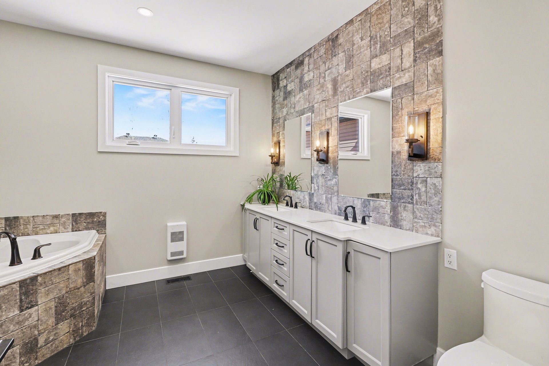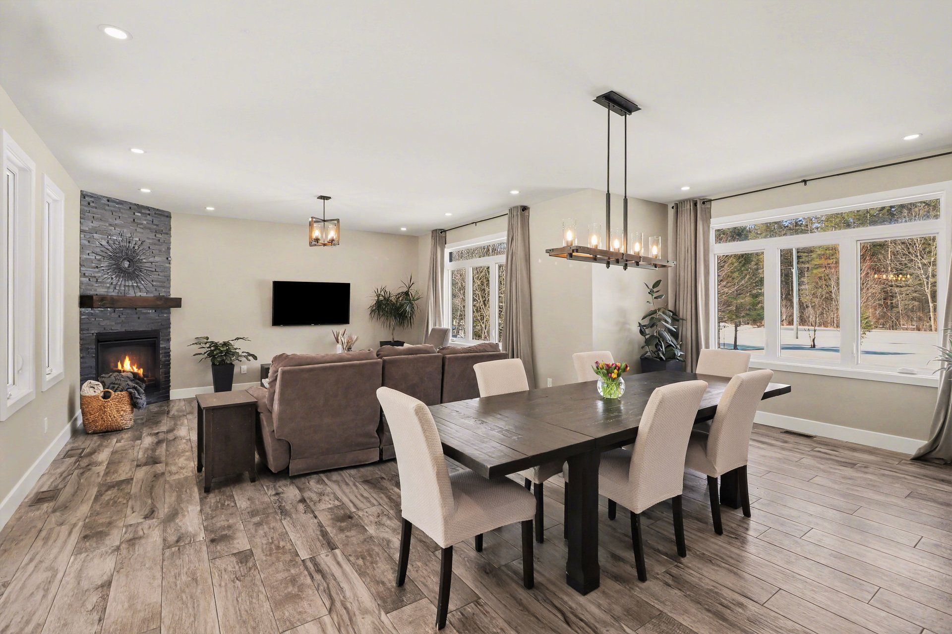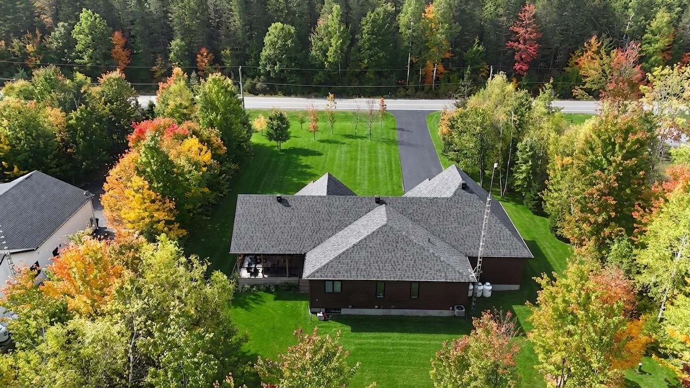 Welcome to 1261 Montée Drouin, nestled in the sought after neighbourhood of Seguinbourg in Casselman. This one-of-a-kind custom-built home, built in 2019, sits on a stunning 1.97-acre estate lot, offering exceptional privacy with no front or rear neighbours. Featuring 3 bedrooms and 2 full bathrooms, the home boasts a bright open-concept layout perfect for both everyday living and entertaining complete with a stunning stone propane fireplace creates a warm and inviting focal point in the main living area. The primary suite is a true highlight, complete with a walk-in closet and a luxurious spa like 5-piece ensuite featuring a custom walk-in shower. Two additional great-sized bedrooms complete the main floor, offering ample space for family and guests. The home features quartz countertops in both the kitchen and bathrooms, complemented by a stylish kitchen backsplash. Tiled flooring throughout entire the main floor, offers extensive durability, for even the toughest of pets and kids. The partially finished basement includes a fully finished office space and generously sized rec room. Additionally there is a 3-piece rough-in, offering excellent potential for additional living space. Other features include a central vacuum system, a 200-amp electrical panel, GenerLink Transfer Switch, an oversized (33' x 30') 2-car garage, and a top-of-the-line water treatment system. Enjoy peaceful outdoor living with a covered 12' x 22' deck and a beautiful man-made pond, perfect for creating your own outdoor skating rink in the winter and enjoying serene views year-round. This exceptional property combines quality craftsmanship with peaceful country living-an opportunity you won't want to miss.