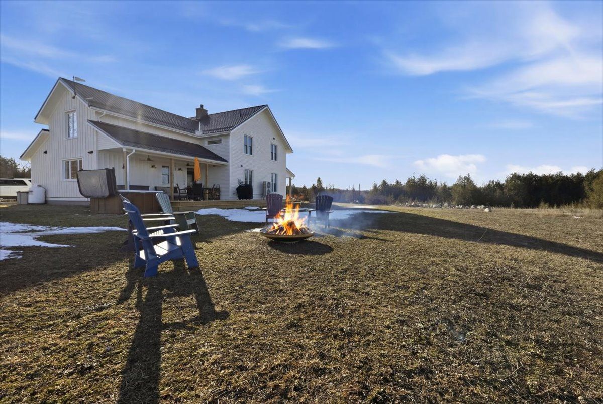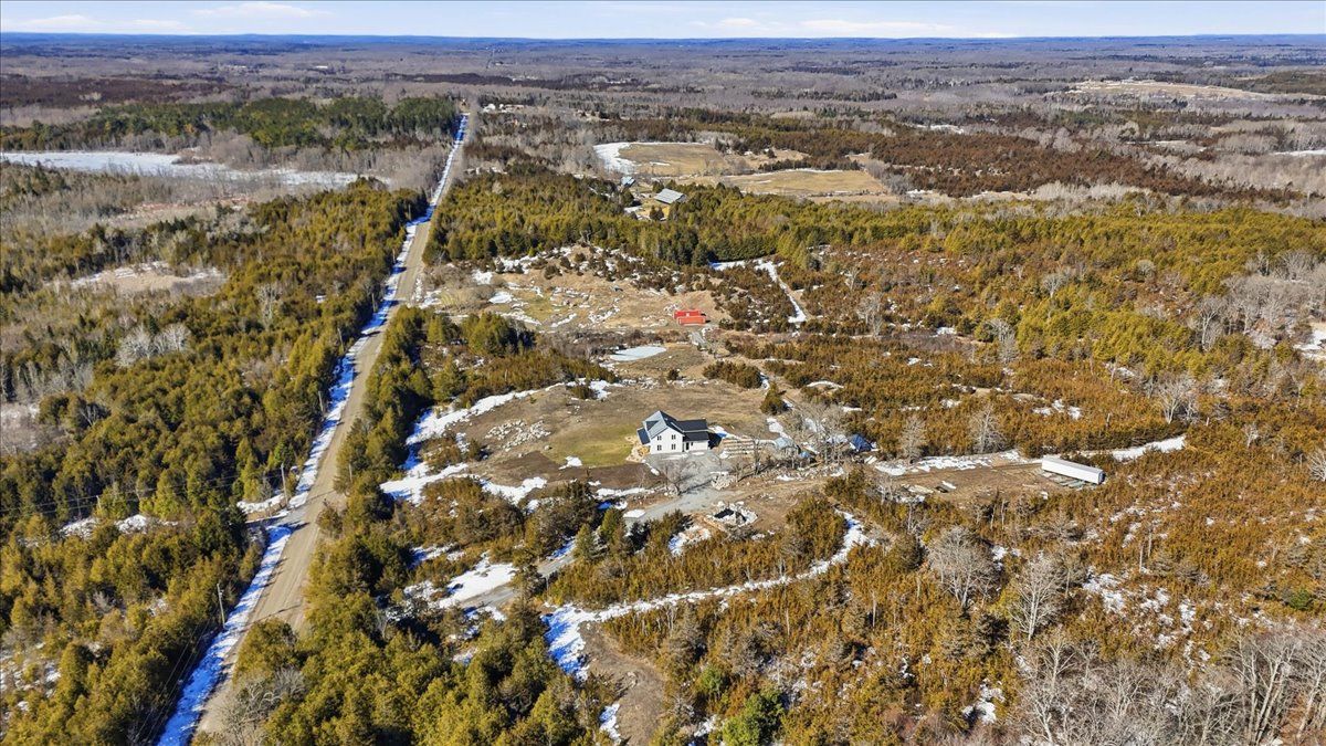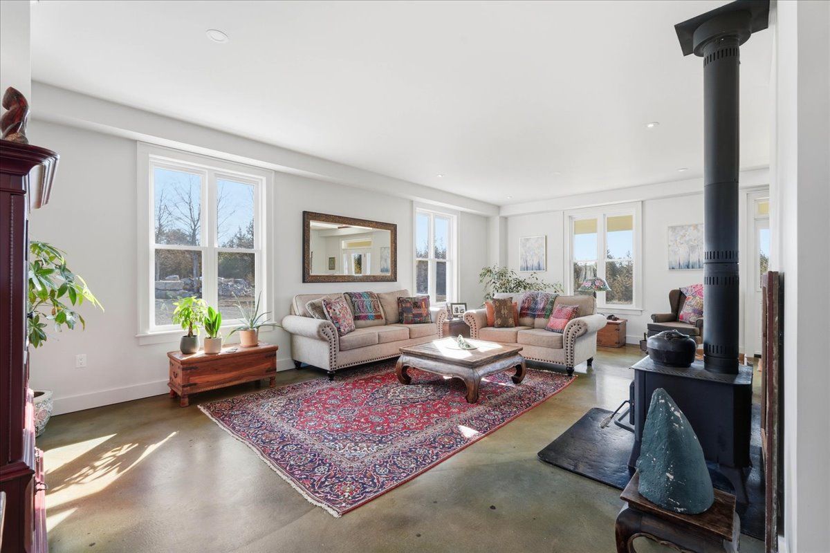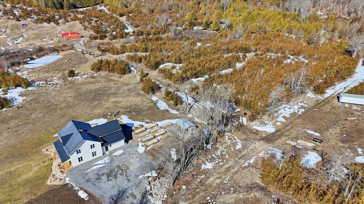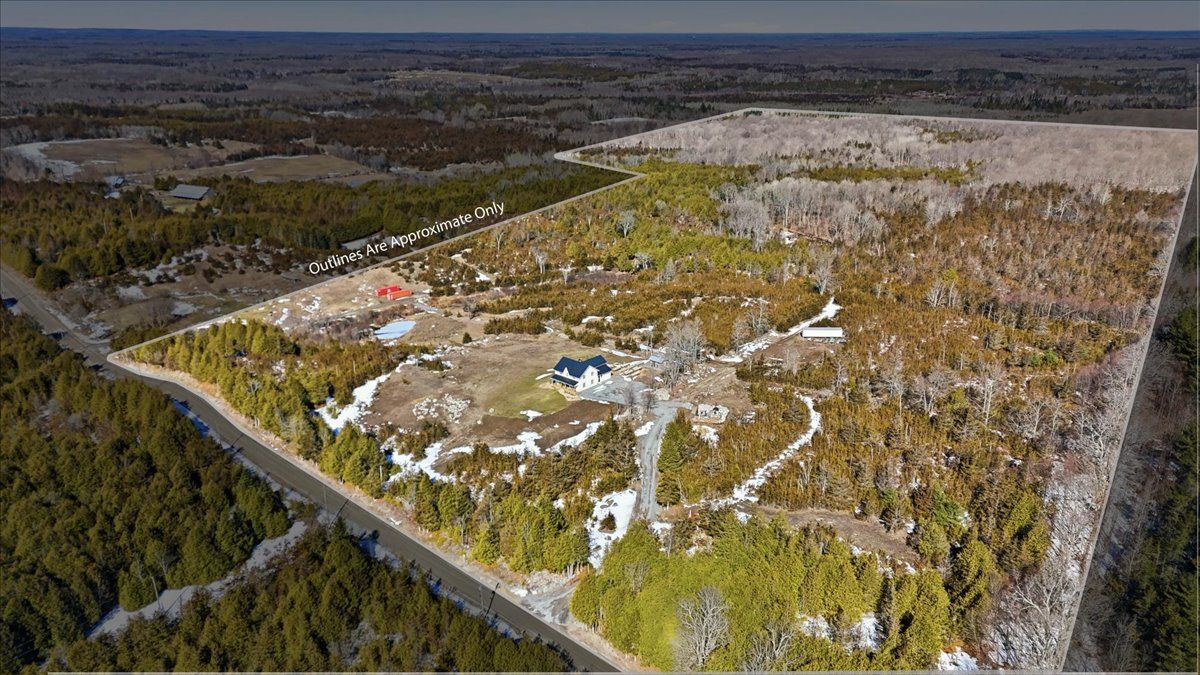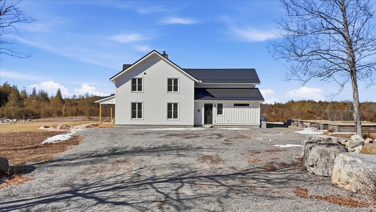 85 acres of pure tranquility! A true labour of love, this extraordinary countryside estate was thoughtfully crafted to be a forever home, offering a rare opportunity to own a property defined by complete privacy and natural elegance. This one of a kind new build, featuring custom-milled siding and a modern farmhouse feel, reflects a deep pride of workmanship. Stunning micro-coated concrete floors define the main level's interior, featuring a premium in-floor heating system. At its heart is a grand country kitchen with exquisite quartz countertops, an island perfect for entertaining, a propane stove, and a spacious walk-in pantry. Large windows frame the surrounding landscape, bringing the outdoors into every room, while custom poplar trim and restored interior doors lend a sense of history to the modern design. A striking tailor-made staircase, featuring reclaimed wood treads and railings, serves as the architectural focal point, leading to the upper level where the gorgeous reclaimed wood continues throughout the flooring of three spacious bedrooms, each thoughtfully designed with a private ensuite. Step from the kitchen onto the covered deck to enjoy the hot tub, a perfect vantage point to overlook your private pond and gently flowing creek. For the nature enthusiast, there are an abundance of private hiking trails that lead up to the mature hardwoods. The estate is fully equipped for independence and efficiency, featuring a four-source heating system: an outdoor wood boiler and indoor wood stove for traditional warmth, paired with a high-efficiency heat pump and electric boiler for modern convenience. The grounds are rounded out by a versatile outbuilding with electricity, water and cold storage, along with beautiful perennial gardens and nine raised garden beds. More than just a home, this property is a lifestyle, a rare combination of modern luxury and serene privacy, built to be cherished for generations.