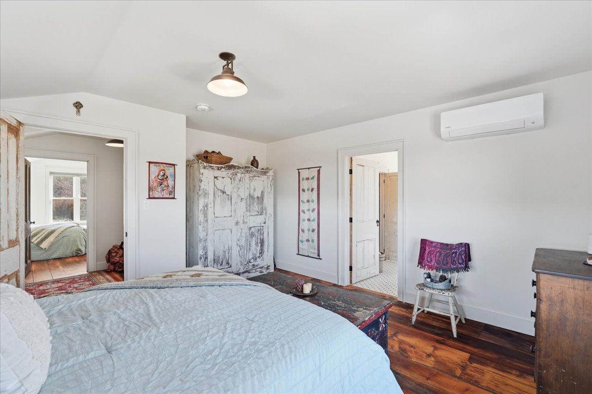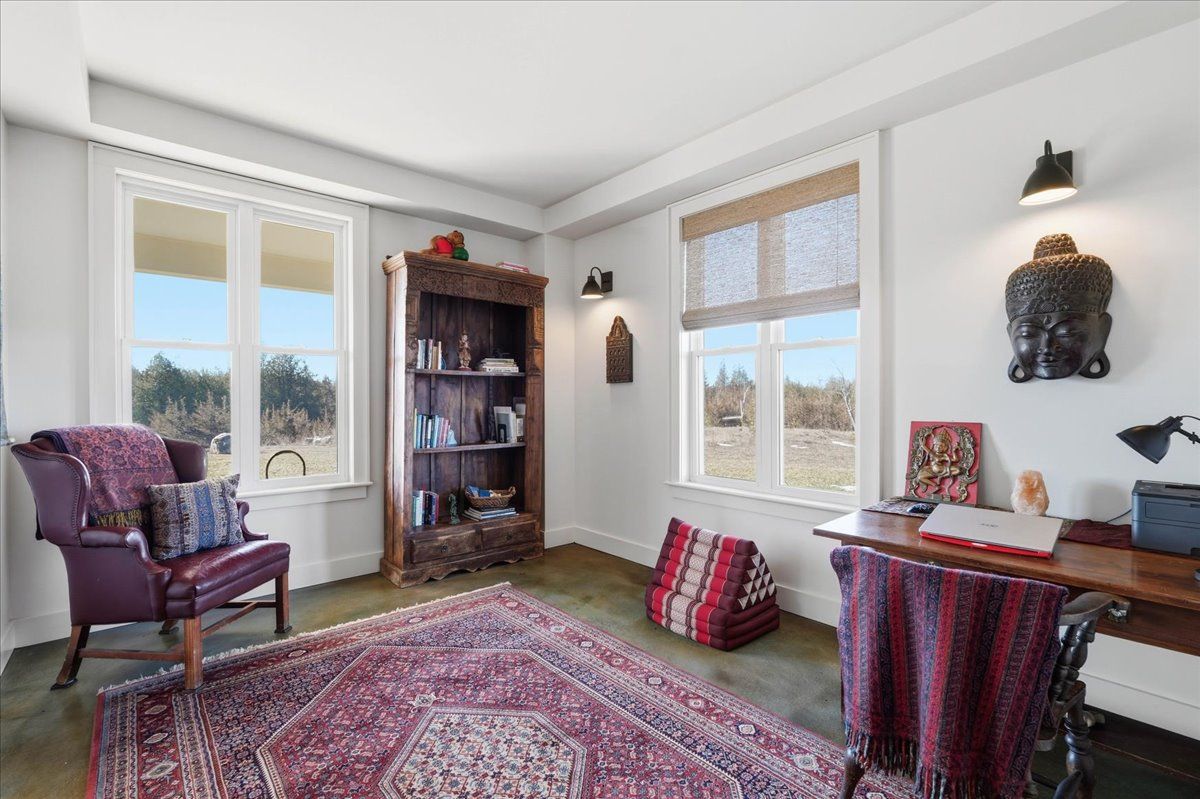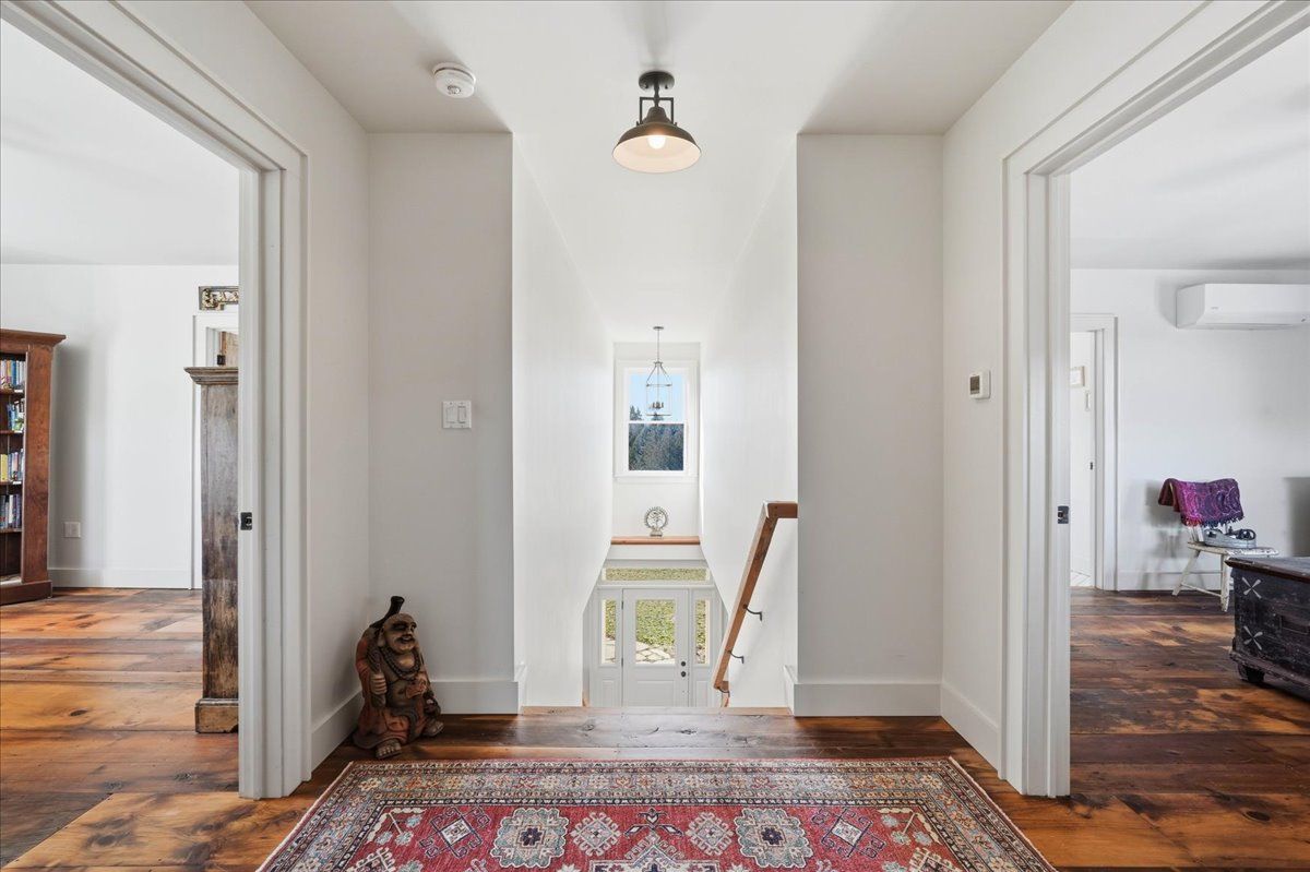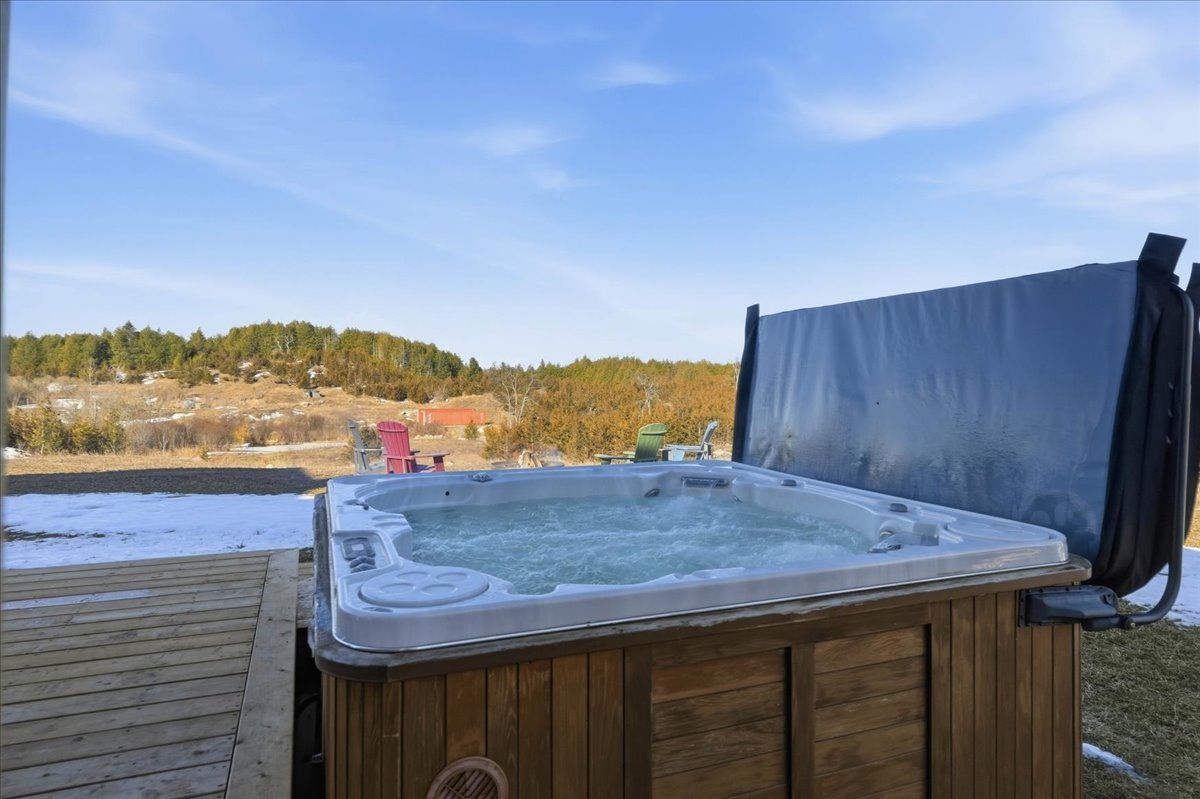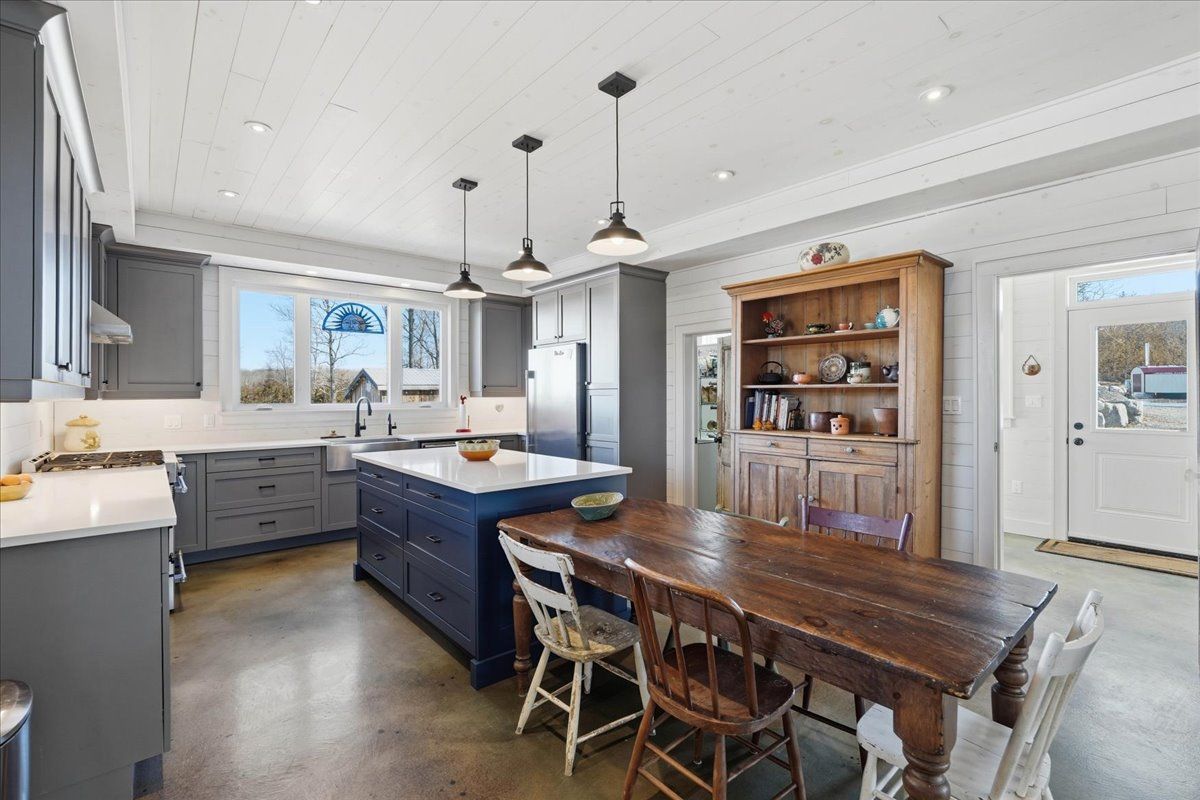 85 acres of pure tranquility! A true labour of love, this extraordinary countryside estate was thoughtfully crafted to be a forever home, offering a rare opportunity to own a property defined by complete privacy and natural elegance. This one of a kind new build, featuring custom-milled siding and a modern farmhouse feel, reflects a deep pride of workmanship. Stunning micro-coated concrete floors define the main level's interior, featuring a premium in-floor heating system. At its heart is a grand country kitchen with exquisite quartz countertops, an island perfect for entertaining, a propane stove, and a spacious walk-in pantry. Large windows frame the surrounding landscape, bringing the outdoors into every room, while custom poplar trim and restored interior doors lend a sense of history to the modern design. A striking tailor-made staircase, featuring reclaimed wood treads and railings, serves as the architectural focal point, leading to the upper level where the gorgeous reclaimed wood continues throughout the flooring of three spacious bedrooms, each thoughtfully designed with a private ensuite. Step from the kitchen onto the covered deck to enjoy the hot tub, a perfect vantage point to overlook your private pond and gently flowing creek. For the nature enthusiast, there are an abundance of private hiking trails that lead up to the mature hardwoods. The estate is fully equipped for independence and efficiency, featuring a four-source heating system: an outdoor wood boiler and indoor wood stove for traditional warmth, paired with a high-efficiency heat pump and electric boiler for modern convenience. The grounds are rounded out by a versatile outbuilding with electricity, water and cold storage, along with beautiful perennial gardens and nine raised garden beds. More than just a home, this property is a lifestyle, a rare combination of modern luxury and serene privacy, built to be cherished for generations.