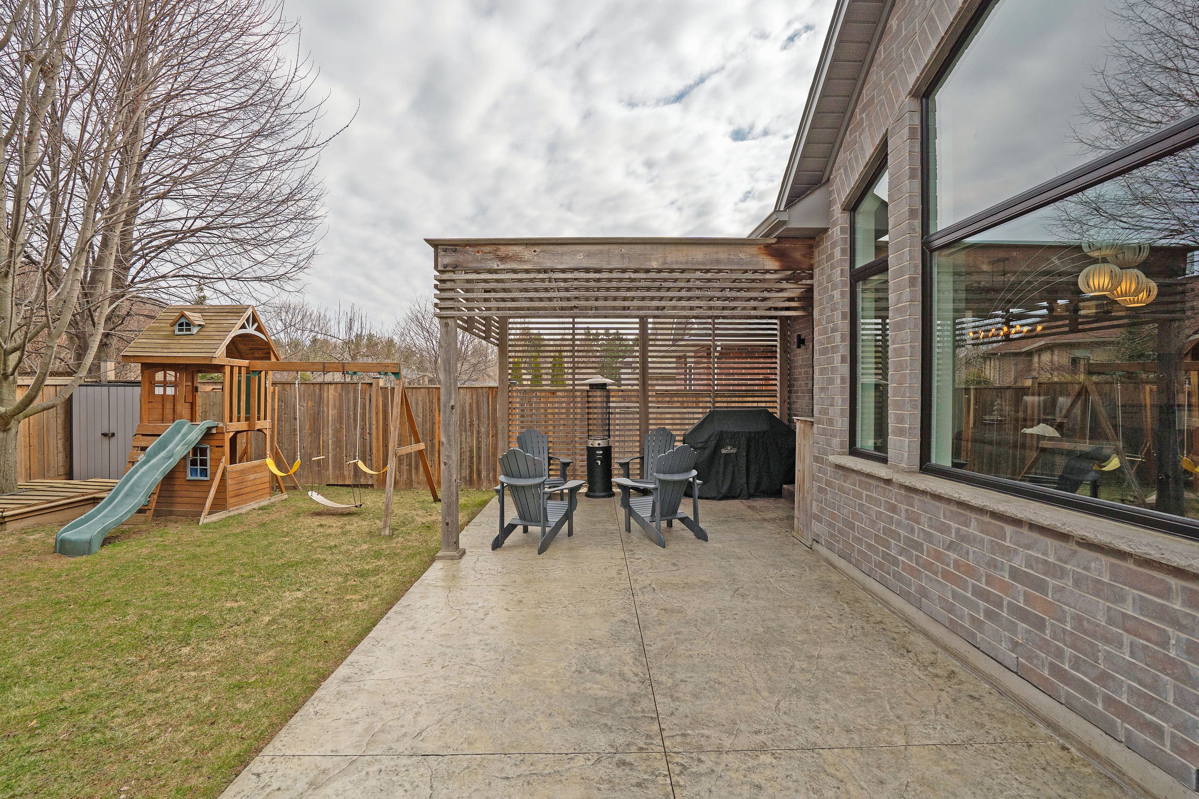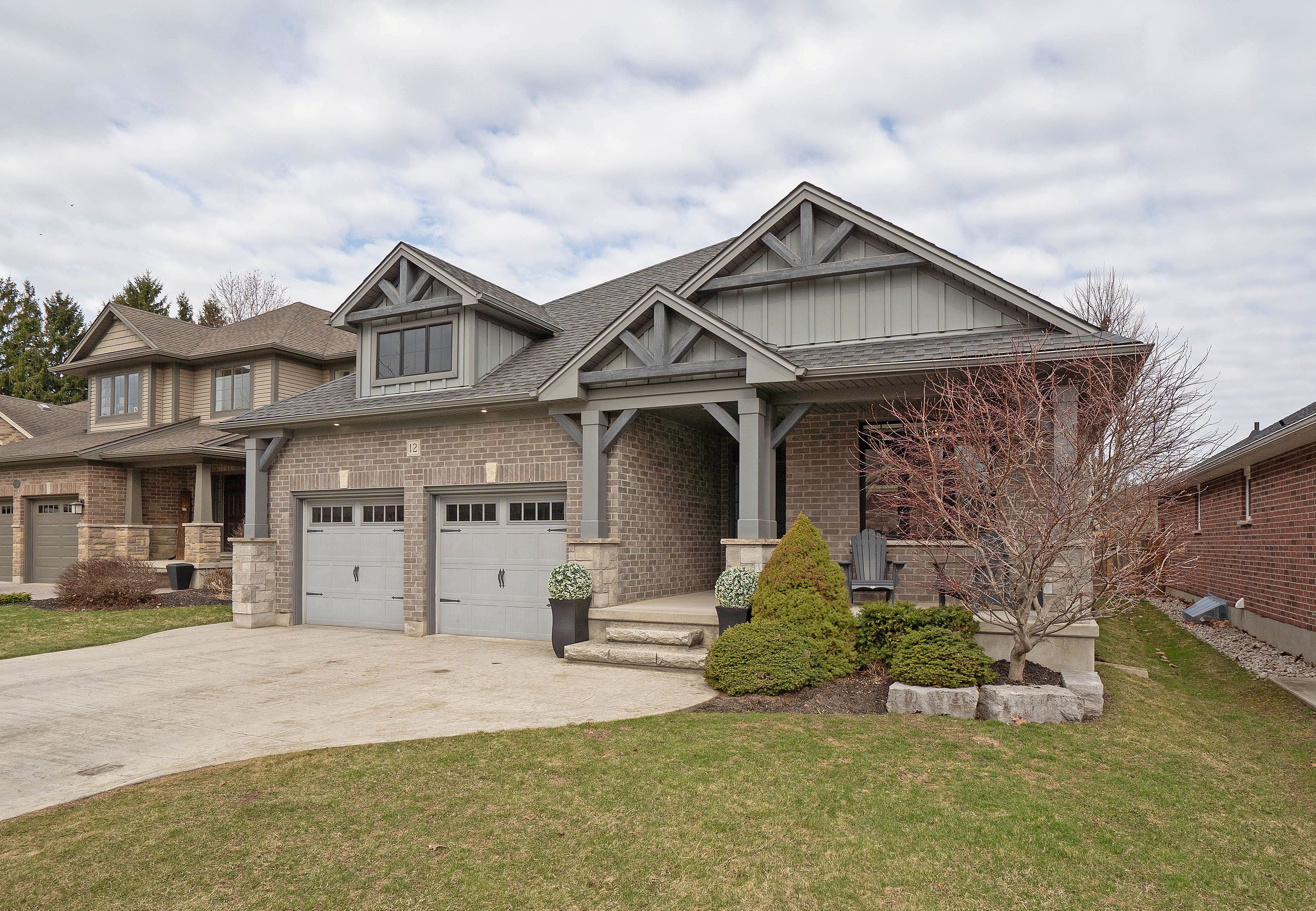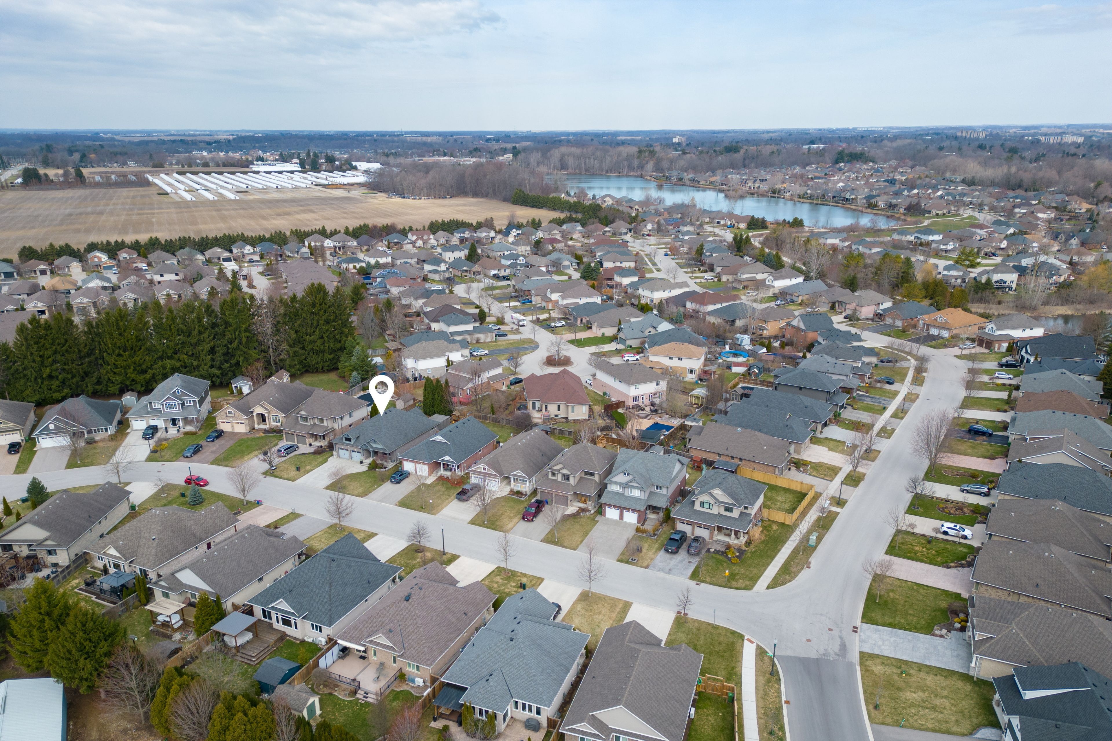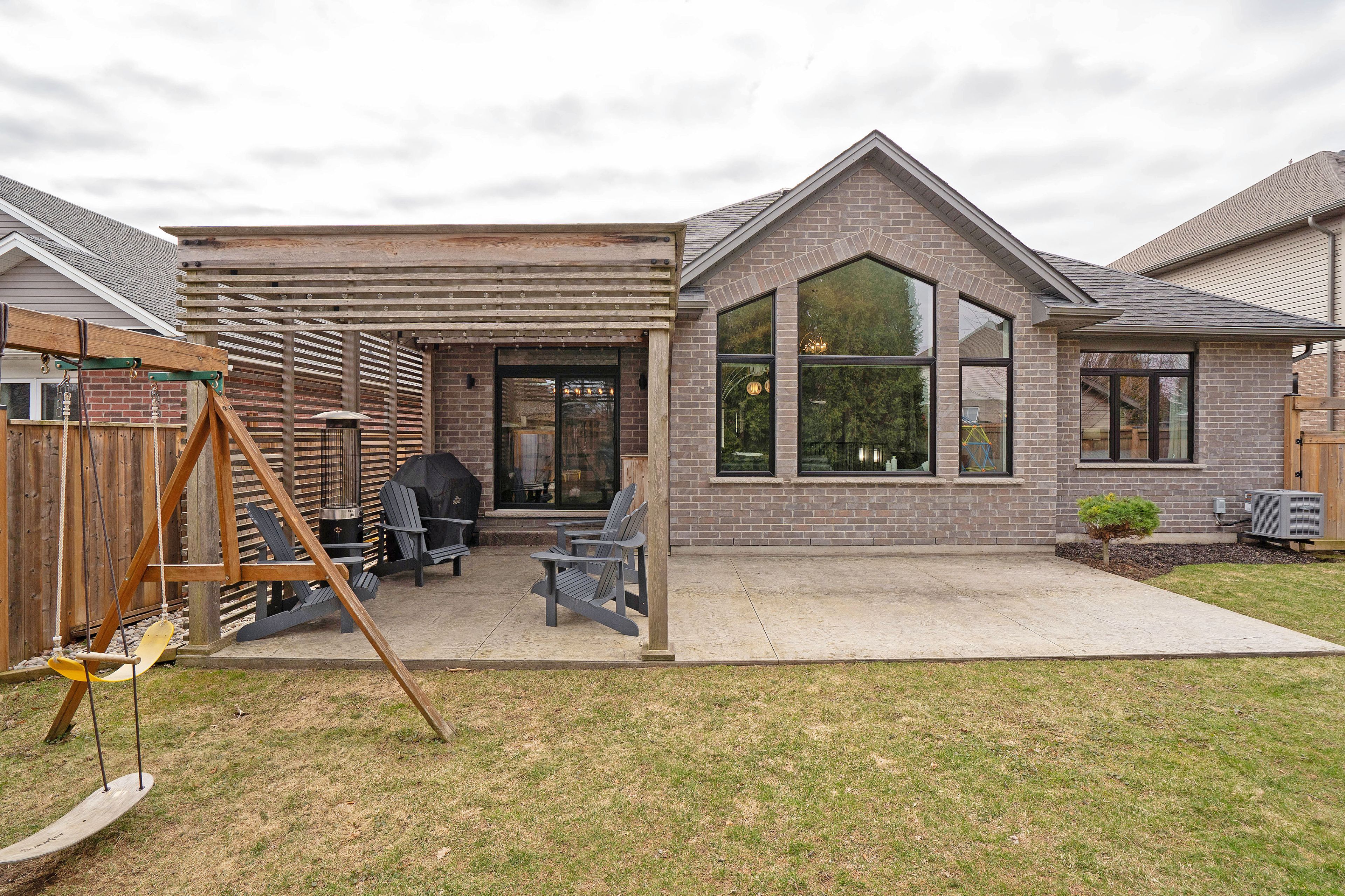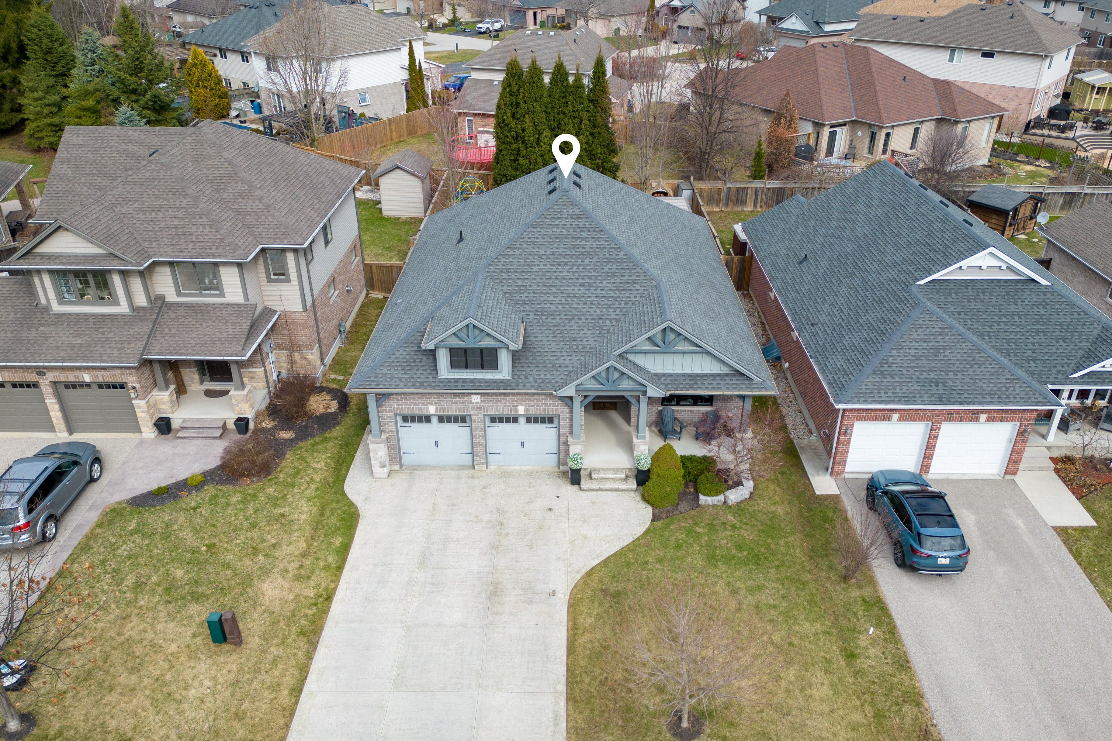 Stunning 4-bedroom, 3-bathroom bungalow situated on a quiet cul-de-sac, custom built by Doug Tarry with an expanded floorplan. The home is located near Lake Margaret's trails and Pinafore Park featuring scenic trails, tennis and pickleball courts, picnic areas, splash pad and playground. Enjoy a short commute to the beaches of Port Stanley. Impressive curb appeal with stamped concrete driveway and porch leads to a welcoming foyer and 9 ft ceilings throughout the main level. The designer kitchen features granite countertops, a spacious island, walk-in pantry and included appliances. The bright living room offers cathedral ceilings, abundant natural light and views of the backyard, while the dining area provides access to the fully fenced yard complete with concrete patio, gas BBQ hookup, pergola, playset and mature trees. The main floor includes a front bedroom or office with walk-in closet, a full bathroom, convenient laundry/mudroom with cabinetry and an expansive primary suite with backyard views, walk-in closet with organizer system and a luxurious ensuite with double quartz vanity and tiled glass shower. The fully finished lower level boasts engineered hardwood flooring, pot lights, a spacious family room, rec room, two additional bedrooms, a full bathroom with tiled shower and ample unfinished storage space. A beautifully maintained, quality-built home in a fantastic location-sure to impress!