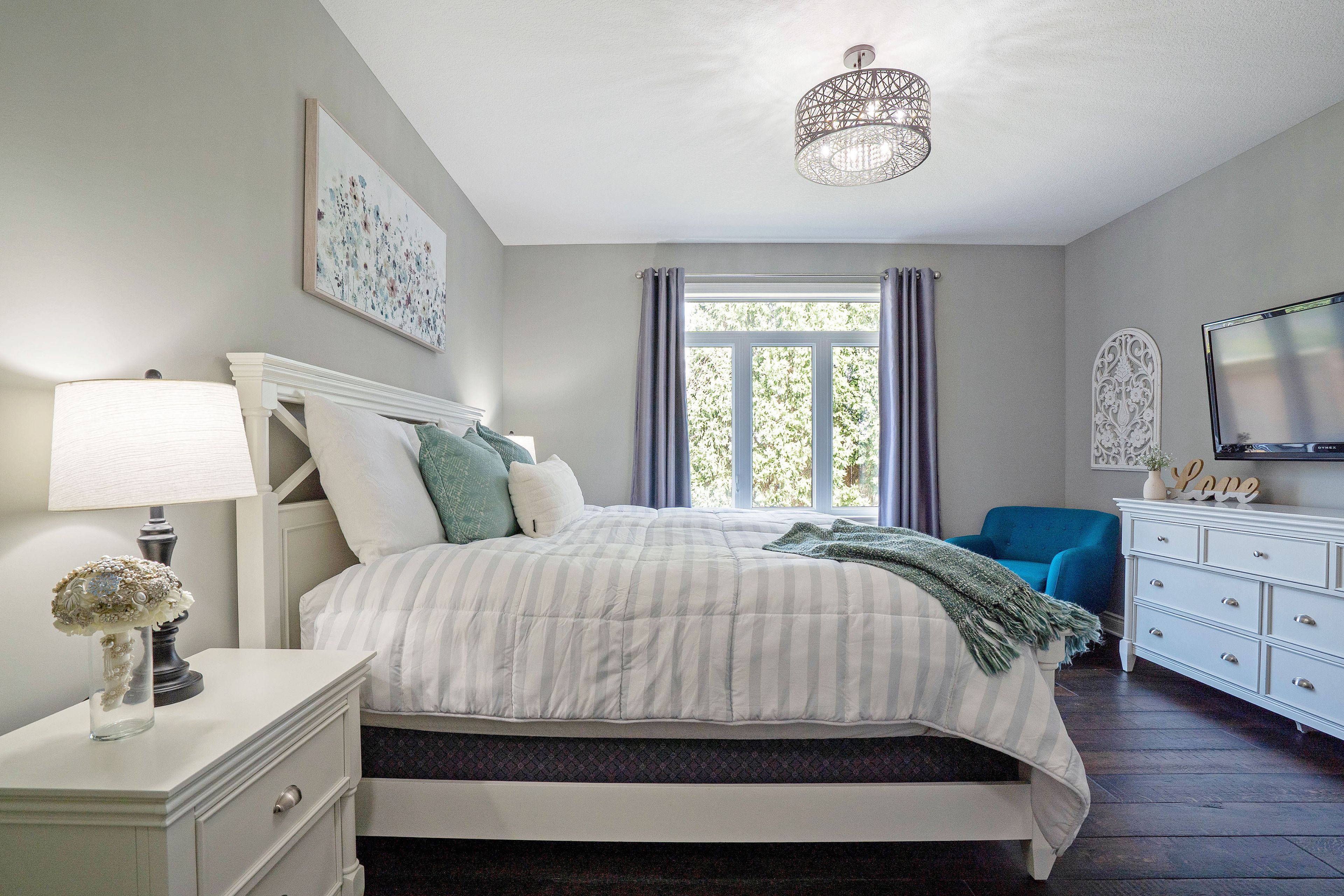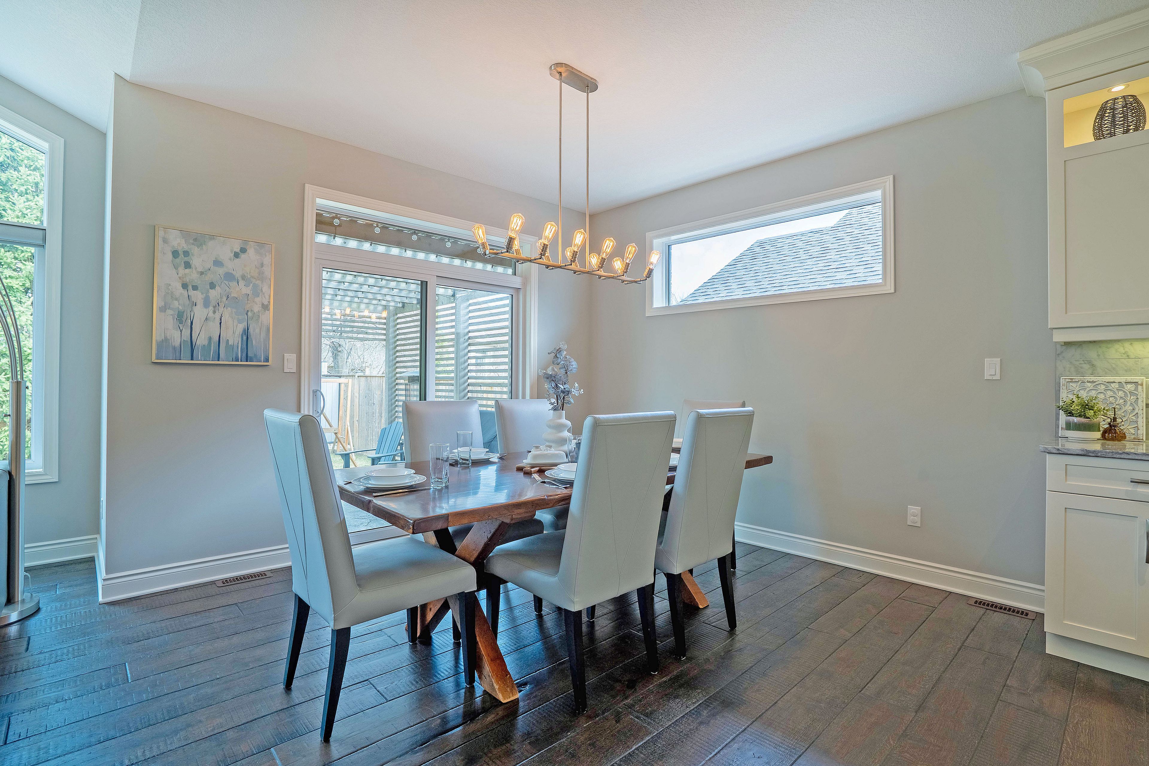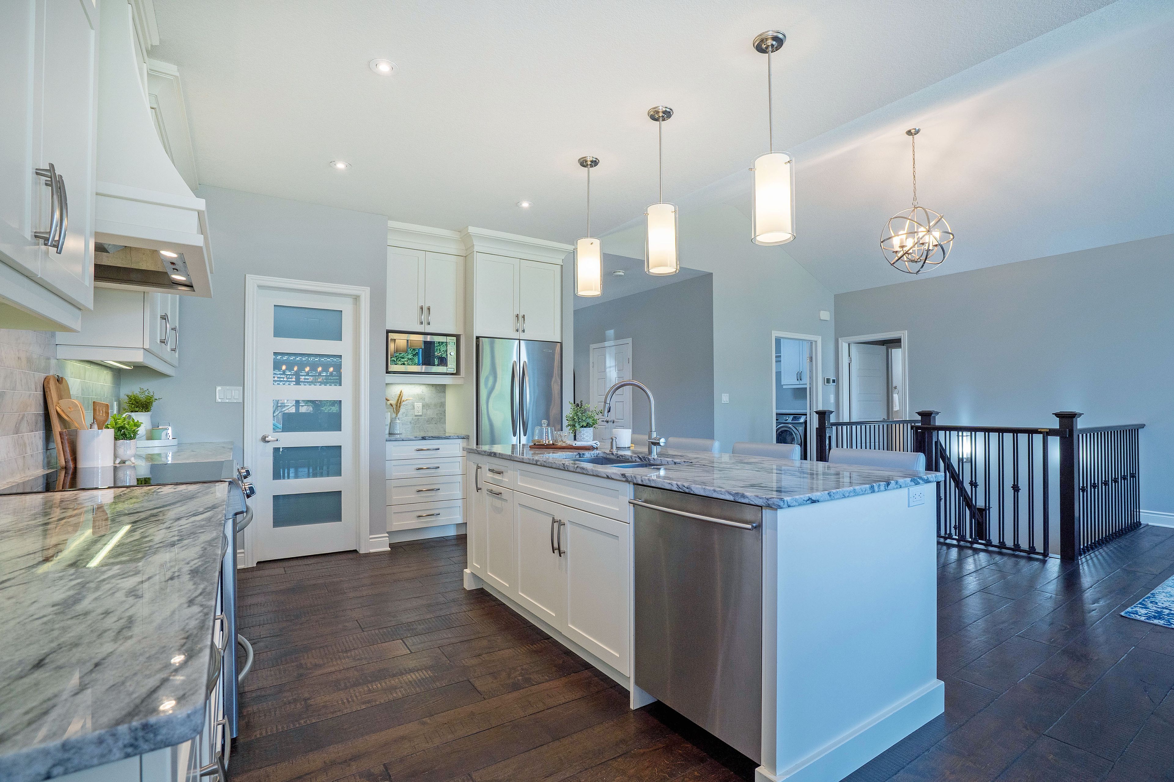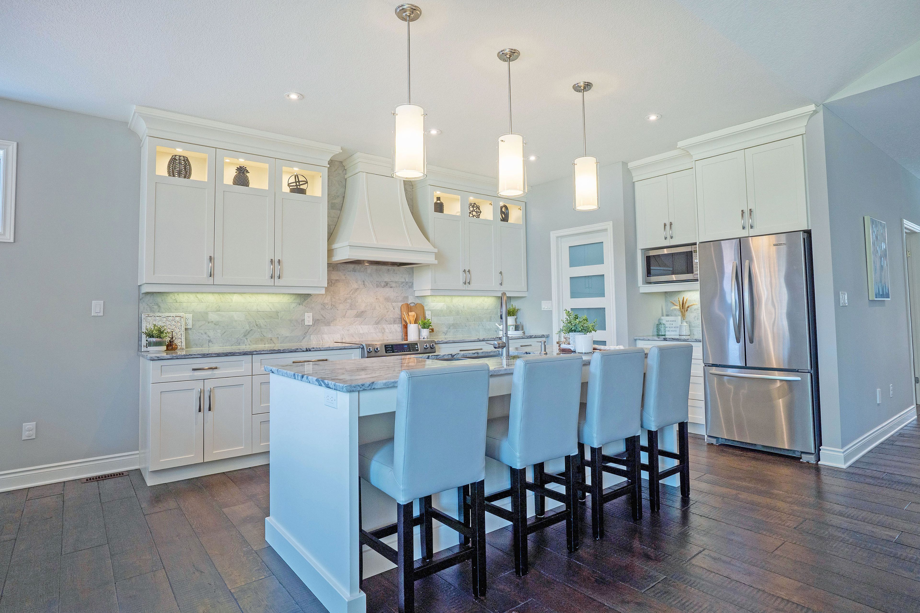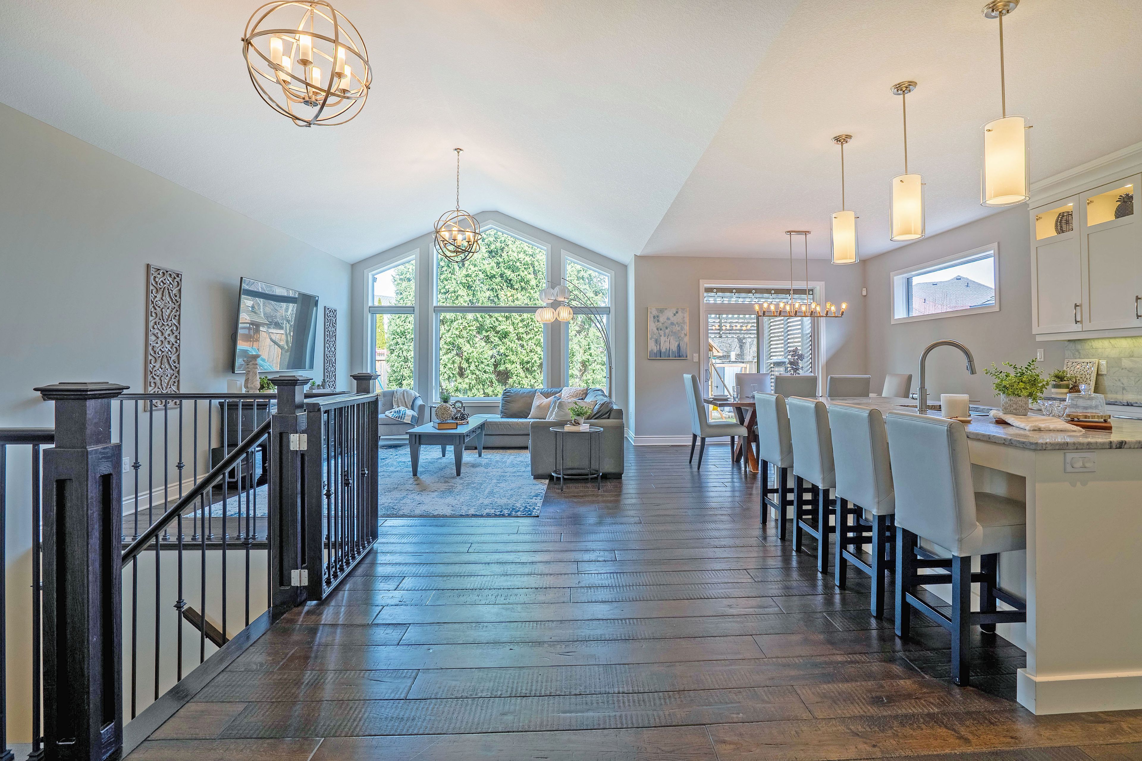 Stunning 4-bedroom, 3-bathroom bungalow situated on a quiet cul-de-sac, custom built by Doug Tarry with an expanded floorplan. The home is located near Lake Margaret's trails and Pinafore Park featuring scenic trails, tennis and pickleball courts, picnic areas, splash pad and playground. Enjoy a short commute to the beaches of Port Stanley. Impressive curb appeal with stamped concrete driveway and porch leads to a welcoming foyer and 9 ft ceilings throughout the main level. The designer kitchen features granite countertops, a spacious island, walk-in pantry and included appliances. The bright living room offers cathedral ceilings, abundant natural light and views of the backyard, while the dining area provides access to the fully fenced yard complete with concrete patio, gas BBQ hookup, pergola, playset and mature trees. The main floor includes a front bedroom or office with walk-in closet, a full bathroom, convenient laundry/mudroom with cabinetry and an expansive primary suite with backyard views, walk-in closet with organizer system and a luxurious ensuite with double quartz vanity and tiled glass shower. The fully finished lower level boasts engineered hardwood flooring, pot lights, a spacious family room, rec room, two additional bedrooms, a full bathroom with tiled shower and ample unfinished storage space. A beautifully maintained, quality-built home in a fantastic location-sure to impress!