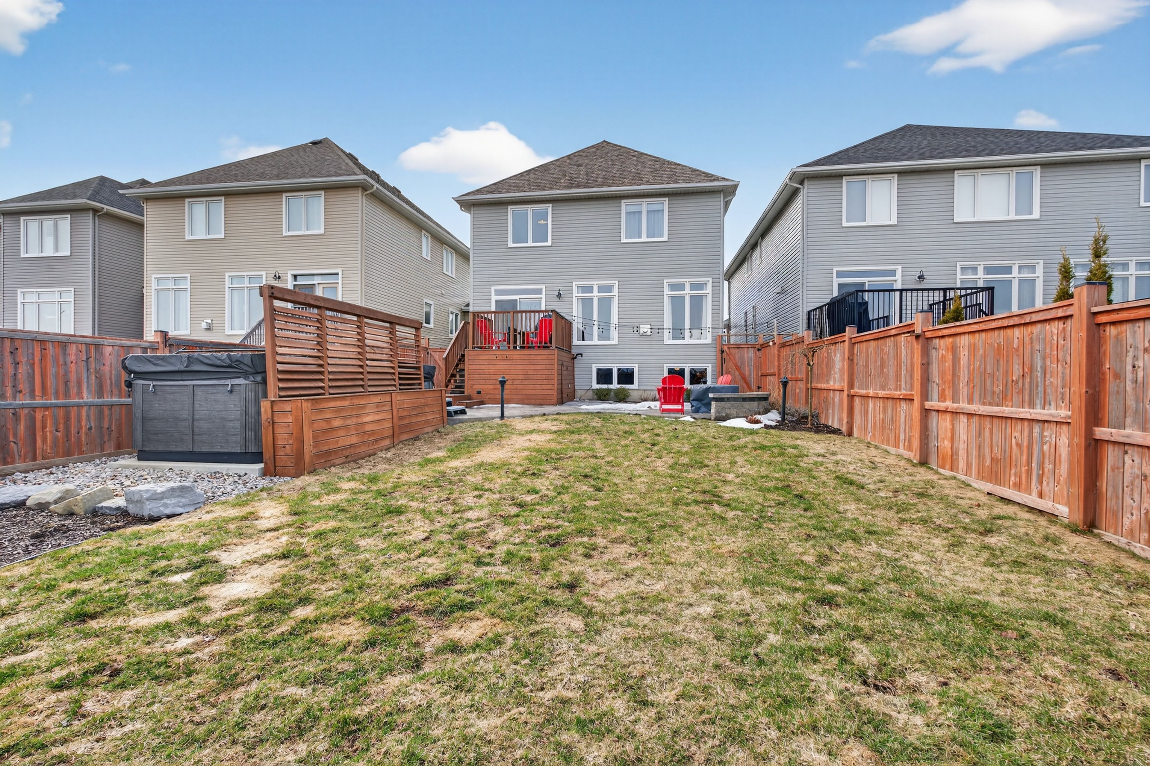 Welcome to 1140 Escala Crescent, a well-maintained Tamarack Bristol model located in Kingston's desirable Woodhaven community. Offering approximately 2,350 sq/ft above grade plus a fully finished basement, this spacious two-storey home features 4+1 bedrooms and 4 bathrooms, providing a functional layout suitable for a variety of living arrangements. The main floor offers bright principal rooms and a practical layout ideal for everyday living and entertaining. The kitchen provides ample cabinetry and workspace, with convenient access to the backyard. A main-floor powder room adds additional functionality. The second level includes four generously sized bedrooms, including a primary bedroom with an en-suite bathroom, as well as an additional full bathroom. A dedicated upper-level laundry room adds everyday convenience. The fully finished basement extends the living space with a recreation area, wet bar, additional bedroom, and full bathroom, offering flexibility for guests, extended family, or additional living use. The backyard is designed for outdoor enjoyment, featuring a swim spa, poured concrete patio, and fire pit area. Situated on a crescent in the Woodhaven neighbourhood, this property is located close to parks, schools, shopping, and local amenities. Schedule your private showing today.