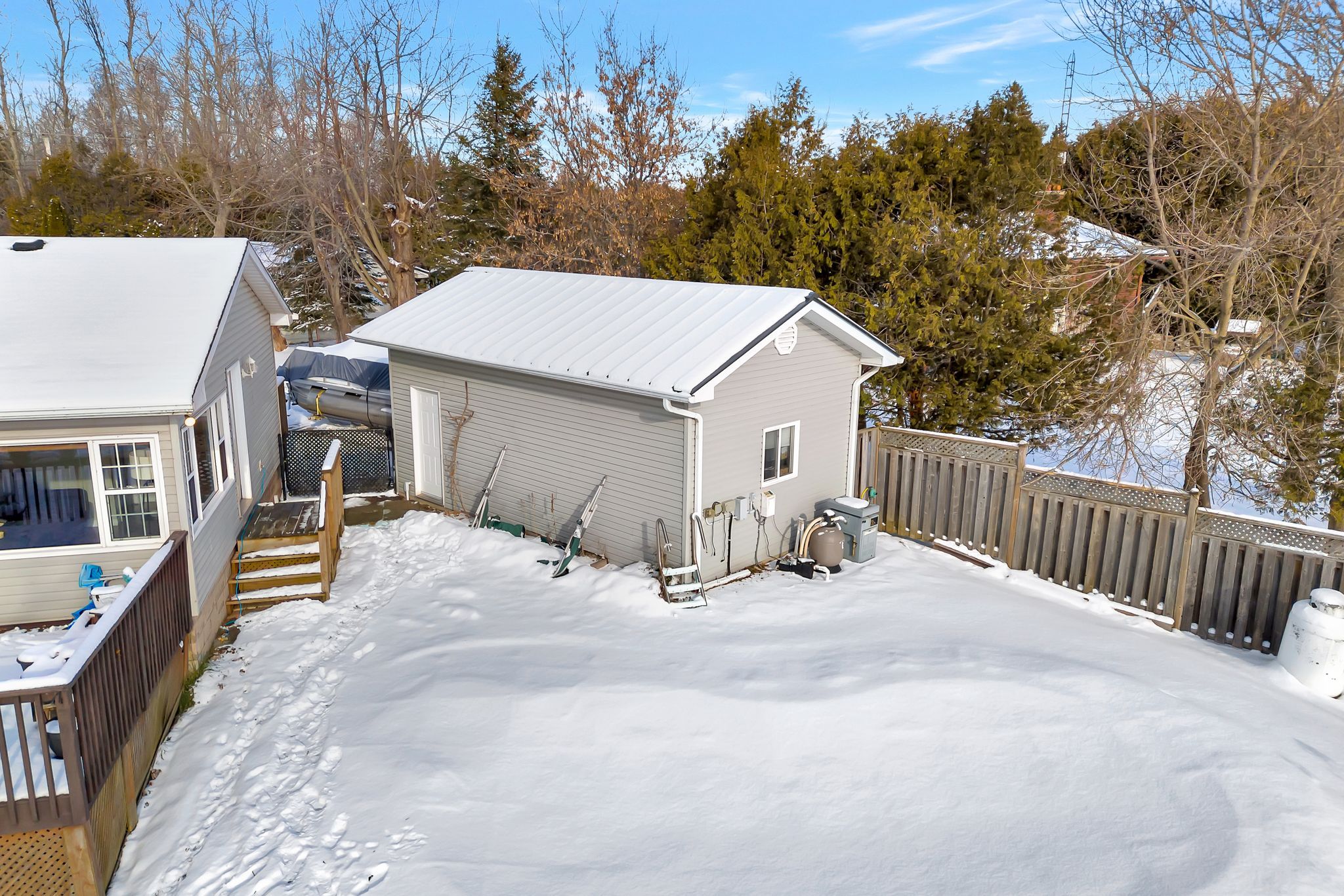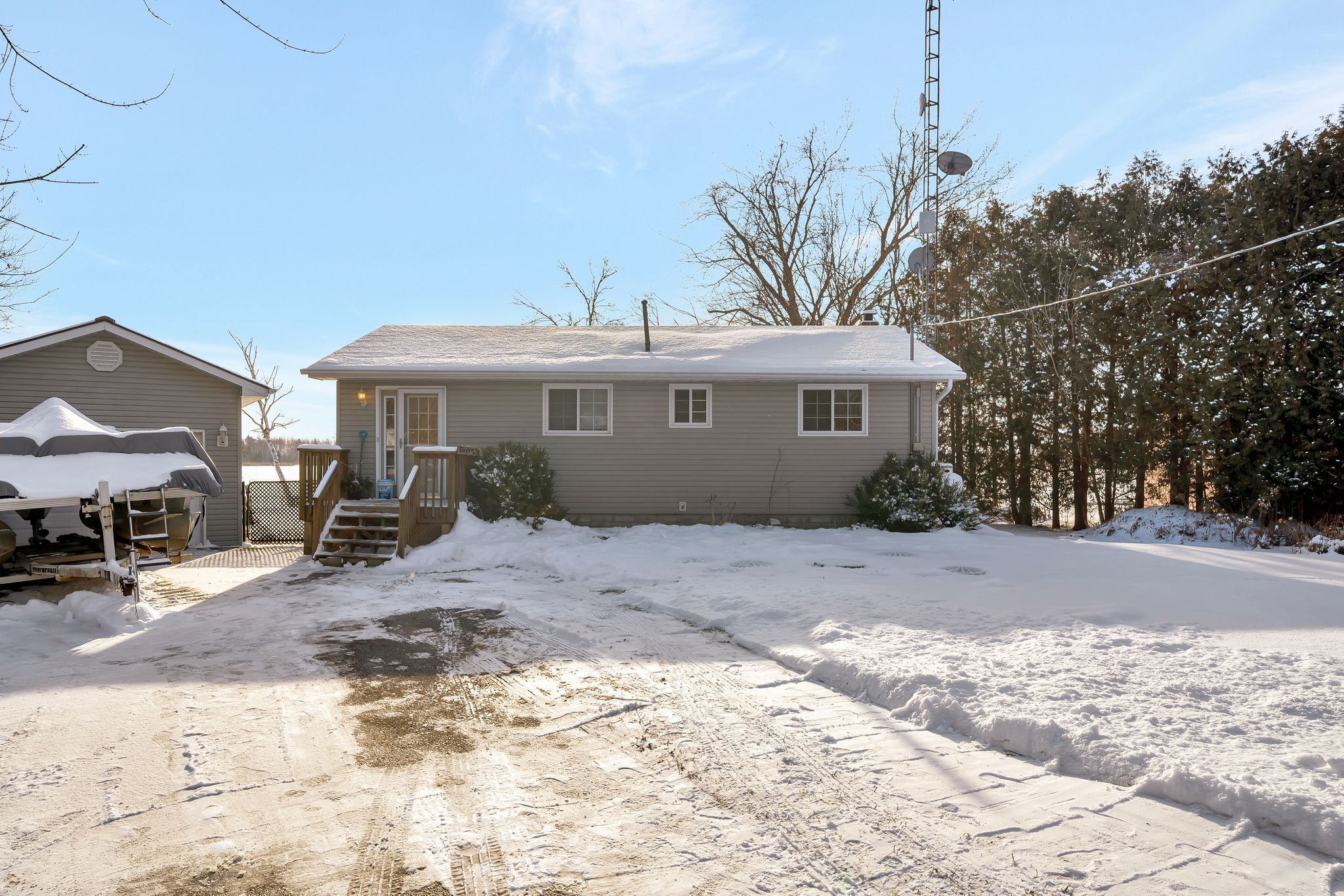Welcome to year-round waterfront living on Lake Scugog, part of the renowned Trent-Severn Waterway. This well-maintained 2-bedroom home with main-floor laundry and a versatile den-ideal for a home office-offers comfortable, low-stress lakeside living.The functional interior features a modernized kitchen with granite countertops and stainless steel appliances, plus year-round comfort with propane forced-air heating, central air conditioning, and upgraded attic insulation.Enjoy the outdoors with a saltwater inground pool, aluminum and cedar dock, and a newer bunkie with loft and metal roof-perfect for hosting guests. An oversized detached 1-car garage with metal roof provides ample space for storage and recreational gear.Extensively maintained with key upgrades including a Class 4 septic system, upgraded drilled well, whole-home water purification system, 200-amp electrical service, and a new pool pump, offering peace of mind and ease of ownership.Ideal for downsizers, professionals, or weekenders seeking a lifestyle property-not a project-on one of Ontario's most celebrated waterways.
