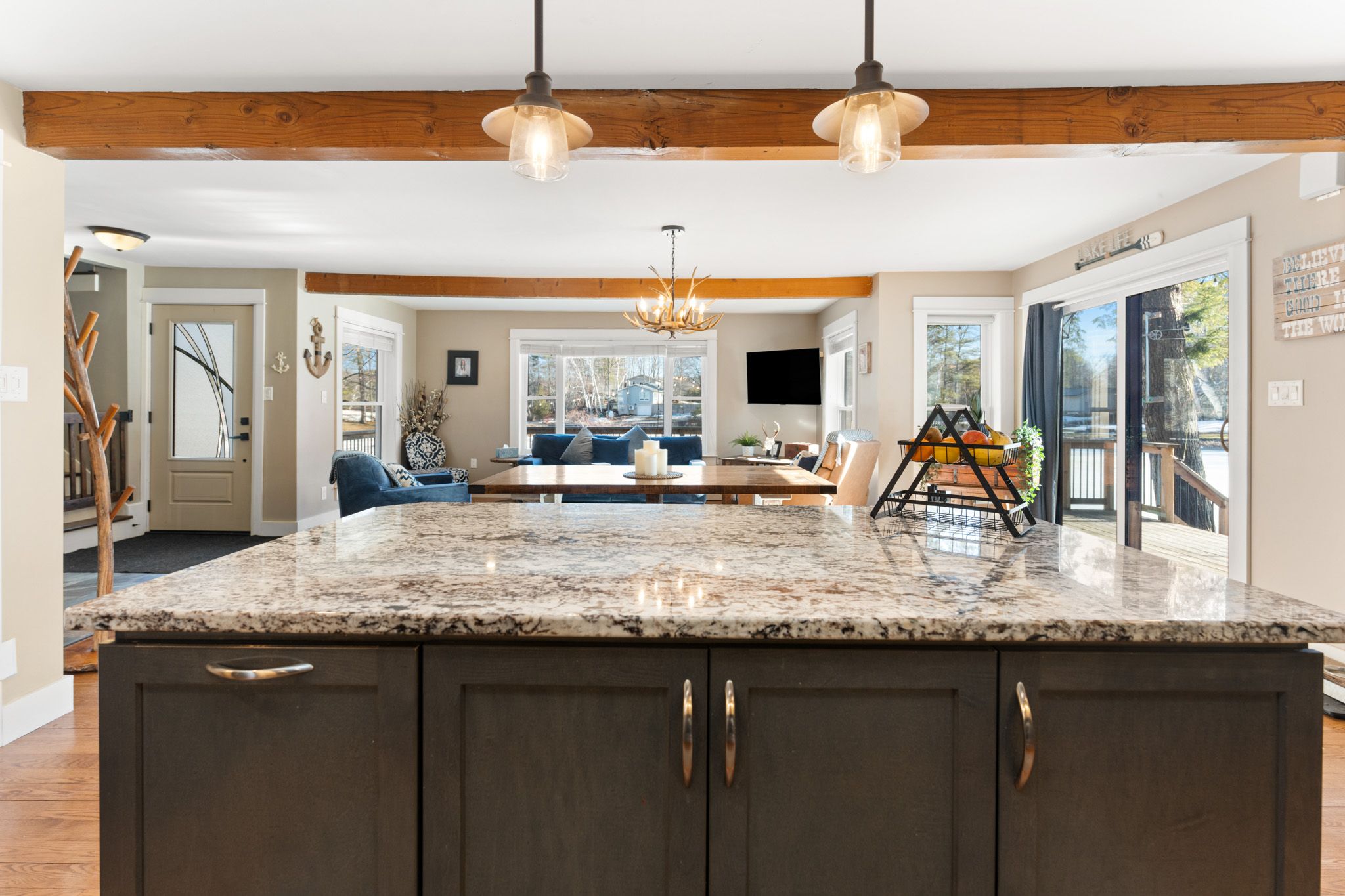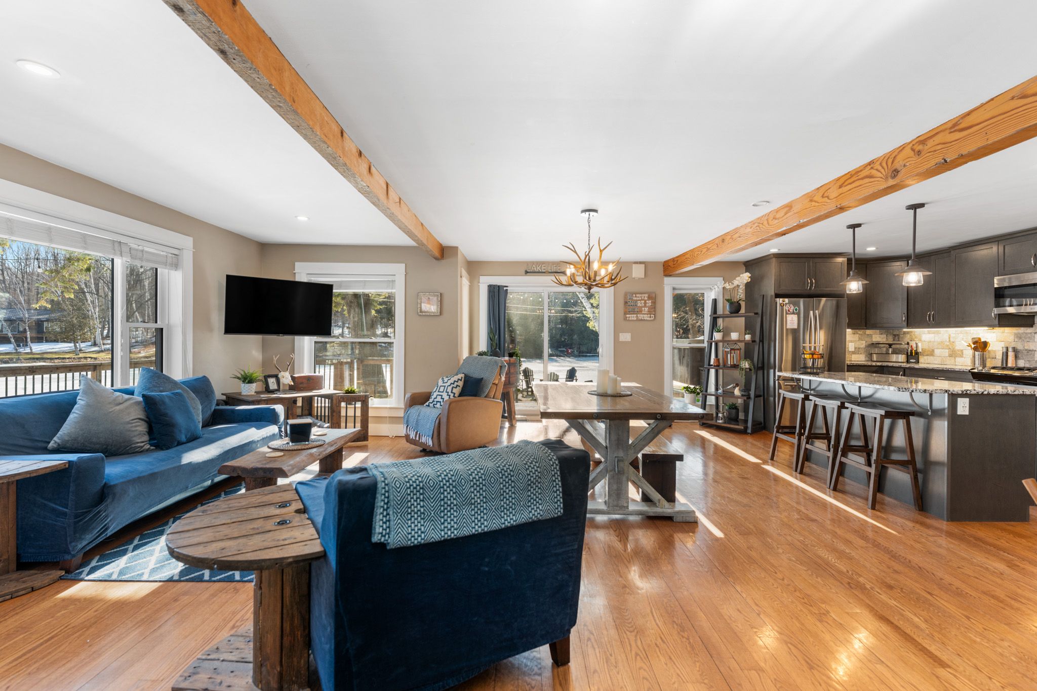 Welcome to your private waterfront retreat on Sydenham Lake, offering an incredible 312 feet of shoreline tucked into its own quiet bay just off the main lake. This protected shoreline provides the calm waters ideal for swimming, fishing, docking, and year-round lake enjoyment. Outdoor living is at its finest with a wraparound deck showcasing lake views and a stunning limestone patio designed for entertaining at the water's edge. Unwind in the hot tub beneath a custom-built gazebo after a day on the lake. This property also includes a double-car garage, a fully paved driveway, and a newly built storage building-providing ample storage for vehicles, tools, and recreational equipment. The home has been extensively renovated and thoughtfully updated. The custom-designed kitchen features granite countertops, a large island, and solid oak flooring-perfect for gathering and entertaining. Two beautifully updated bathrooms including a spa-inspired ensuite with a glass shower and deep, stand-alone soaking tub-an ideal retreat after a day outdoors. Additional upgrades include a new steel roof, siding and stone exterior, and new windows and flooring. A complete list of improvements is available upon request. This is a rare opportunity to own a truly exceptional waterfront property on Sydenham Lake-where privacy, modern comfort, and four-season recreation combine to create an unforgettable lakeside lifestyle.