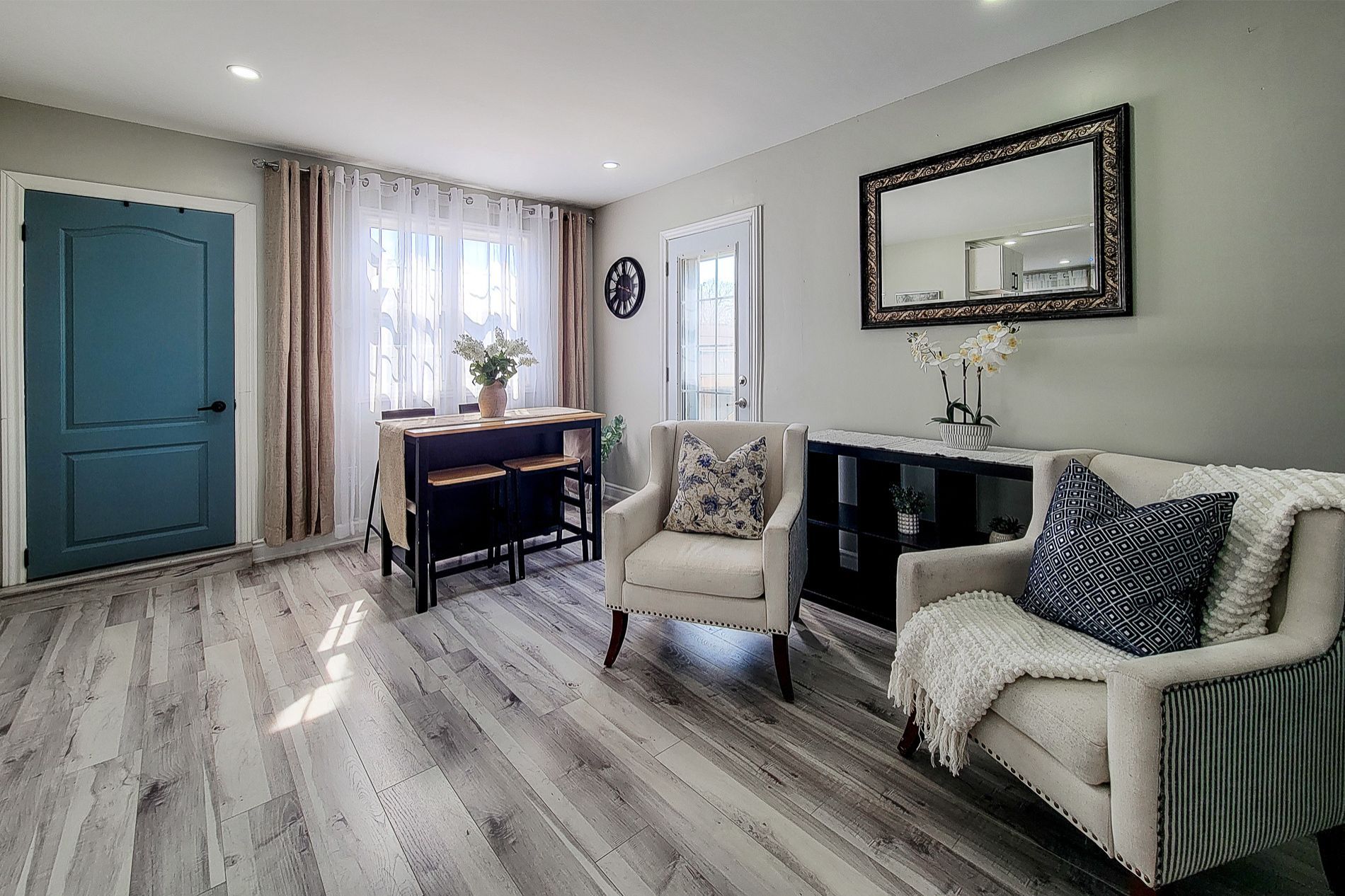 Welcome to this beautifully updated, fully detached 1.5 storey home in the heart of Stoney Creek. This move-in ready beauty offers approximately 1,100 sq. ft. of stylish living space (total 1615 sq ft including basement) with 4 bedrooms, 3 full custom bathrooms, 2 kitchens, and 2 laundry areas, ideal for families, multi-generational living, or investors. From the moment you step inside, you'll be awestruck by the warm and welcoming layout and the intelligent use of space throughout the home, making every level feel both functional and inviting. The stunning main kitchen is beautifully finished with custom cabinetry, quartz counters, and a gorgeous additional island installed in 2024, complete with dishwasher, creating the perfect space for cooking and entertaining. The main bathrooms are equipped with spa-like wall-mounted shower panel systems boasting overhead rain shower heads, vertical body spray jets, and handheld shower wands, adding a sleek, modern touch to the home's thoughtful updates. The lower level features a full 1-bedroom apartment with separate entrance, full 3-piece bath, living area, and kitchen with range and full-size refrigerator. Updates completed in 2023 include the roof, siding, driveway, all exterior doors, air conditioner, and electrical panel. Set on a massive 60 x 127 ft. lot with parking for an incredible 9 cars (2 in the garage, 7 on the drive), this property also offers a large deck and spacious backyard in a quiet, family-friendly neighbourhood close to schools, parks, shopping, and transit. Visit today!