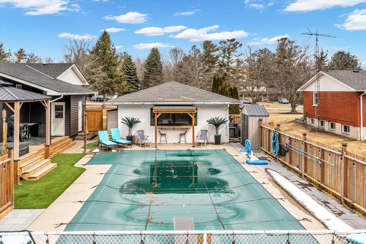 Set on a private 2.42-acre lot in Grafton, this extensively upgraded detached home offers a refined blend of modern comfort and country charm, with over $300,000 invested in recent improvements. Featuring 3+1 bedrooms, 3 bathrooms, and over 1,800 sq ft, this turnkey property is ideal for families, first-time buyers, or investors seeking space, flexibility, and long-term value.The main floor was fully renovated in 2025, showcasing updated electrical, upgraded lighting, and a thoughtfully designed open-concept layout that blends everyday functionality with elevated style. A newly added side entrance (2026 permit) enhances flexibility for in-law or income potential. The finished basement (2026) adds valuable living space complete with a custom bar-perfect for entertaining or relaxing.Major system upgrades provide true peace of mind, including new windows (2025), roof (2026), A/C condenser (2025), furnace blower motor (2025), and extensive septic improvements with new risers, lids, and eject pump (2025). The septic system has been recently pumped and inspected, confirming excellent condition.Step outside to your private backyard retreat featuring a pool with all new equipment (2025, under warranty), premium Unilock stone surround, gazebo, hot tub with updated pump, and dedicated pool and hot tub sheds. A new 6' x 12' deck and fenced dog run add both function and enjoyment. Additional updates include new siding with vapour barrier, front deck and stairs, and a rebuilt rear shed/roof.A standout feature is the added bathroom with in-suite laundry and a primary bedroom sliding door walkout, creating seamless indoor-outdoor living.Located in a welcoming neighbourhood where kids still play outside, this is a rare opportunity to own a fully upgraded home on acreage.Book your private showing today.
