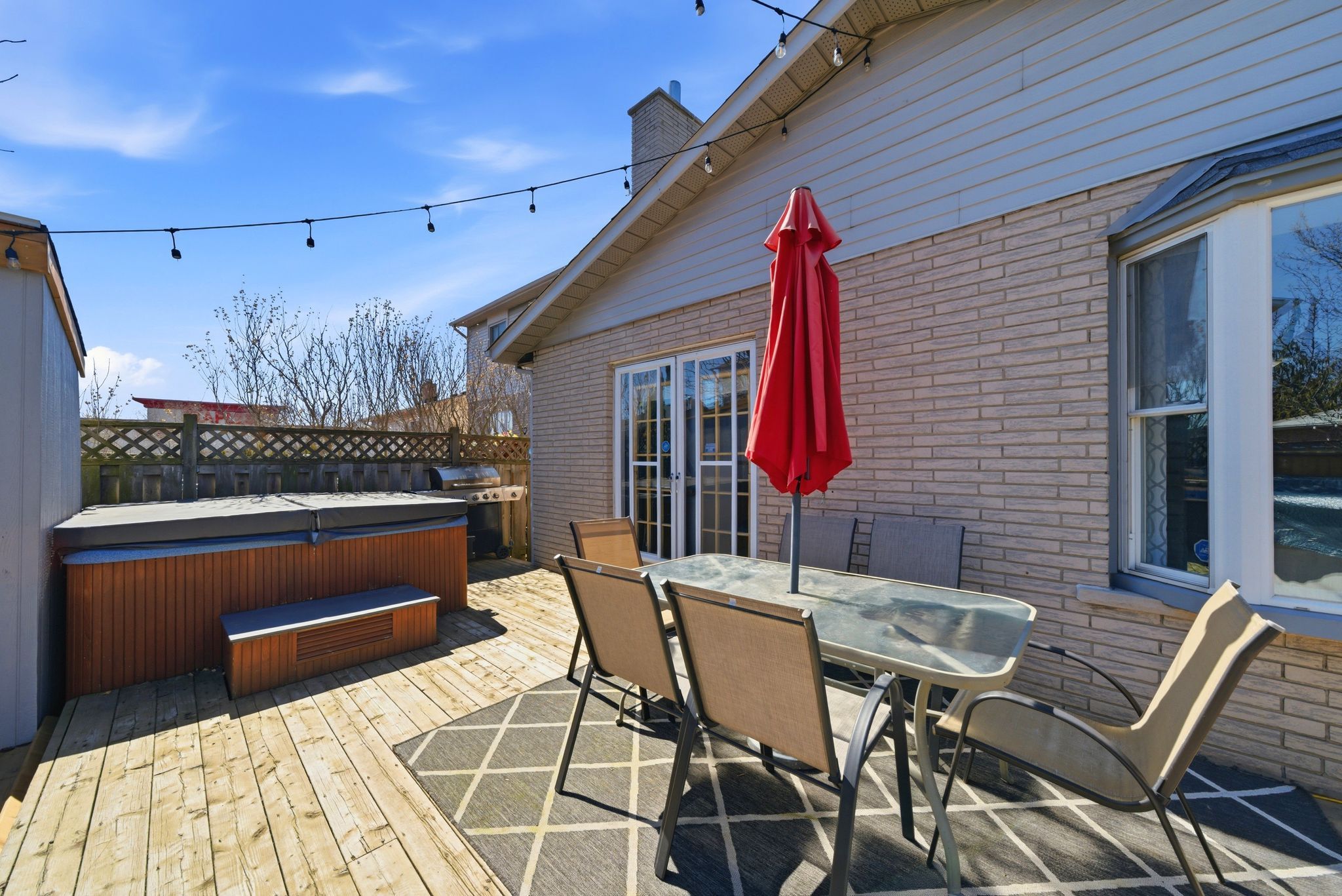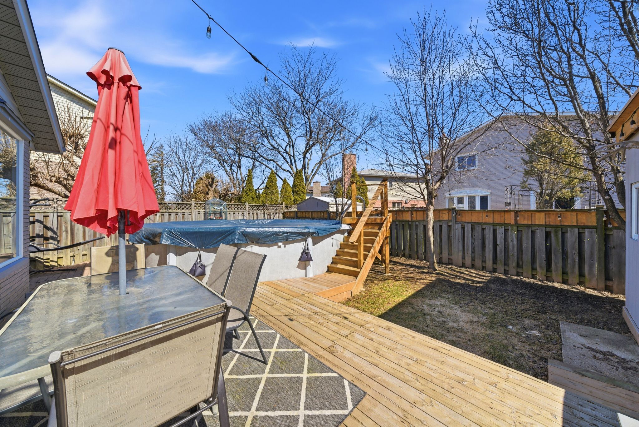Welcome to this exceptional family home, ideally positioned on a quiet, highly sought-after cul-de-sac, just steps from Limeridge Mall and an abundance of everyday amenities.The main level is thoughtfully designed for both comfort and connection, featuring a bright, open-concept eat-in kitchen and family room with seamless access to the backyard through French doors. Main floor also includes a versatile space ideal for a formal dining room, home office, or expanded living area. Large windows throughout fill the home with natural light, complemented by a convenient 2pc powder room.Upstairs, the spacious primary retreat offers a walk-in closet and private 3pc ensuite. Two additional bedrooms and a full 4pc bathroom complete the upper level.The basement features a private in-law suite, complete with its own kitchen, 4pc bathroom, two bedrooms, and a large open-concept living and dining area. Egress windows enhance both safety and natural light, creating a comfortable and functional secondary living space.Step outside to a private backyard setting designed for both relaxation and entertaining, featuring a deck, above-ground pool, and hot tub.A rare opportunity to own a versatile and beautifully situated home in one of Hamilton Mountain's most convenient and established communities.