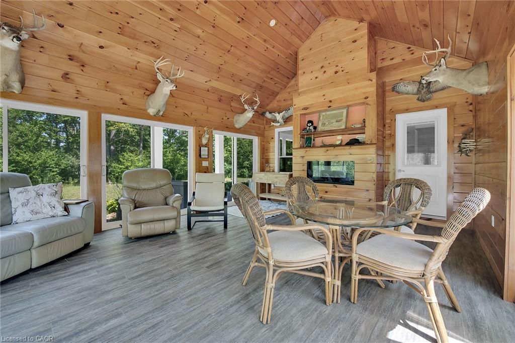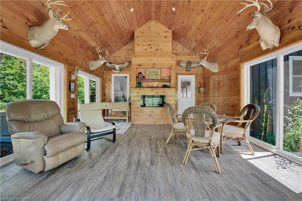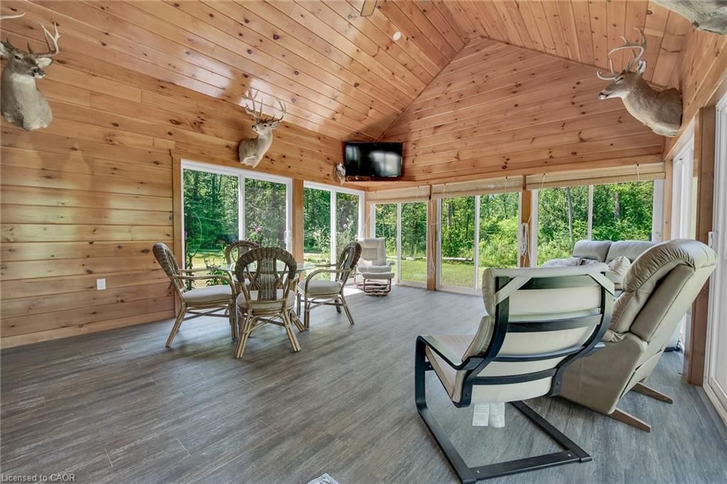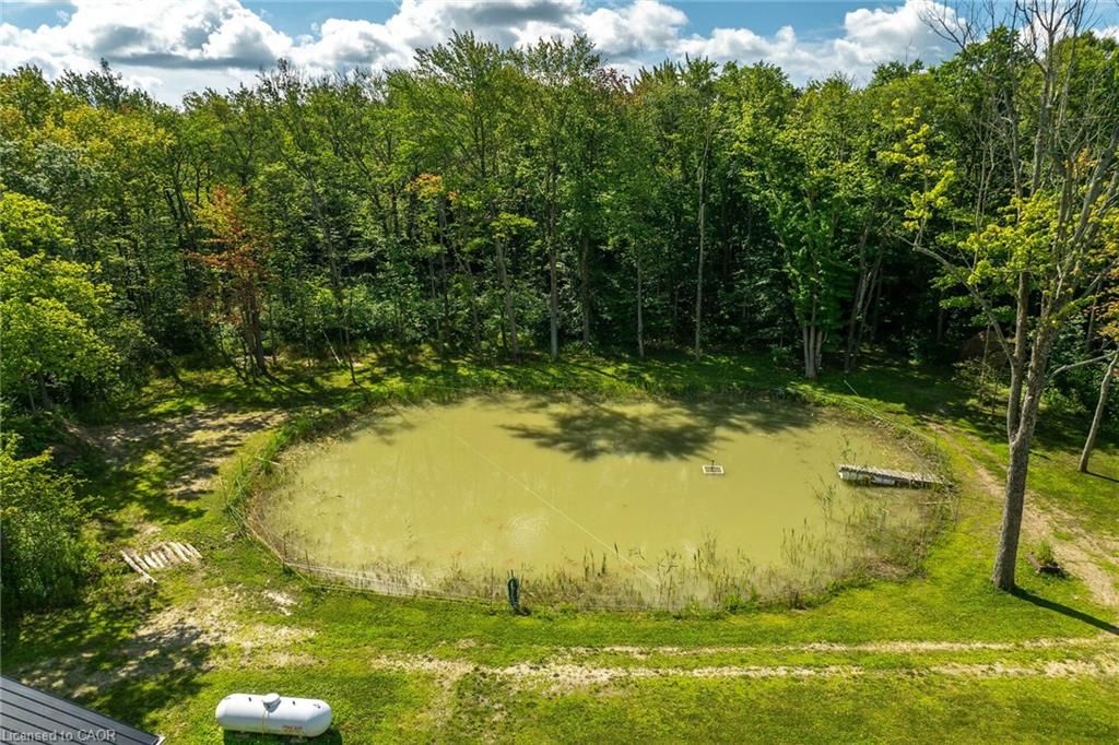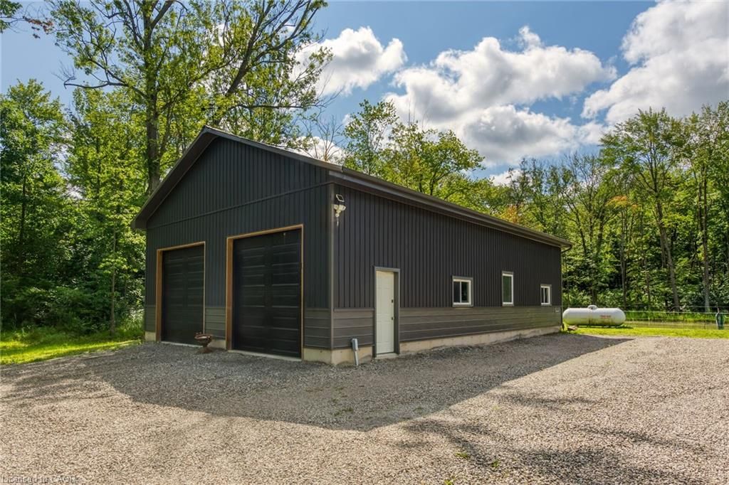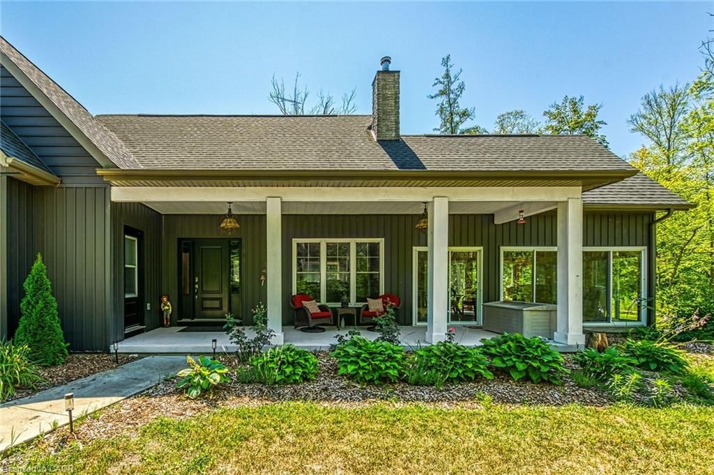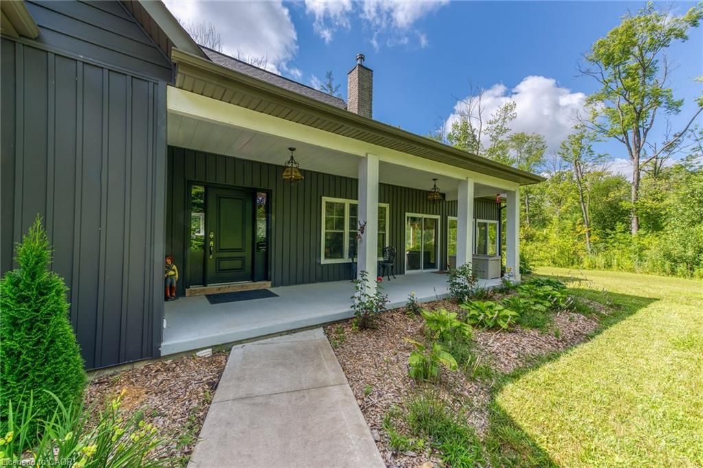 Perfect country package! Rare opportunity to own a secluded 52-acre multi-purpose property, frequented by deer, wild turkeys, rabbits, and various bird species. The land comprises mature forest and wetlands, including maple, ash, and oak trees, with nature trails and road frontages on three sides for privacy. The property features a 1,436 sq ft bungalow, custom built in 2020, with two main floor bedrooms, two and a half bathrooms, and an unfinished basement suitable for additional living space and more bedrooms. Additional structures include a 50'x30'x18' workshop equipped with a car hoist, suited for hobbyists or contractors. The main floor has an open concept with a cathedral ceiling finished in tongue-and-groove pine, an eat-in kitchen with custom maple cabinetry, quartz countertops, a bay window, and stainless-steel appliances. The living room includes a wood fireplace, scraped hardwood floors, and patio doors to a rear deck overlooking the aerated pond and wooded area. The great room provides panoramic outdoor views through wall-to-wall sliding patio doors, a cathedral pine ceiling, and an electric fireplace. Both main floor bedrooms are spacious; the principal bedroom has an ensuite, walk-in closet, and deck access. The basement contains laundry facilities, a utility room, storage, and roughed-in plumbing for bathrm with sewage ejector. Notable amenities include a hi-eff propane furnace, central air, a 2,500-gal water cistern, indoor and outdoor sump pumps, a modern septic system, and 100-amp electrical service. The property is situated on a year-round paved road in a tranquil setting surrounded by a serene forest, with landscaped grounds, vibrant perennial gardens, and a large driveway that can accommodate multiple vehicles and a boat or RV. Located near Dunnville's amenities, it is within a 30-60 minute drive to Hamilton and Niagara. This property offers a cottage-like ambiance for those interested in outdoor recreation and nature!