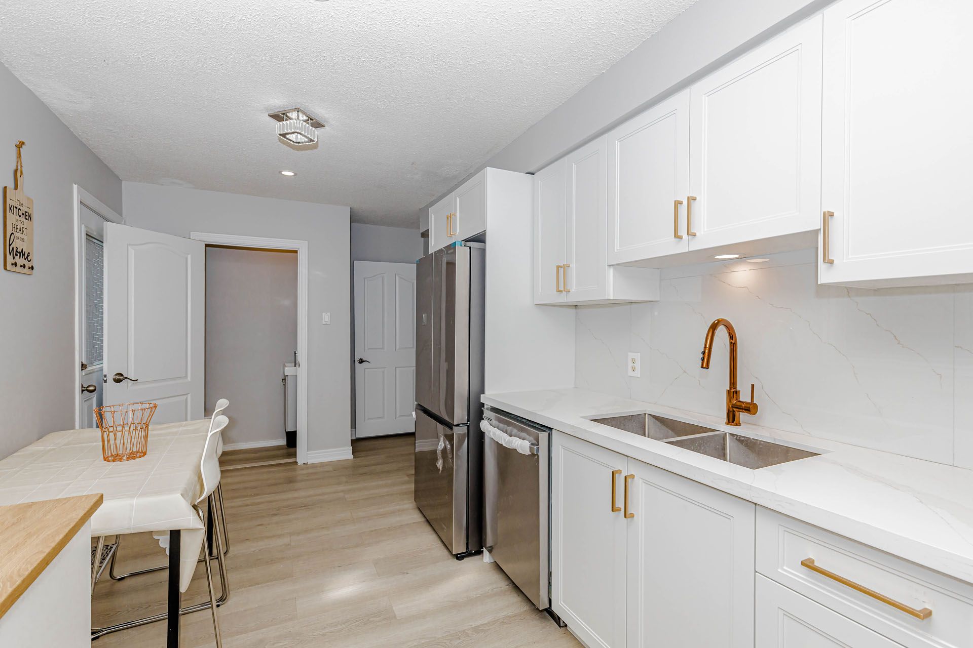 Welcome to 570B Glen Forrest Blvd, located in the desirable Lakeshore Village in city of Waterloo. This fully renovated 'smoke-free & pet-free' home offers 3 bedrooms and 2.5 bathrooms-perfect for first-time buyers or growing families. Features include a modern kitchen with beautiful gold-appealing theme, new backsplash, new appliances, plus luxury vinyl flooring on main and upper floors. Powder room in main floor. Stairs leading to upper floor have been renovated matching the new flooring. The ground level offers a walk-out to a private, fenced backyard featuring two decks to host large gatherings/BBQ. Upper floor has 3 bedrooms and a full bath renovated featuring a marble vanity & standing shower. Finished basement acts as an independent unit with kitchen, rec room, and 3-piece bath-ideal for extended family or nanny suite. Widened concrete Driveway fits up to 4 cars. Freshly painted too. Prime location near University of Waterloo, schools, parks, places of worships, shopping, transit, and highways. Don't miss this opportunity to own a 'feature-rich' and 'move-in' ready home durable for years to come !