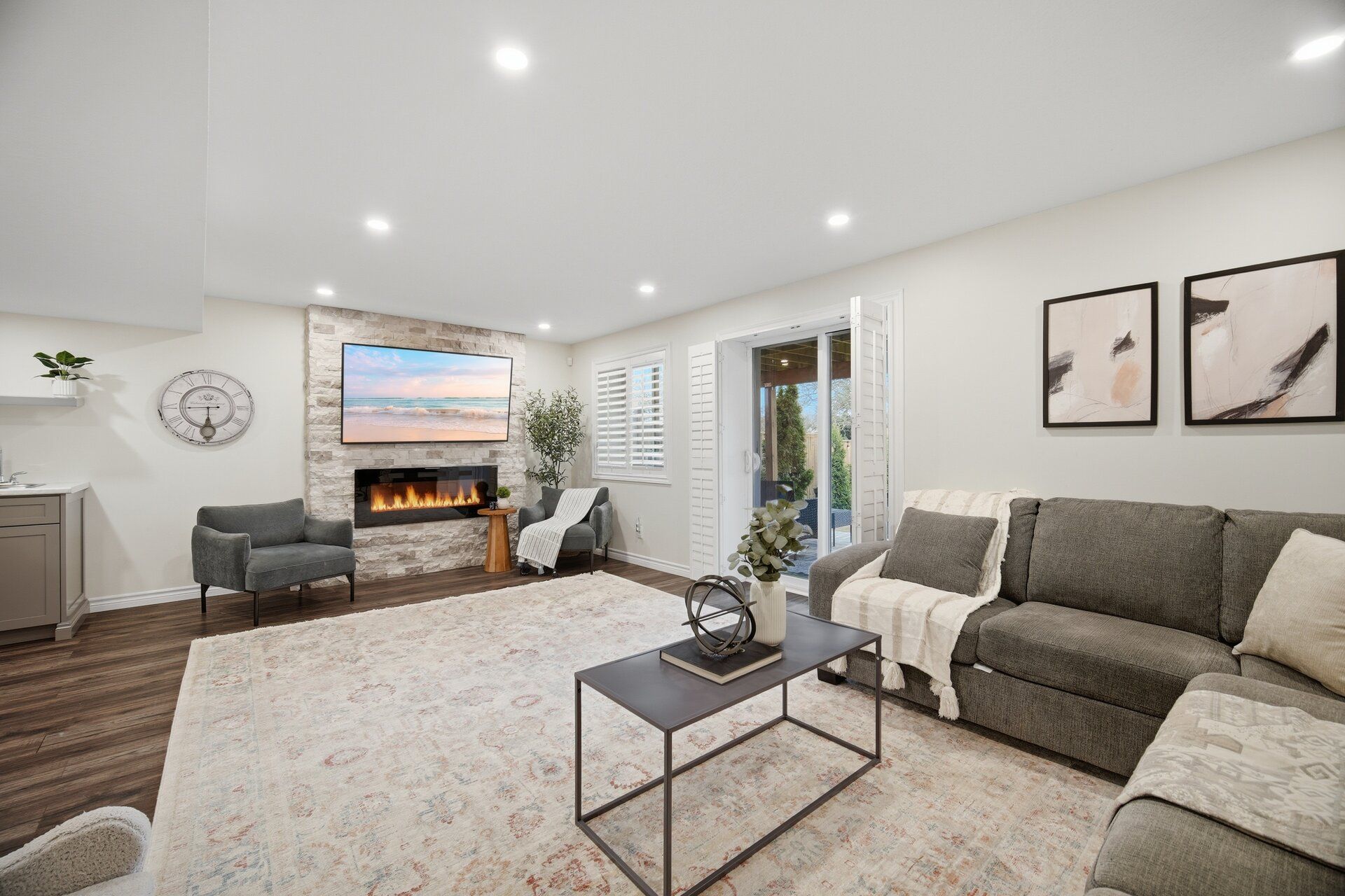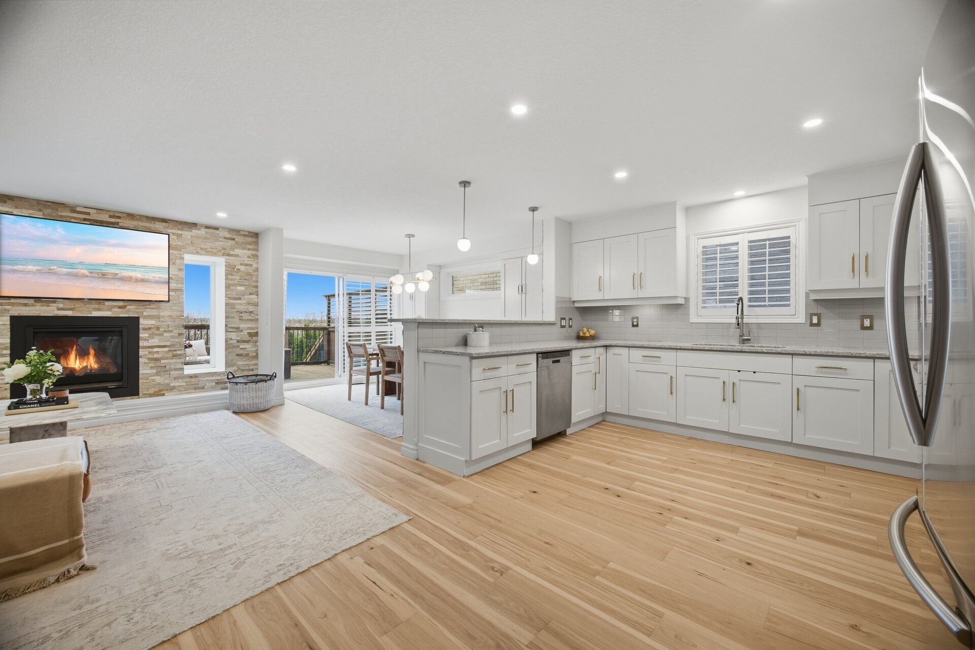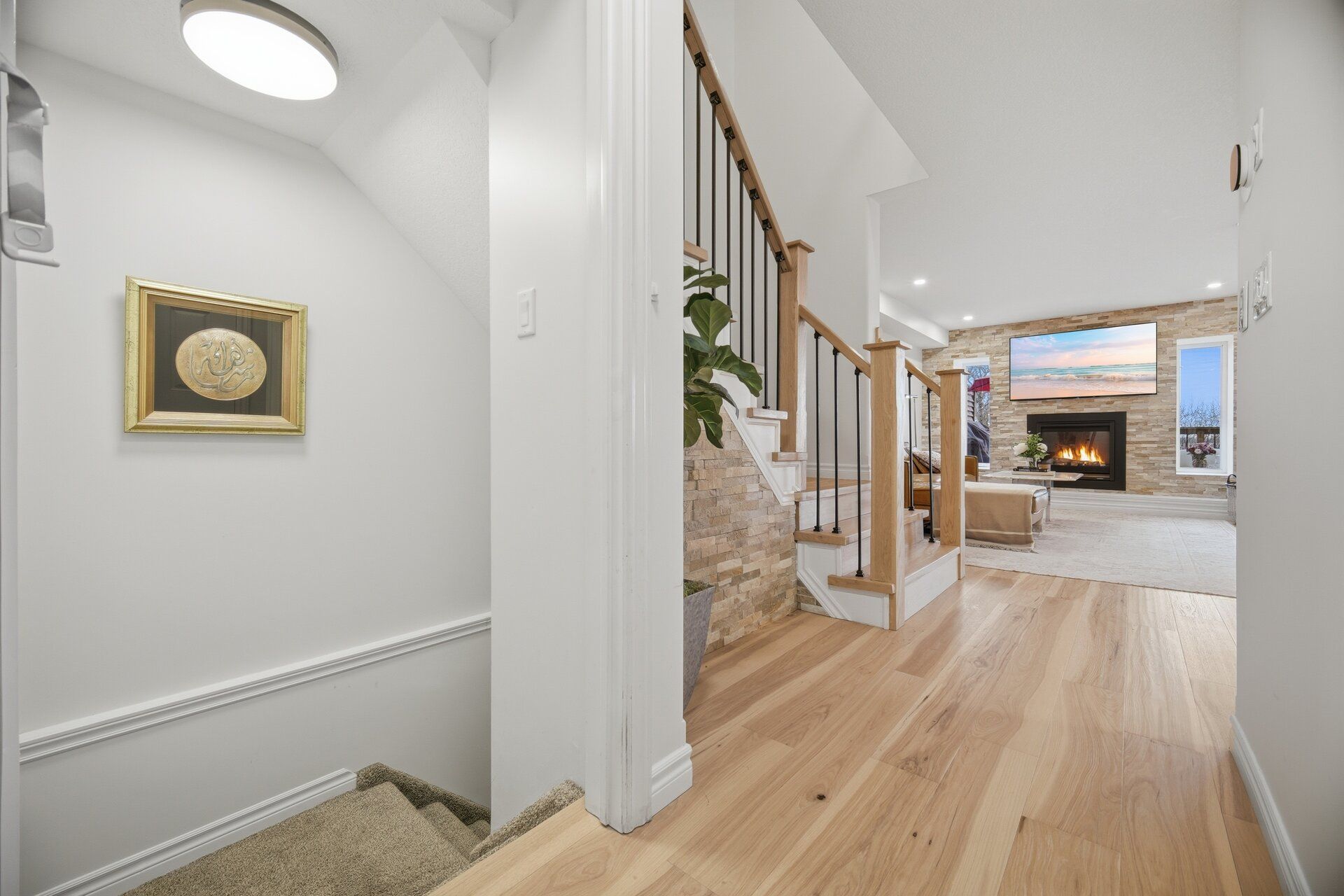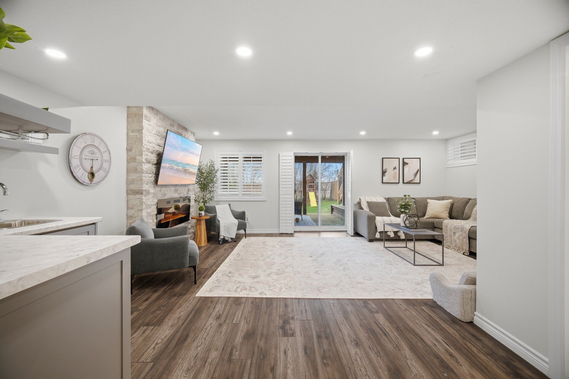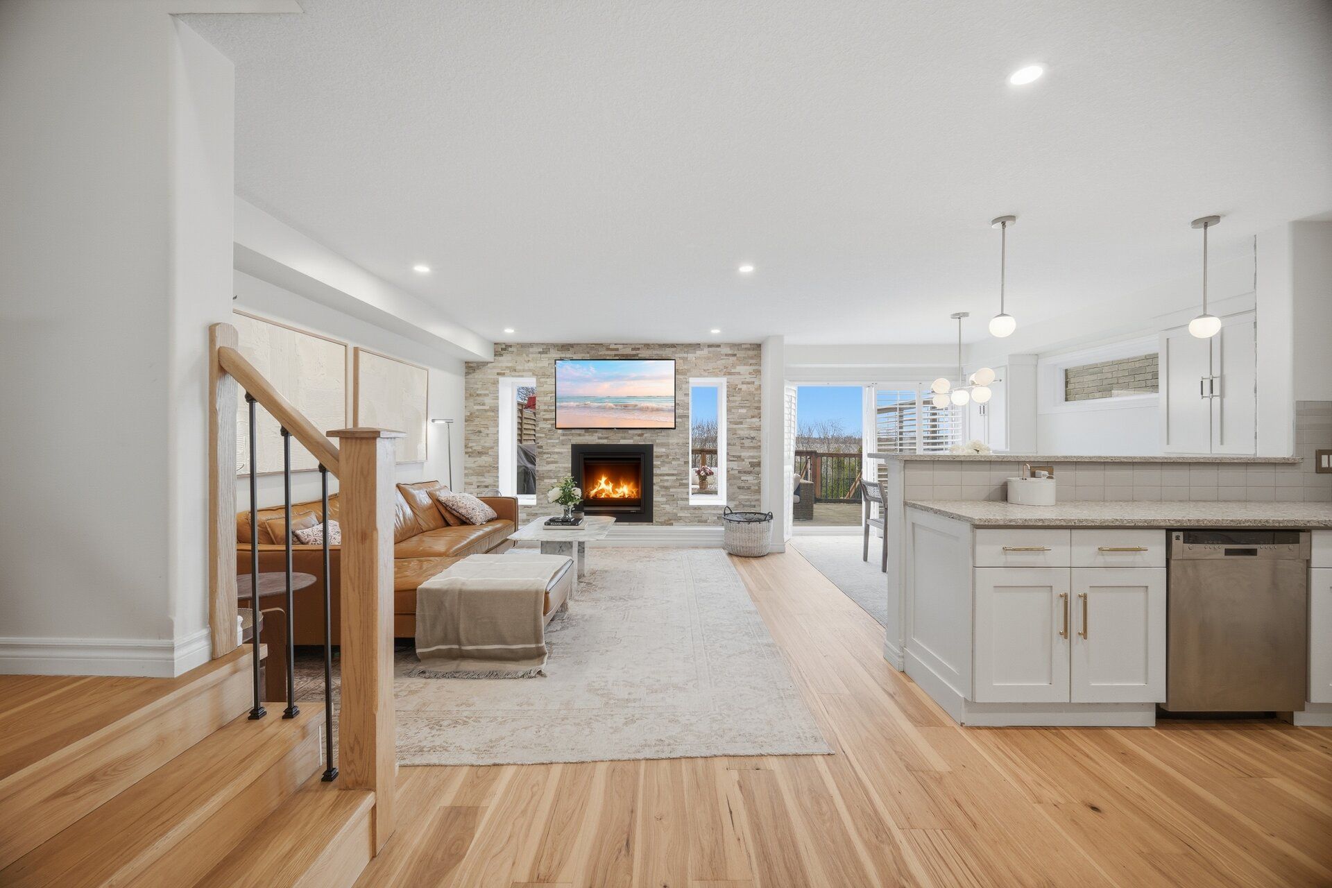True pride in ownership - Where Design, Privacy, and Effortless Living Come Together. Meticulously transformed into a true turn-key retreat, where every detail has been elevated with care, intention, and exceptional craftsmanship. This is luxury Living Backing On to no neighbours in Guelph's Desirable East End. A beautifully upgraded, completely turn-key detached home offering approx. 2500 sqft of total living space. This home has undergone extensive, high-end renovations with significant investment throughout, leaving nothing for the next owner to do but move in and enjoy. Featuring premium hardwood flooring throughout (minus basement stairs), freshly painted, upgraded lighting with pot lights, and elegant finishes at every turn. Features a stunning modern kitchen complete with quartz countertops and additional custom cabinetry/pantry space. With 4 spacious bedrooms and 2.5 bathrooms on the main and and 2nd floor, plus a fully finished walkout basement offering a large recreation room, an additional bedroom, and a 2-piece bath, this home delivers exceptional flexibility for families of all sizes. Step outside to your private backyard retreat surrounded by mature trees that create a peaceful, secluded setting, especially in the summer months. Enjoy two expansive decks (upper and lower) thanks to the walkout design, perfect for entertaining, relaxing, or taking in Guelph's renowned birdlife. The yard is fully equipped for family living with a kids' play set and beautifully designed outdoor spaces plus a newly completed side concrete walkway and stairs leading to the backyard. Additional highlights include two fireplaces, a 1.5 car garage (total 4 parking spaces), and a layout designed for both comfort and functionality. With a strong community feel, excellent schools, parks, and natural surroundings, this home offers the perfect blend of luxury, privacy, and convenience. This is true turn-key living - every detail has been taken care of. Just move in and enjoy.