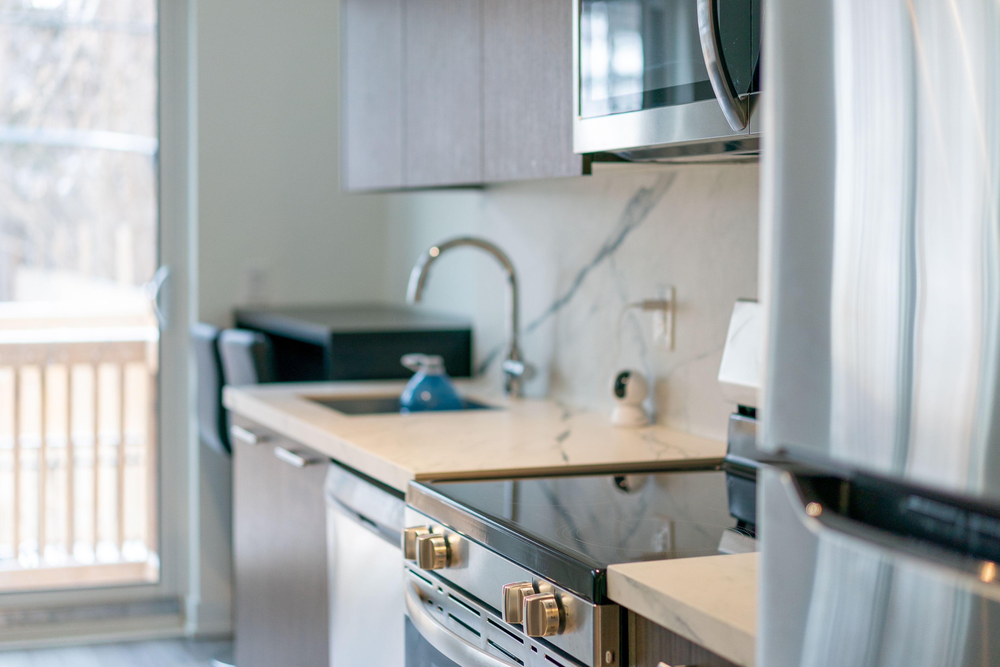 Brand new and never lived in, this rare 3 bedroom plus den residence at Greenwich Village Towns delivers elevated city living with exceptional outdoor space plus a private backyard and a stunning rooftop terrace made for sunset lounging and effortless entertaining. Soaring 9 ft ceilings, 2 full bathrooms plus a powder room, and a thoughtfully upgraded interior create a refined, move-in-ready feel from the moment you step inside. Tasteful enhancements include oak stairs with iron railing, waterproof flooring, upgraded kitchen cabinetry, a frameless glass shower, and dual thermostat controllers for added comfort and control. Enjoy a truly connected location steps to Sheppard West Station, minutes to Yorkdale, and with quick access to Highway 401 and Allen Rd surrounded by schools, parks, dining, and everyday conveniences including grocery, banks, Costco, Home Depot, and Best Buy. One parking space included. Stainless steel appliances include stove, built-in dishwasher, fridge, built-in microwave with range hood, plus washer & dryer, window coverings, and light fixtures.