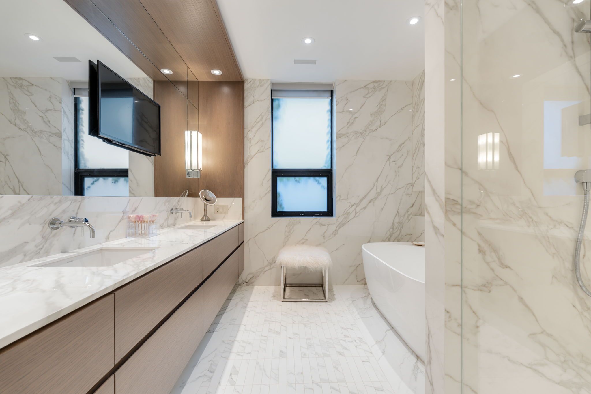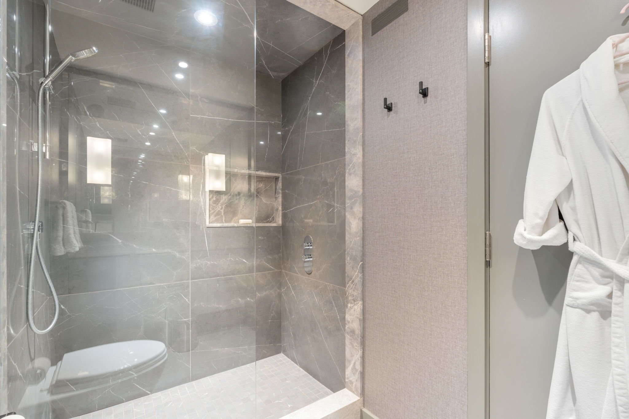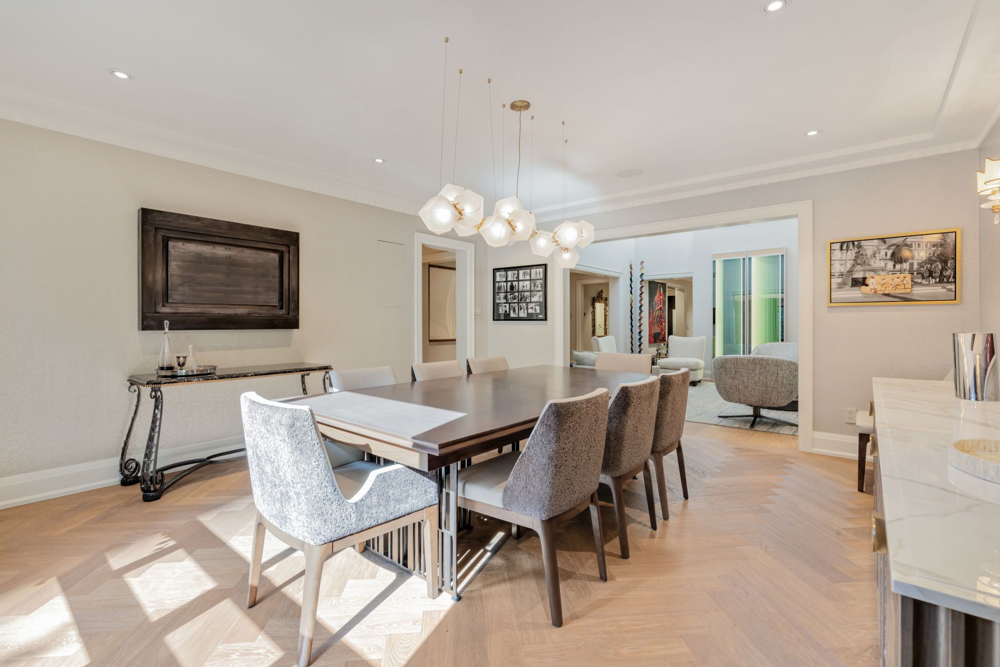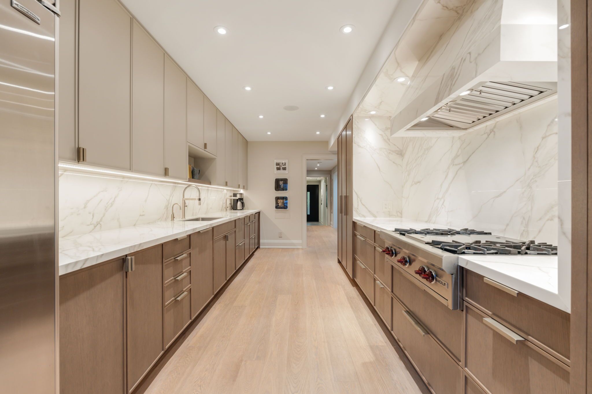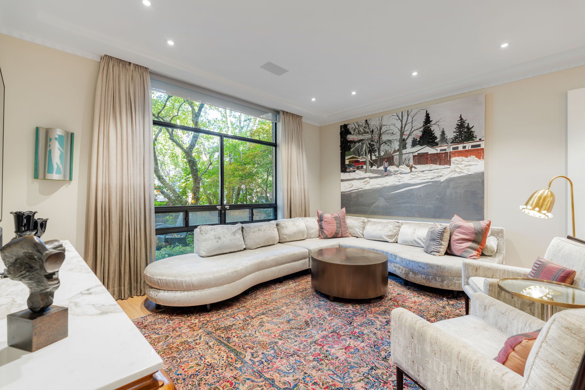 Experience elevated living in this fully reimagined 3-bedroom, 4-bathroom townhome, quietly tucked within a prestigious Forest Hill/Deer Park enclave. Rebuilt from the studs up, this exceptional residence spans over 6,400 sq.ft. of sophisticated living space, seamlessly blending timeless elegance with modern luxury. A gracious foyer with porcelain tile flooring, bespoke built-ins, and a solid-core entry door leads to expansive living and dining areas adorned with oak hardwood floors (herringbone in the dining room), crown moulding, and custom drapery. The dramatic family room impresses with soaring ceilings, skylights, and gallery-style walls, creating an ideal backdrop for art and entertaining. At the heart of the home, the chef's kitchen is a true showpiece, featuring porcelain countertops, custom cabinetry, a Wolf gas range with dual ovens, Sub-Zero fridge/freezer, two dishwashers, and a built-in coffee system. French doors open to a private stone patio, perfect for outdoor dining and entertaining. The serene primary suite offers a custom walk-in closet and a spa-inspired 5-piece ensuite with floating vanity, TV mirror, soaker tub, and a glass-enclosed shower with offset controls. Two additional bedrooms - one easily adaptable as a home office - share a designer 3-piece bath and walk-in closet. The sun-filled lower level provides remarkable versatility, boasting a recreation room with gas fireplace and dual Murphy beds, a gym or second family room with walkout, a full galley kitchen, a 450-bottle wine cellar, private office, sleek wet bar, and a spa-like bathroom with steam shower - ideal for guests or extended family. A private two-car garage with direct mudroom entry adds everyday convenience. Residents enjoy concierge service and premium amenities including two fitness centres, an outdoor pool, party room, and more. Just steps to Forest Hill Village, Yonge & St. Clair, TTC, and some of Toronto's most sought-after schools.