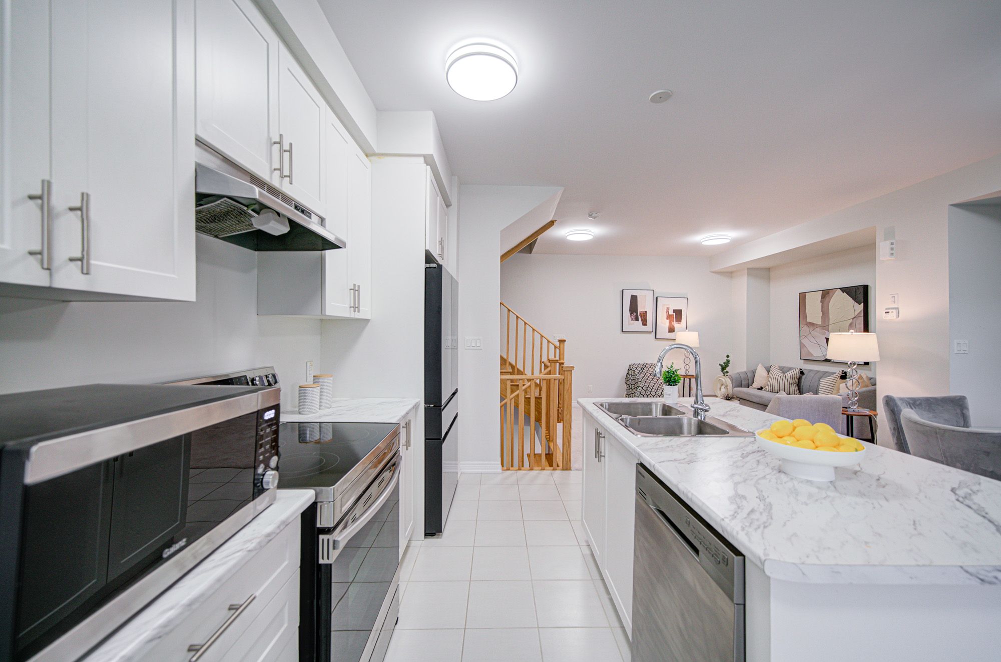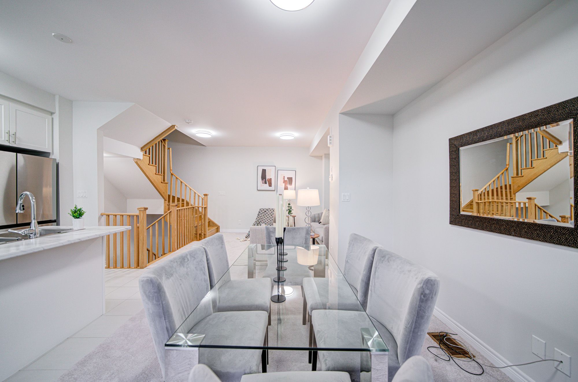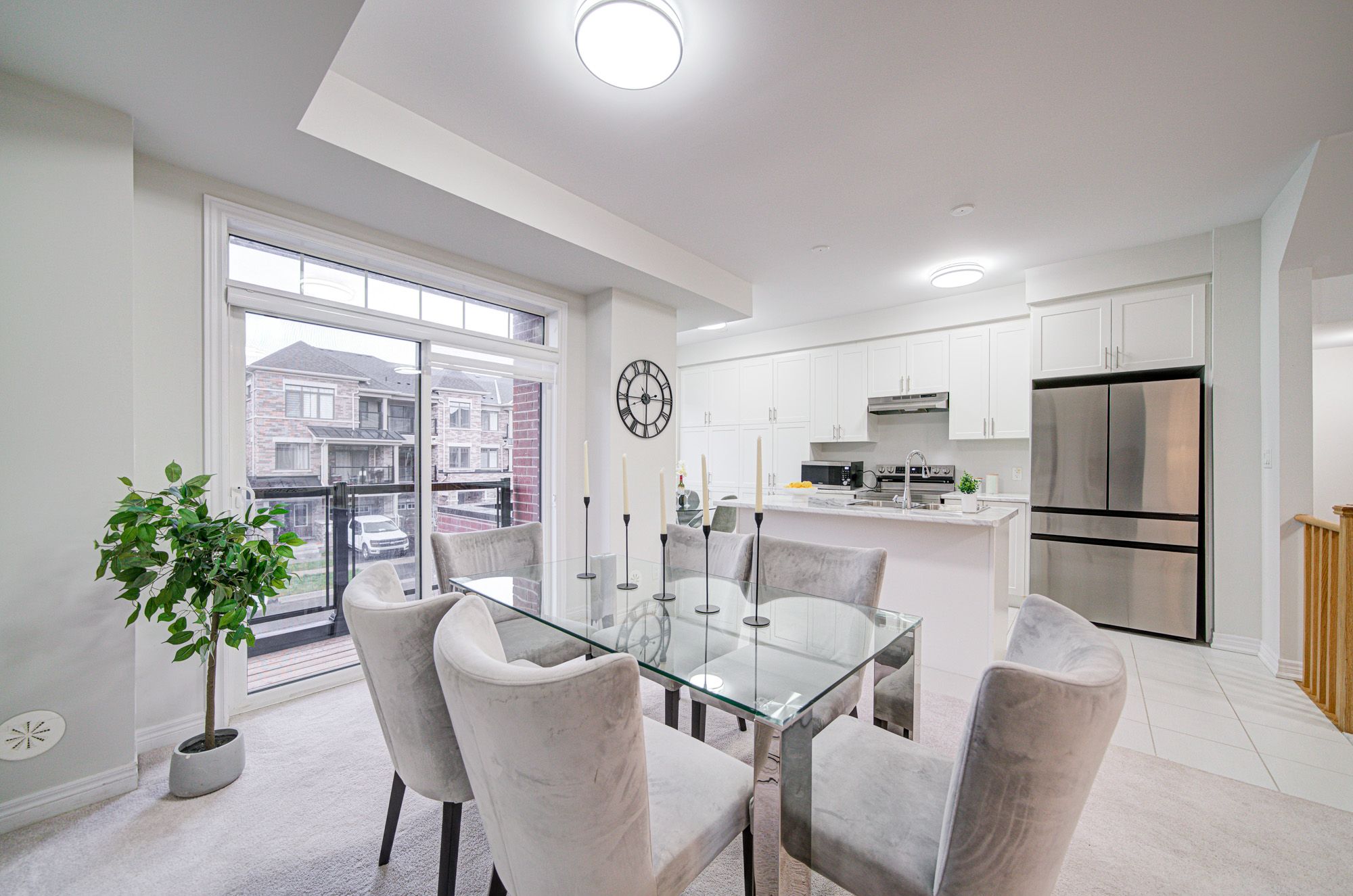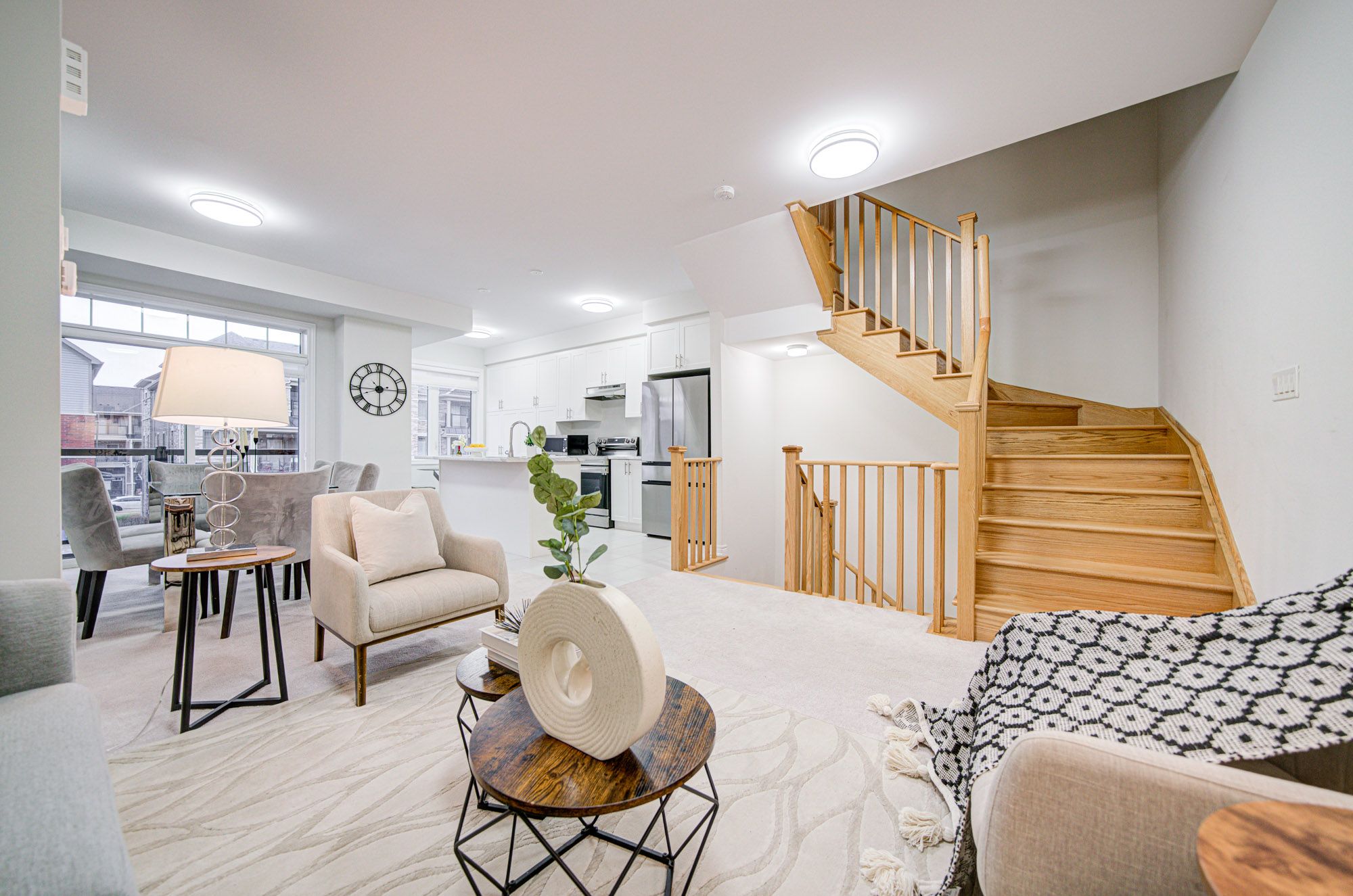 Elegant Freehold Townhouse in Kedron, Oshawa ?Welcome to modern living in one of Oshawa's most desirable neighbourhoods Kedron. This stylish freehold townhouse combines space, convenience, and contemporary design. Main Floor: Open-concept layout with a convenient laundry area and a 2-piece bathroom. Second Level: Soaring 9-foot ceilings highlight a sleek, contemporary kitchen featuring stainless steel appliances, a large island, and a pantry. The adjoining breakfast, living, and dining spaces are bathed in natural light from oversized windows and a patio door. Third Level: A bright and spacious primary bedroom with a walk-in closet, complemented by two well-sized additional bedrooms. Perfectly situated near Highway 407, public transit, schools, and parks. Just minutes from Ontario Tech University and Durham College, plus everyday amenities including Costco, Walmart, FreshCo, Home Depot, Superstore, LCBO, and Cineplex. This home offers the ideal blend of style, functionality, and unbeatable location.