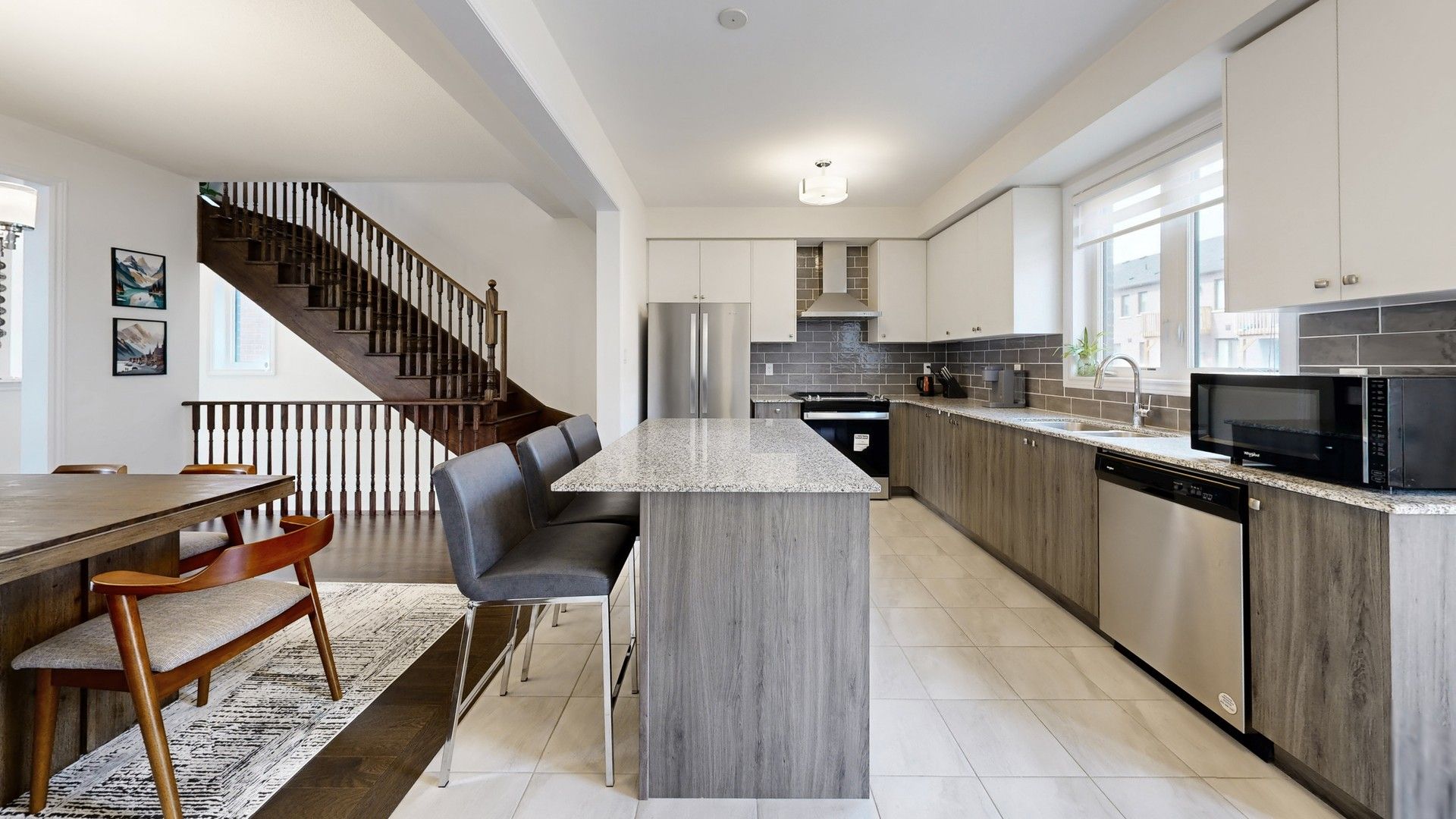 Welcome to 55 Douet Lane - Where Your Family Story Begins: Nestled in one of Ajax's most sought-after newer communities, this stunning corner-unit townhome offers the perfect blend of modern living, functional space, and family-friendly design. Less than 5 years young, this meticulously maintained 3-bedroom + den, 3-bathroom home is move-in ready and waiting for your family to make it their own. The bright and airy open-concept main floor is bathed in natural light from extra corner windows - a true advantage of this premium end-unit position. The stylish kitchen features contemporary cabinetry, stainless steel appliances, and a generous breakfast area, flowing seamlessly into the living and dining space - ideal for family dinners, homework sessions, and weekend movie nights. Step out to your private outdoor space perfect for summer BBQs while the kids play. This spacious home features a primary bedroom with a private ensuite, two additional bedrooms, and a flexible den - ideal for families. Three full bathrooms ease busy mornings, while the inside-access garage and driveway parking add everyday convenience. Built with newer construction throughout, the home offers modern, efficient, low-maintenance living perfect for a growing family. Located in a vibrant, family-oriented Ajax neighborhood with parks, trails, top-rated schools, and community amenities all within easy reach. Quick access to Hwy 401 and Durham Region Transit makes commuting effortless, while nearby shopping, restaurants, and recreational facilities mean everything your family needs is just minutes away. Don't miss your chance to lease this exceptional family home. Homes like this don't last - book your private showing today!