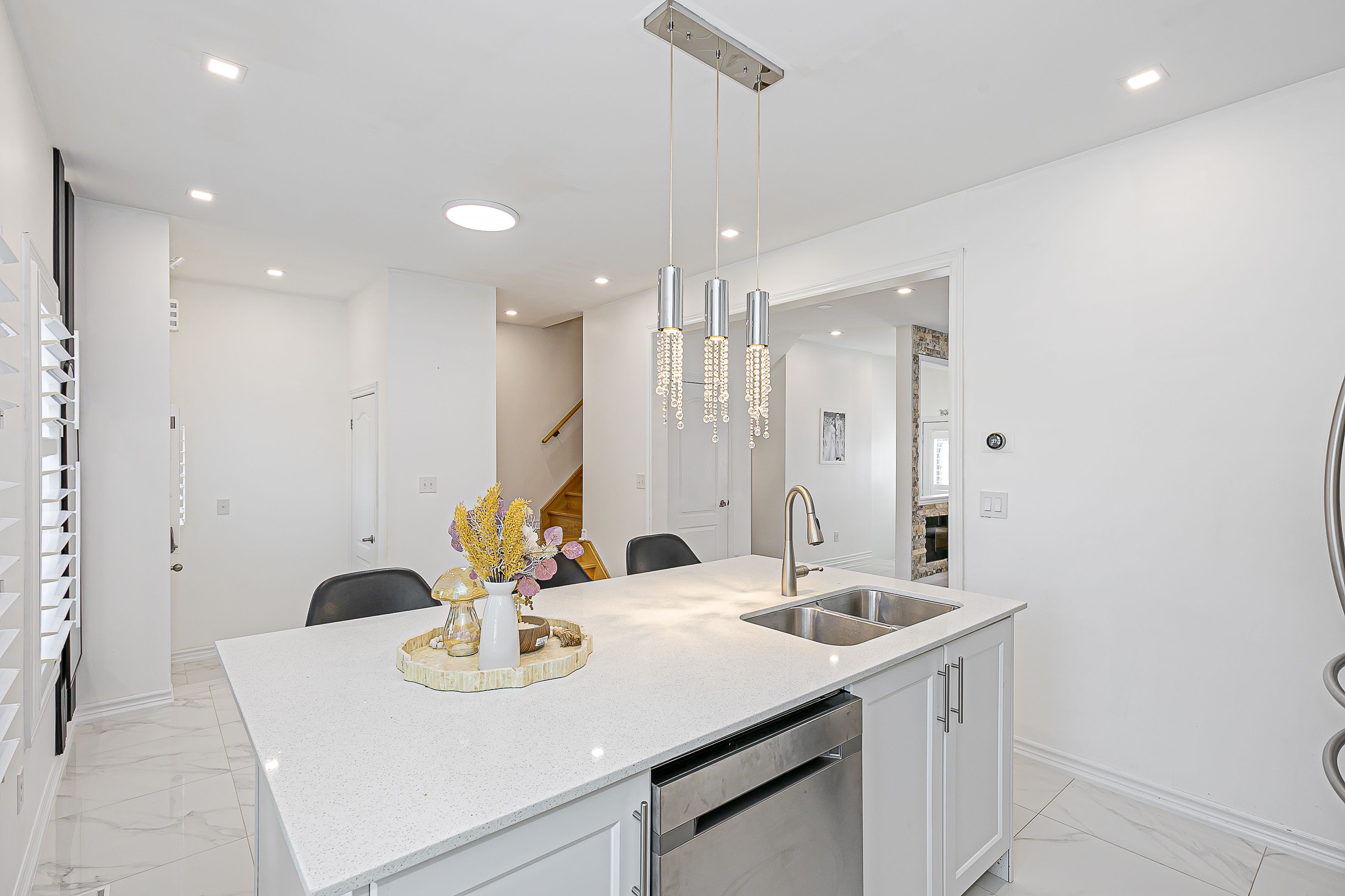 Welcome to 29 Vettese Court, a beautifully updated freehold townhouse tucked away on a quiet, family-friendly court in one of Markham's most desirable neighbourhoods. This 3-bedroom, 4-bathroomhome combines modern upgrades with functional living spaces, making it the perfect choice for today's buyers. Step inside to a bright, open-concept main floor featuring brand-new ceramic tile flooring (2024), a fully renovated powder room (2024), and a spacious living area highlighted by an elegant electric fireplace and California shutters. The heart of the home is the stunning new kitchen (2024), complete with quartz countertops, modern cabinetry, and stainless-steel appliances - ideal for family meals and entertaining. Upstairs, you'll find hardwood floors throughout and three generously sized bedrooms. The primary suite offers a walk-in closet and private 4-piece ensuite. The finished basement extends your living space, featuring a second electric fireplace, full washroom, and flexibility for a family room, office, gym, or guest suite. Outside, enjoy a professionally interlocked front yard, a fully fenced private backyard, and a new garage door (2023) leading to your detached single-car garage with oversized driveway. This move-in-ready home offers peace of mind with thoughtful upgrades and unmatched convenience -just minutes from top-rated schools, Rouge National Park, Markham Green Golf Course, shopping, transit, and major highways. Don't miss your chance to own a turnkey property in a prime Markham location - perfect for families, professionals, and investors alike!