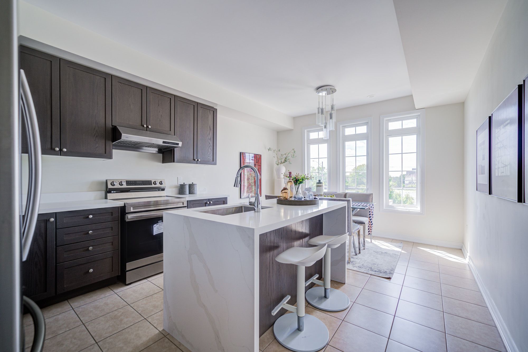 Sought after Freehold Townhouse in Berczy Community. Original Owner. Freshly Painted. Hardwood Floor Throughout. Oak Staircase. 2nd & 3rd Floor 9' Ceiling. W/O Balcony. Upgraded Kitchen With Quartz Countertop, Central Island & S/S Appliances. Direct Access To Garage. Humidifier and primary fan for whole house ventilation. Steps To Park & Public Transit. Close To School, Plaza, Golf Course & Community Centre. Mins To Hwy404.