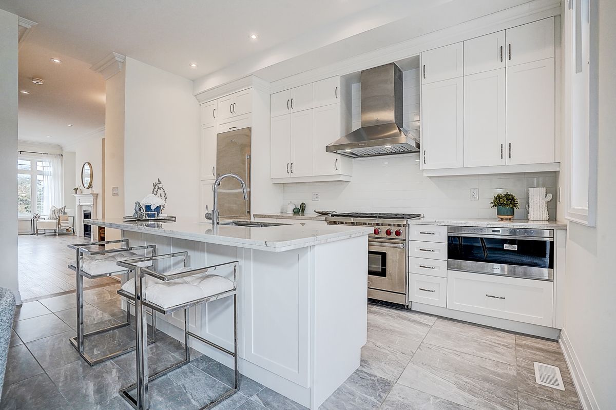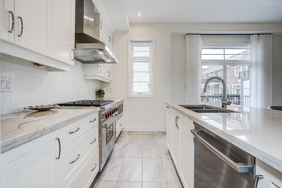 Welcome to this rare End-Unit townhouse with a 2 car garage in the highly sought-after Angus Glen community, developed by renowned Kylemore. Featuring 10' ceilings on the main floor and 9' on the upper level, this modern open-concept home offers a gourmet kitchen with full-height cabinets, centre island, quartz counters, walk-in pantry, and premium built-in appliances including Wolf gas stove/oven, Wolf microwave, Sub-Zero fridge, and Bosch dishwasher. The spacious primary bedroom boasts a 5-piece ensuite and walk-in closet. Convenient upper-level laundry. Steps to the Angus Glen Community Centre, trails, transit, golf. Quick access to Hwy 404/407/Hwy 7 & minutes to Unionville/Village Grocer. Top-ranked schools including St. Augustine CHS and Pierre Elliott Trudeau HS, etc.