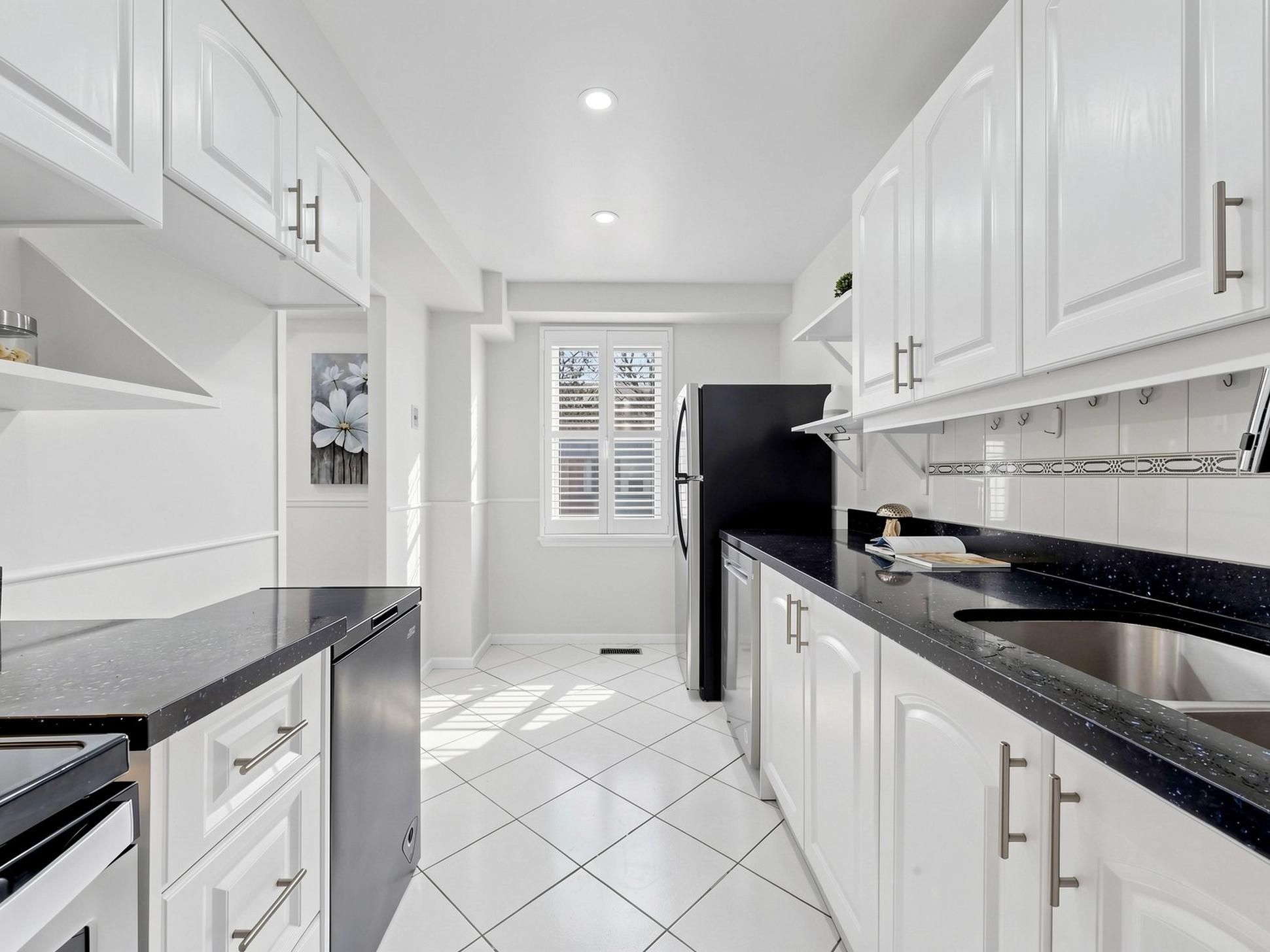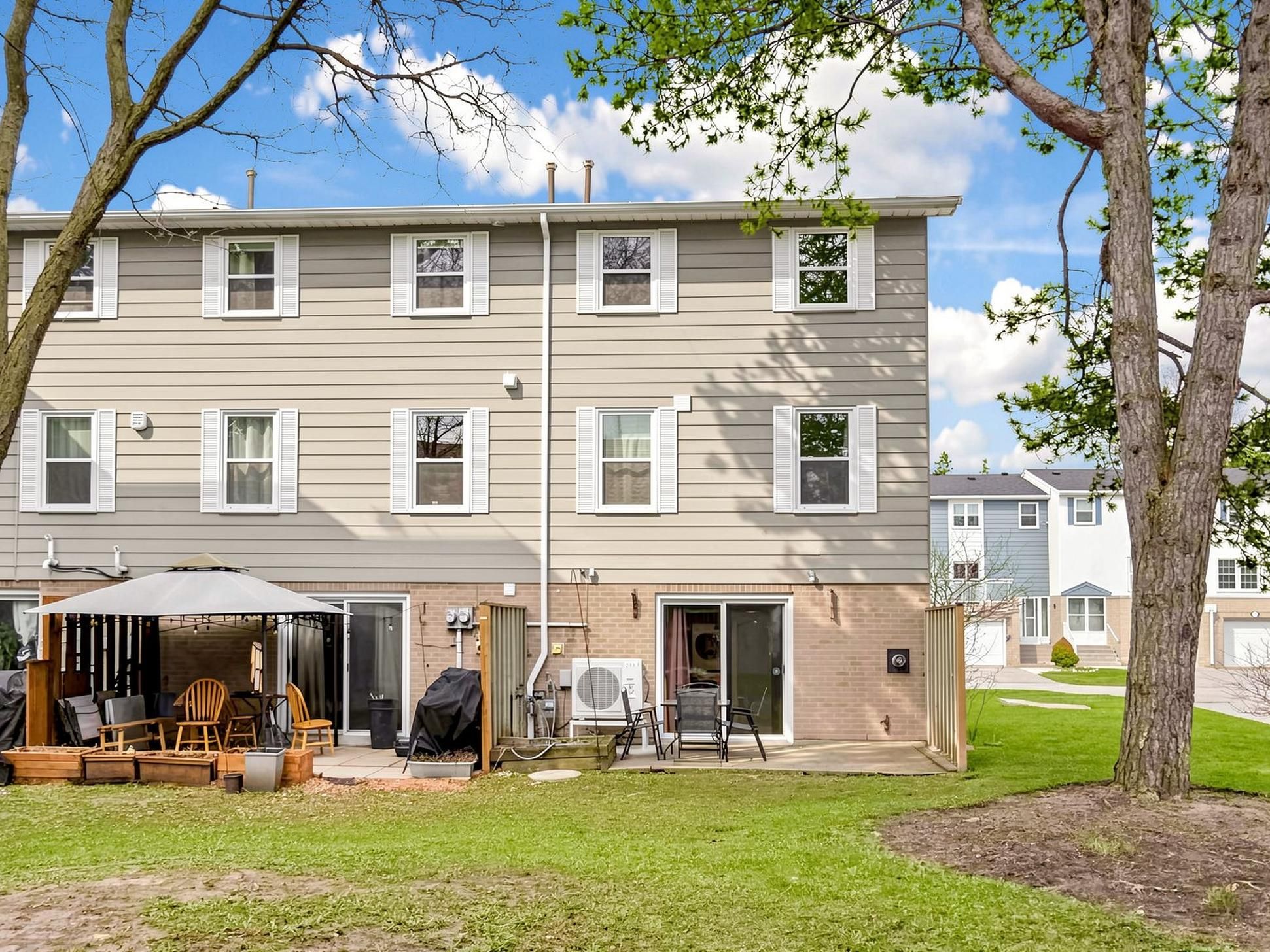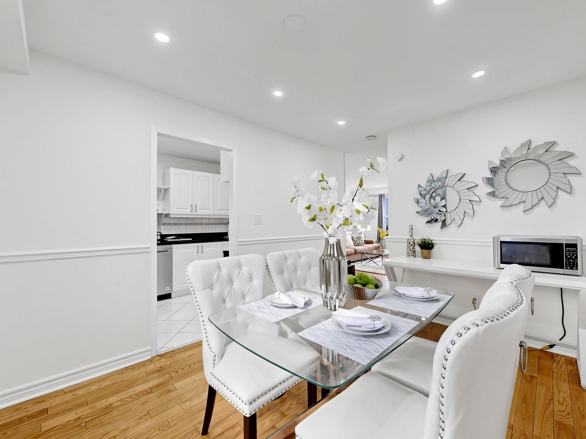 Bright and well-maintained corner-unit townhouse in a highly sought-after Thornhill neighborhood, featuring a bright west-facing backyard with open views and abundant natural light throughout. Freshly painted, this spacious home offers 4 bedrooms, separate living and family rooms, and a finished walk-out basement complete with a full bathroom and gas fireplace-ideal for extended family or additional living space. The modern kitchen is equipped with quartz countertops, stainless steel appliances, and complemented by pot lights throughout, hardwood flooring on the main level, laminate on the upper level, and a stylish wood staircase. The large primary bedroom features his and hers closets. Located just steps to Bayview Fairways Public School and approximately 1.5 km to top-ranked St. Robert Catholic High School, with convenient access to Hwy 407 & 404, public transit, parks, library, golf, shopping, and supermarkets. Maintenance fees include water, building insurance, landscaping, snow removal, and exterior maintenance. Recent updates include garage door (2024) and heat pump (2024).