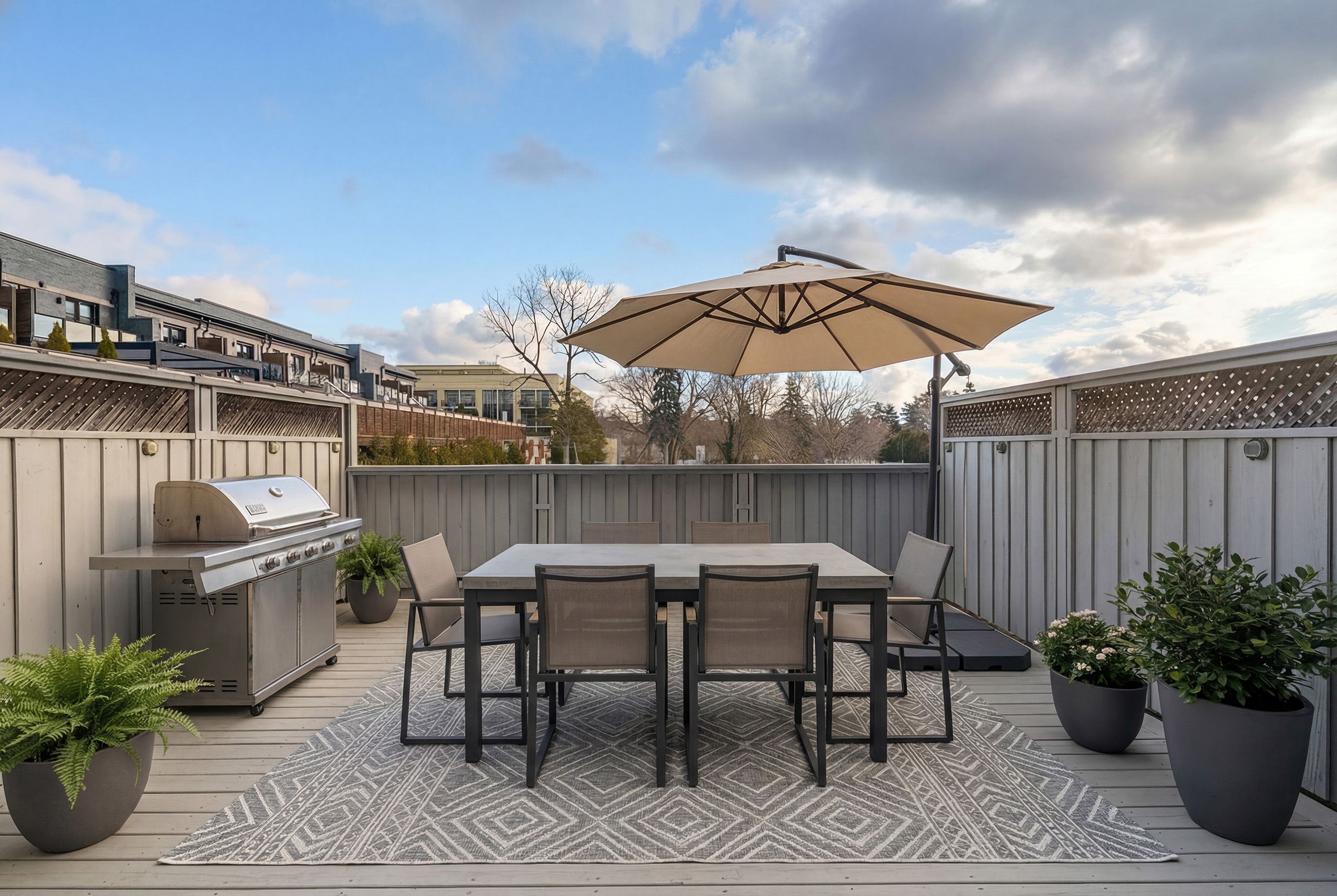 Freehold executive townhome living just steps from everyday amenities, downtown Oakville, and the lake! Offering 3 bedrooms and 3 bathrooms across 3100+ total square feet, this beautifully designed residence is ideal for right-sizers, professionals, or modern families seeking a low-maintenance lifestyle without sacrificing space or comfort. Rarely offered features include a private elevator, parking for four vehicles (including an attached double garage), and multiple outdoor living spaces. Luxuriously finished throughout with rich hardwood floors, quartz countertops, custom millwork, and two fireplaces, the home delivers a refined, boutique-hotel feel. The main level is designed for entertaining, featuring a formal dining room, gourmet kitchen with chef-grade appliances, and a living room that walks out to a large terrace - perfect for summer barbecues. Indoor-outdoor living continues above with both north and south-facing rooftop terraces, ideal for morning coffees or sunset cocktails. The second level offers two spacious bedrooms, a beautifully appointed main bathroom, and convenient laundry. The entire third floor is dedicated to a serene primary retreat with dual dressing rooms and a spa-inspired five-piece ensuite showcasing a statement freestanding tub and stunning tilework. The finished lower level provides a versatile flex space ideal for a media room, home office, or gym. Enjoy a Saturday morning stroll to Kerr Street Café, window shopping downtown, or lakeside walks with your dog. This exceptionally walkable location is also moments from the Oakville GO Station and the QEW, making commuting and Toronto events effortless. 216 Rebecca Street isn't just a home - it's a (fabulous) lifestyle!