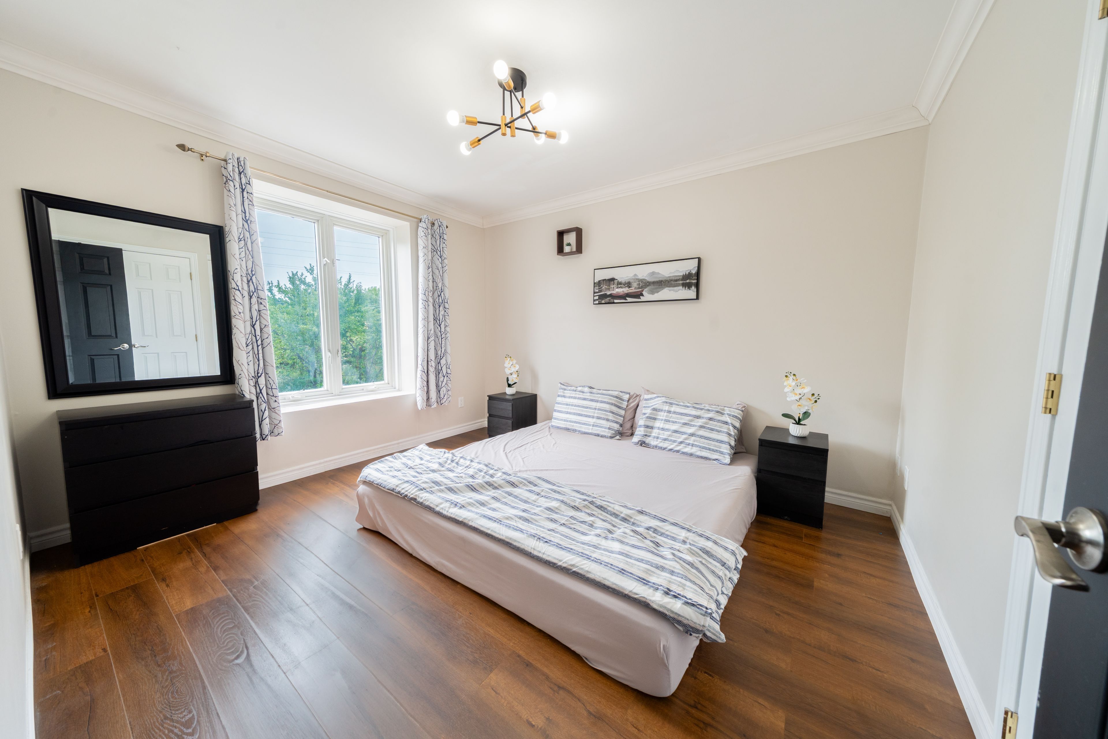 Welcome to this bright and spacious 3+1 bedroom condo townhouse, ideally situated in a quiet, family-friendly cul-de-sac in Burlington. Backing onto a serene green space with no rear neighbours-and no homes directly in front-this property offers rare privacy. Enjoy a fully fenced, interlocked backyard, perfect for morning coffee, outdoor play, or relaxed entertaining. The well-maintained kitchen features a built-in dishwasher and ample storage, while the open and airy layout is complemented by generously sized rooms filled with natural light throughout. A full-size garage adds everyday convenience. The finished basement provides excellent versatility and can be used as a fourth bedroom, rec room, home office, or guest space (basement not retrofit). Ideally located close to top-rated schools, parks, shopping, GO Transit, and quick access to the QEW-this home delivers the perfect balance of comfort, privacy, and convenience.