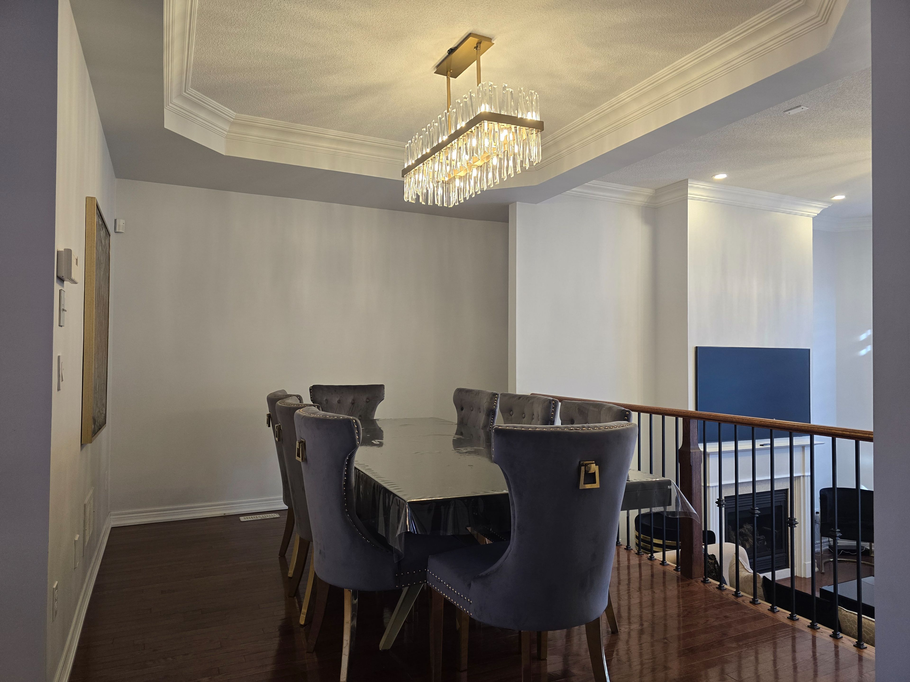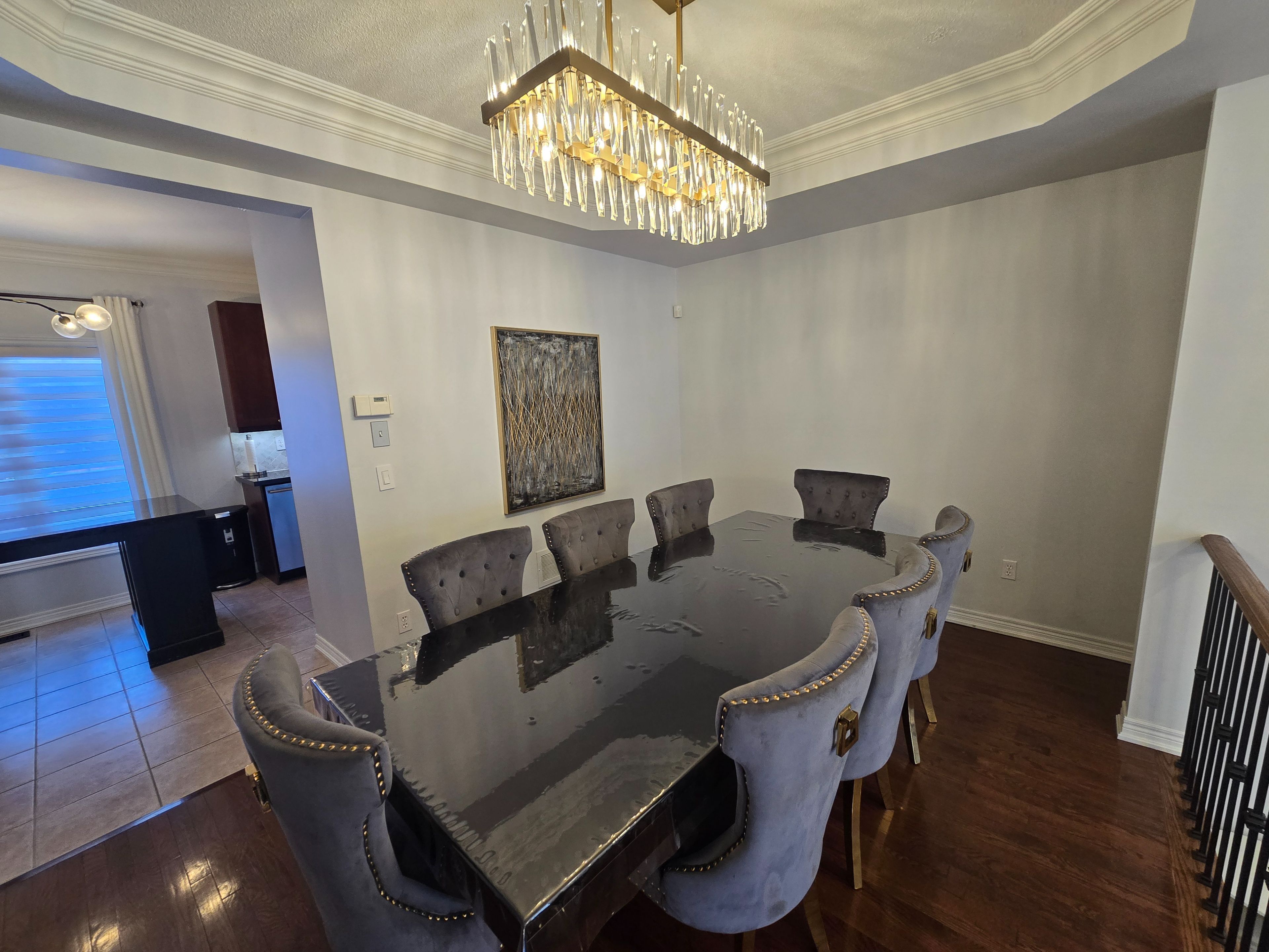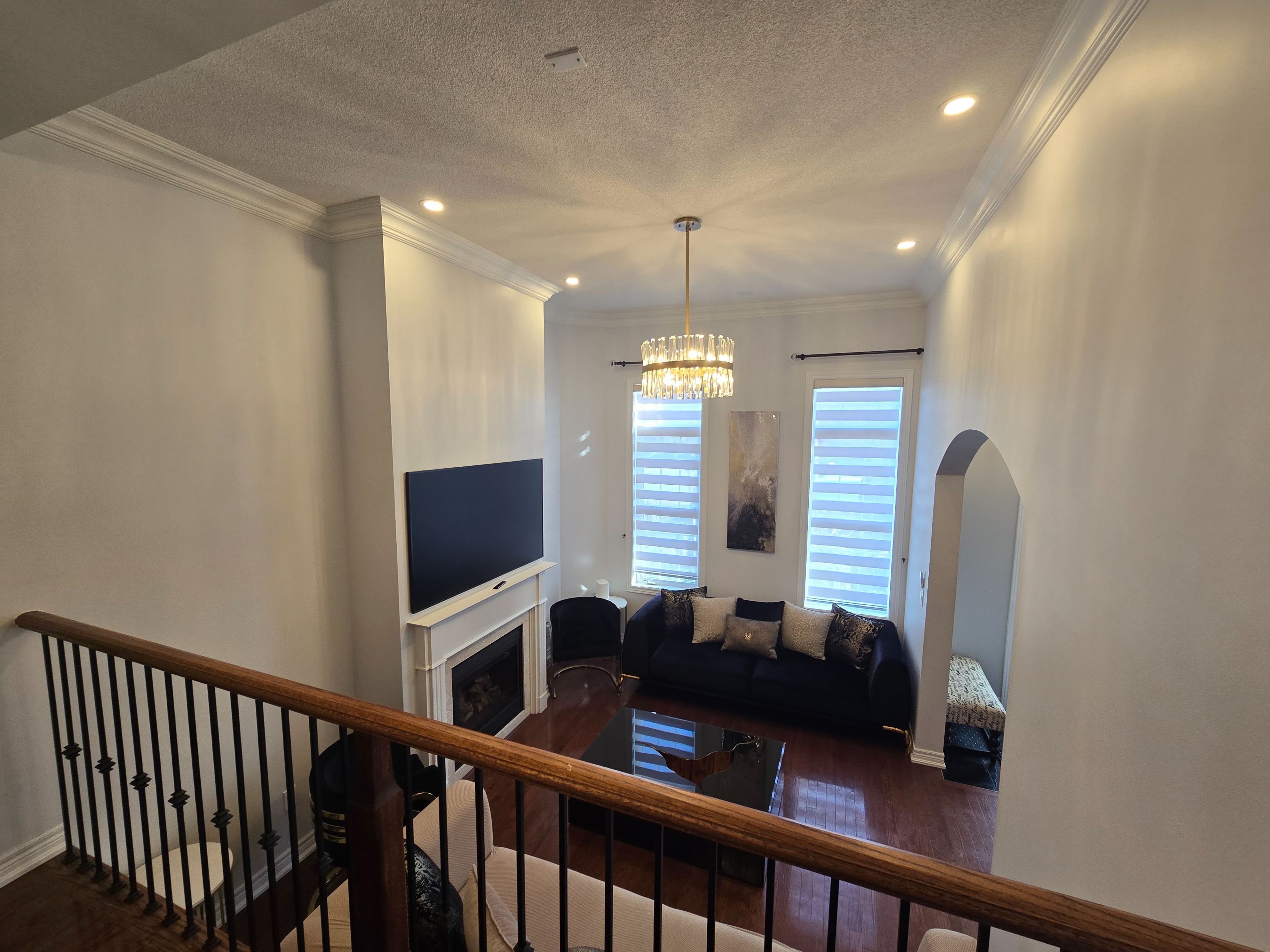 Amazing ! High Quality Fully Furnished freehold townhome nestled in the sought-after Churchill Meadows community, This impeccably maintained home offers spacious interiors and a blend of comfort, elegance, and modern finishes throughout. Spacious open-concept main floor with soaring 9-foot ceilings, rich hardwood flooring, and a modern kitchen featuring quartz countertops, upgraded cabinetry, and accent spotlights. Family room boasts 12-foot ceilings, a gas fireplace and oversized windows Upstairs, Three (3) bedrooms with renovated Bathrooms. finished basement, and basement laundry. Ideally located near top-rated schools, parks, shopping, and transit, this move-in-ready home offers both convenience and upscale suburban living in Mississauga