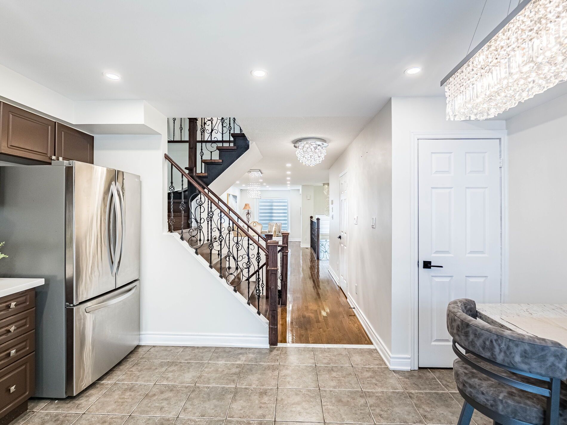 Welcome to this 3 story spacious and very bright freehold town house located in a sought-after Lisgar community, boasting 4 bedrooms and 4 bathrooms, which includes a walkout finished basement. The house is minutes to hwy 401 and 407, steps to Lisgar GO station and MiWay stops and walking distance to major shopping centers and schools & & minutes from new business Costco. Over 100k worth of upgrades were spent. New roof (2023), upgraded lighting through out the house with the best crystal chandeliers, fresh painting, newly hardwood flooring and stairs decorated with metal baluster, newly installed accent island with a breakfast bar, new zebra blinds, upgraded main door, LED mirrors. In addition to the new separate laundry, separate kitchen with Mosaic backsplash, walkout to additional deck, extra bedroom and washroom, garage opener and more!