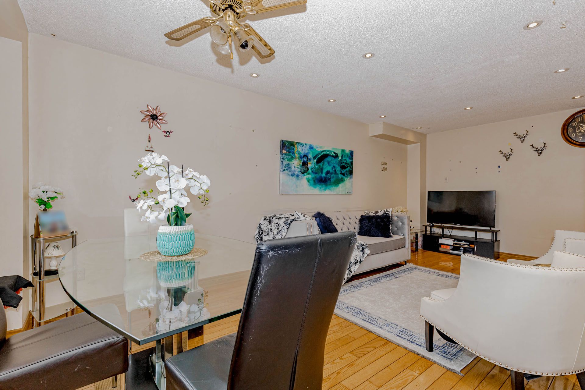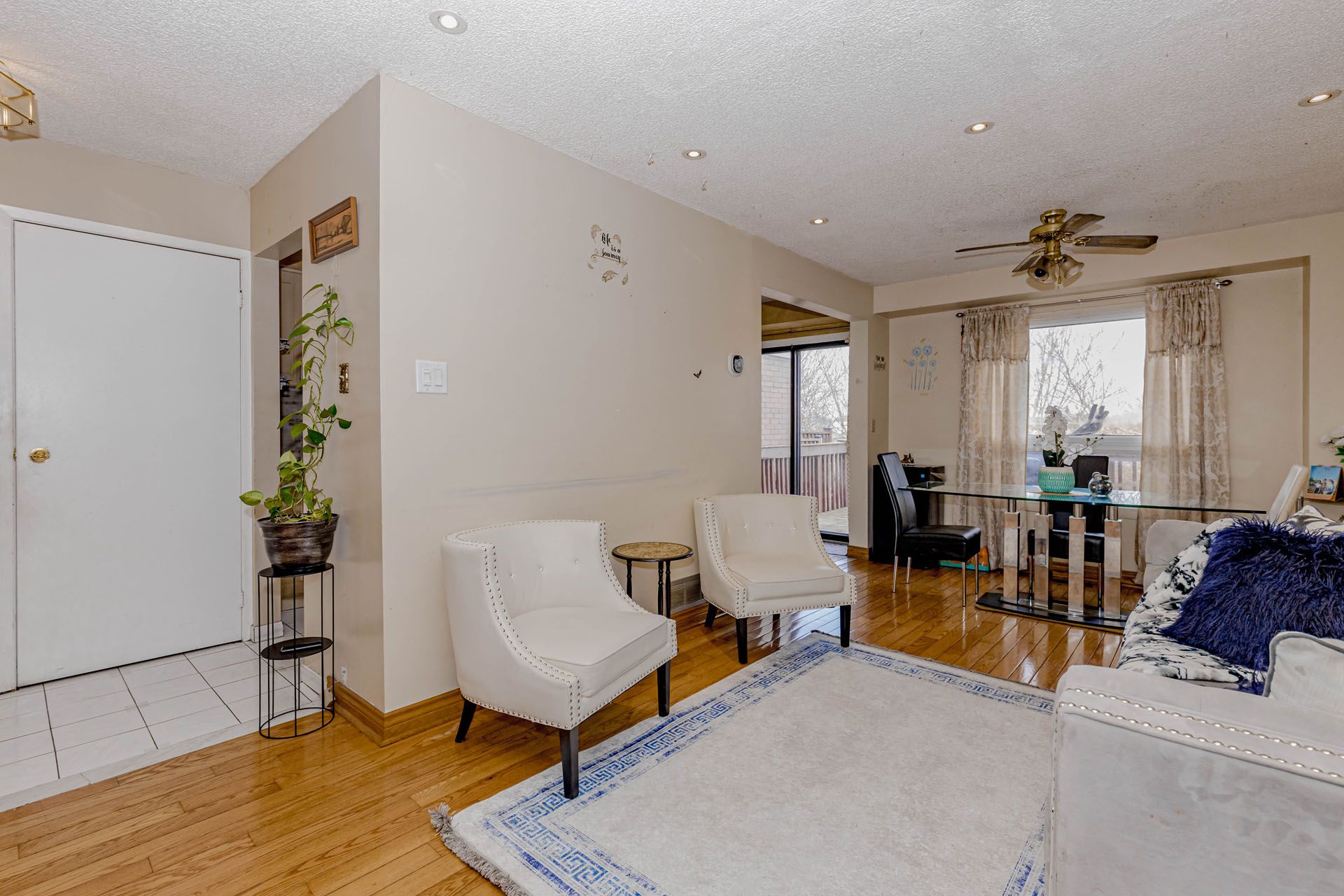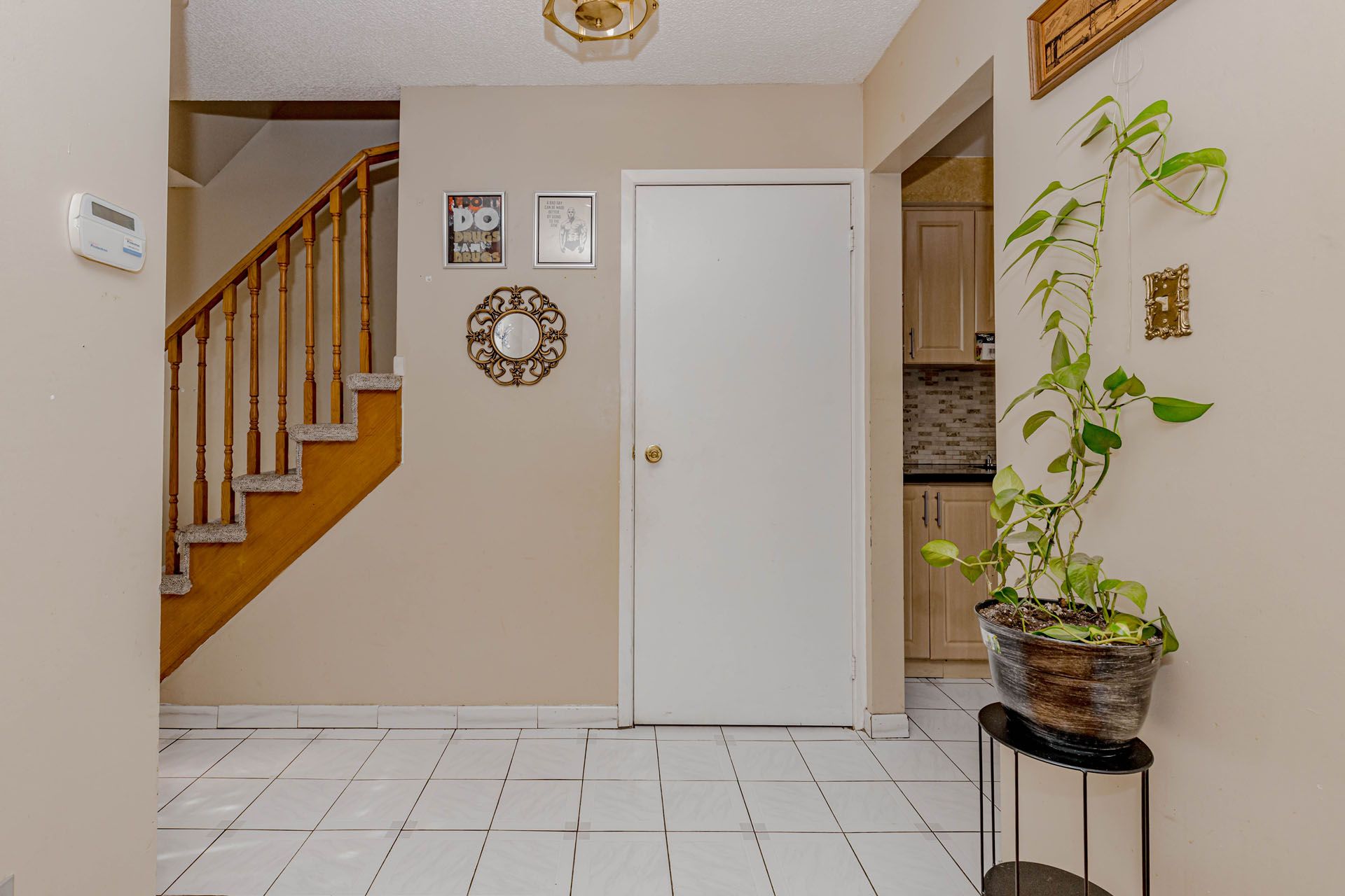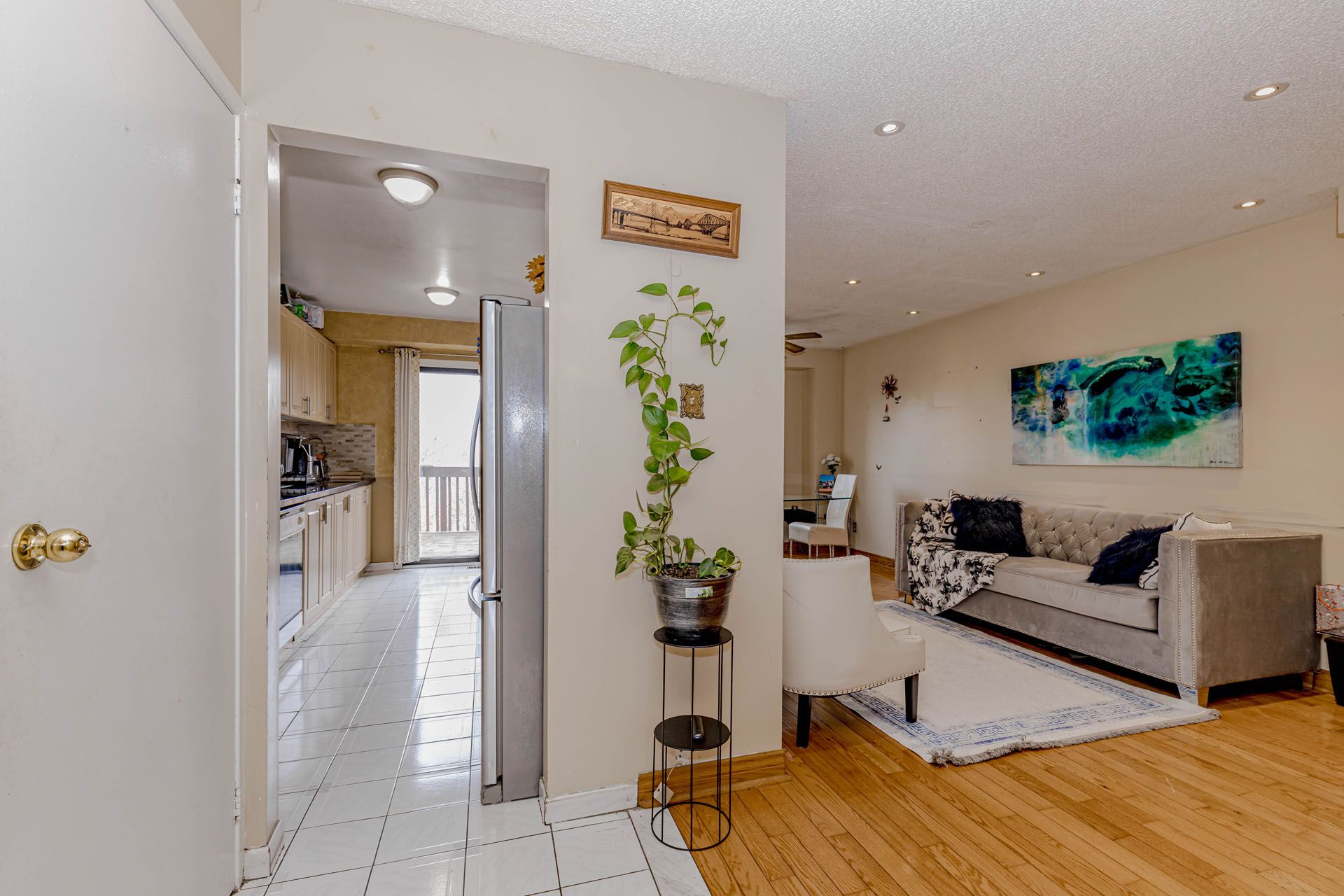 Location! Location! Location! Well-maintained freehold townhouse, attached on one side by the garage, offering both privacy and functionality. Features a finished above-grade recreation/Studio room complete with a full bathroom, dedicated office space, and walk-out access to a patio and fully fenced garden with no rear neighbours. The home has been thoughtfully upgraded over the years, including a high-end AC (2025), roof (2025),Freezer (2025) and carpet free in the living and dining areas and foyer, Additional highlights include new Dryer(2025). The property offers a semi-ensuite bathroom and a walk-out to an elevated deck from the living room. A rear garage door provides convenient access for easy lawn maintenance.